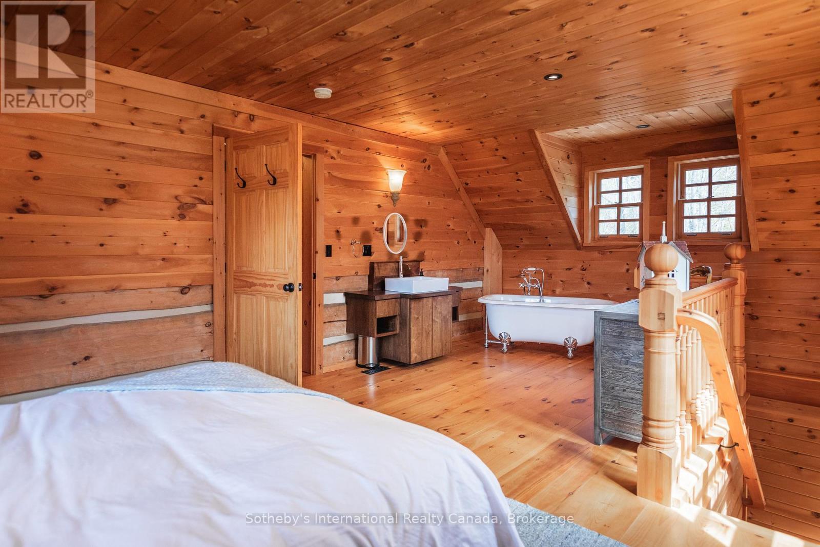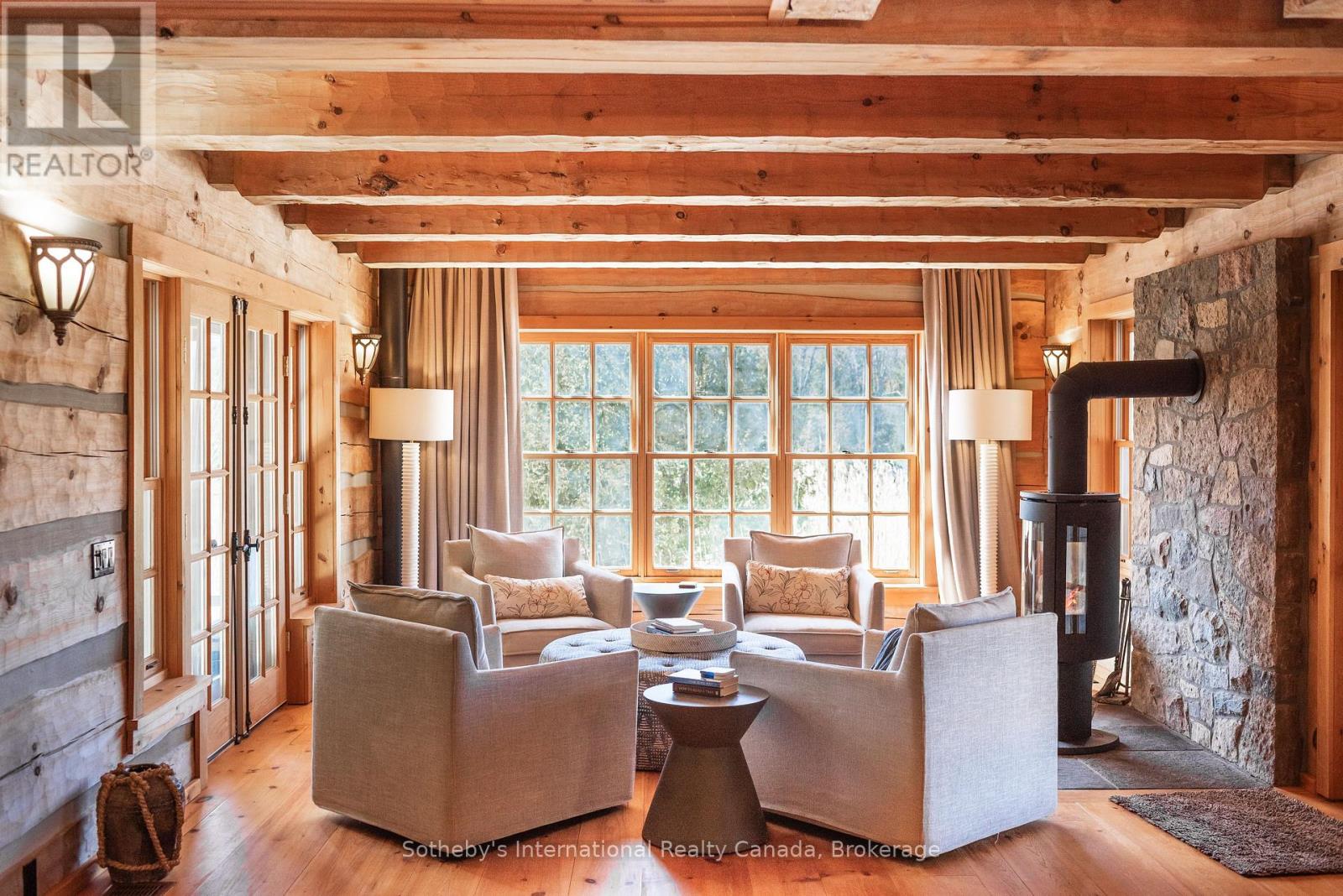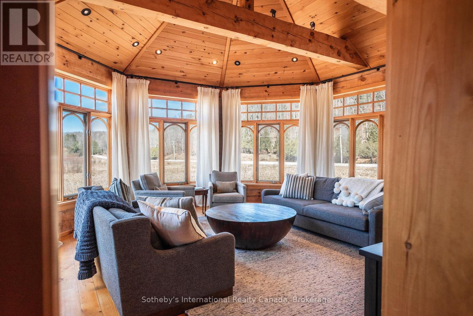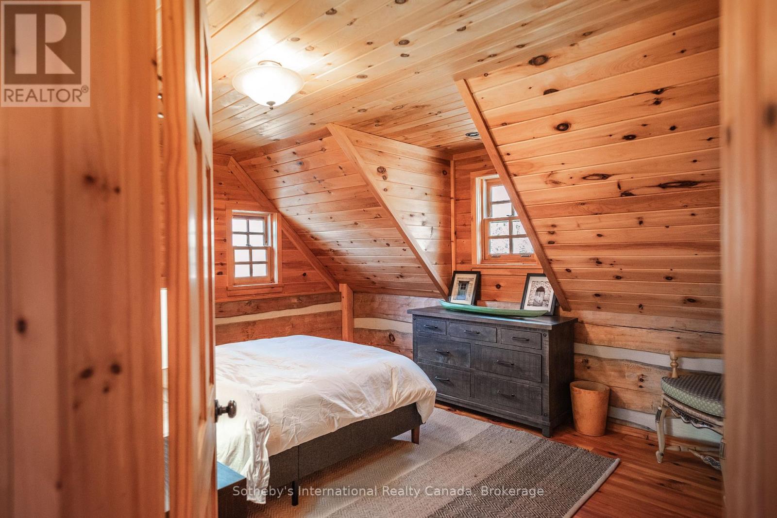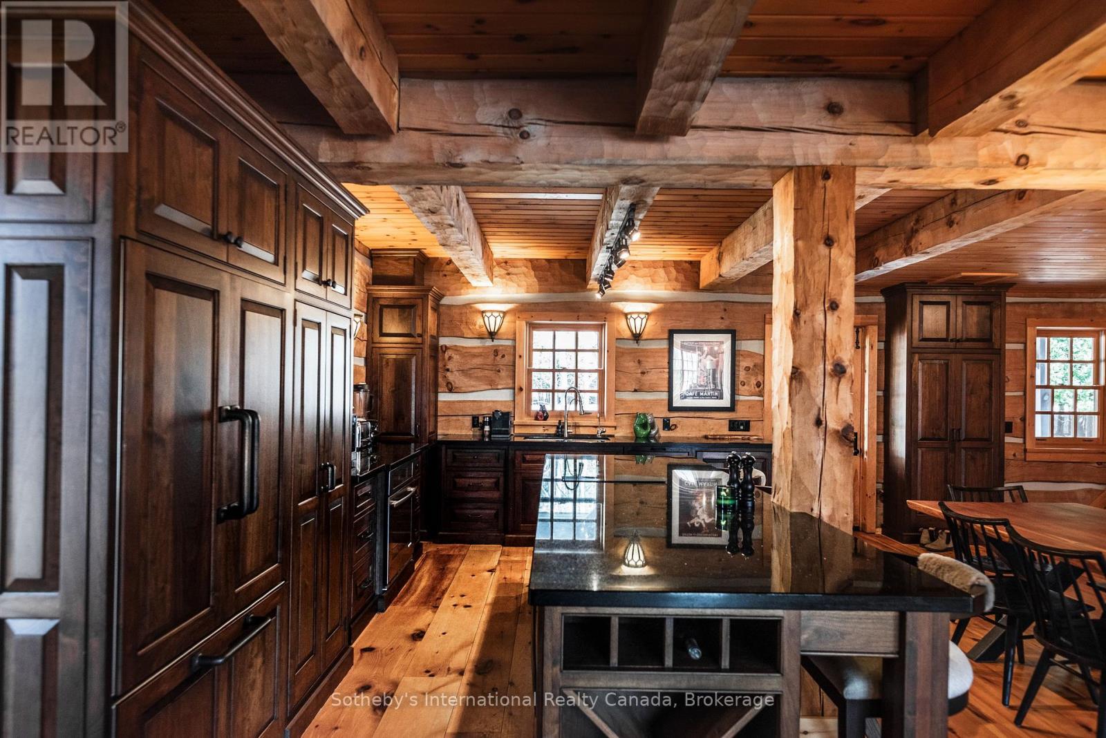 Beaver Valley Log Home - A Rare Four-Season Retreat Nestled in the heart of the Beaver Valley, this stunning custom-built dovetail log home is a true masterpiece of craftsmanship. Built in 2003 by a skilled local artisan, the home showcases the finest natural materials throughout, offering warmth, character, and timeless appeal.With over 2,500 sq. ft. of thoughtfully designed living space, the open-concept kitchen, dining, and living areas are the heart of the home. The chef-inspired kitchen features granite countertops, a generous oversized island with built-in storage, a bar fridge, and a cabinet-fronted built-in refrigerator - all flowing seamlessly into the great room anchored by a cozy J-TUL wood-burning stove.Step into the magnificent conservatory and take in breathtaking, unobstructed views of the Beaver Valley and ski hills - a view equally enjoyed from two of the three covered porches. Entertain in style on the third porch, complete with a stunning stone outdoor fireplace perfect for cool evenings under the stars.The home offers four generous bedrooms, including a large primary suite with private ensuite, making this an exceptional family retreat. The full unfinished basement with 9-ft ceilings presents incredible potential for additional living space, a recreation room, or whatever your vision calls for. The home has an efficient Geothermal heating system. Set on 23 pristine acres with over 1,000 feet of Beaver River frontage, this property is a four-season playground - canoe, fish, hike, and more, all from your own backyard. And for ski enthusiasts, you simply can't beat the location - the Beaver Valley Ski Club is just a 2-minute drive away. Minutes to golf, Georgian Bay, and endless trails.A home of this quality and setting must be seen to be truly appreciated. (id:64974)