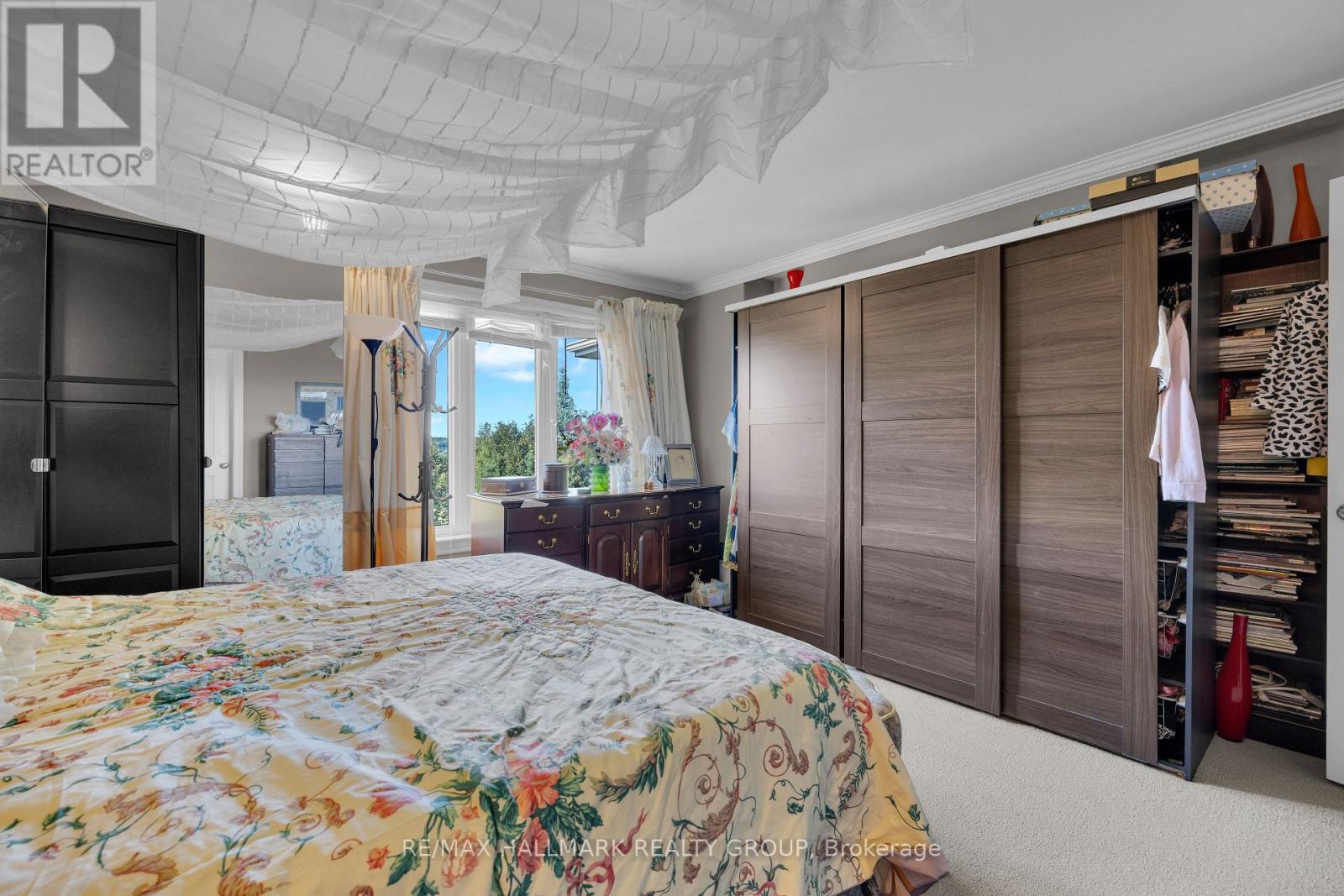Offering excellent income potential with its walk-out in-law suite, this property provides both flexibility and financial opportunity. The feeling of serenity begins the moment you turn onto the driveway, with nature surrounding you on both sides all the way up to where the home is perched at the top. Exceptional 5-bed, 4-bath custom Doyle Home thoughtfully designed for comfort, elegance, and versatility. This property includes a walk-out basement in-law suite, ideal for multi-generational living/rental income. The main level greets you with a bright, spacious foyer that leads into the living & great rooms, featuring coffered ceilings, gleaming hardwood floors, and a large balcony off the great room. The kitchen is both functional & inviting, flowing naturally into a bright eating area connecting to a mudroom w/ abundant storage. A main floor bedrooom adds flexibility, perfect for guests or a home office. Upstairs, the primary suite offers a private retreat with a large walk-in closet & a 5-p ensuite. Off bedroom #3 (used as media room), you'll find another large balcony where you can enjoy beautiful sunset views. Two generously sized bedrooms share a Jack & Jill bathroom, while the laundry room provides everyday convenience. The walk-out lower feels like its own private home, complete w/ a full kitchen, a living room, bedroom, a cozy nook for an office or nursery, a den, a 4-piece bath with laundry, and ample storage. Quality & sustainability shine throughout this home, from its durable CanExcel siding to the energy-efficient geothermal heating & cooling system that ensures year-round comfort. Set on 3 acres embraced by forest, the property offers peace & natural beauty from every angle. Mature gardens, fruit trees, forested views fill each window with a different scene of tranquility. Just minutes from Almonte, Carp, Kanata - High Tech Center, and only 35 min from downtown Ottawa making it the perfect balance of privacy, space, & accessibility. (id:64974)