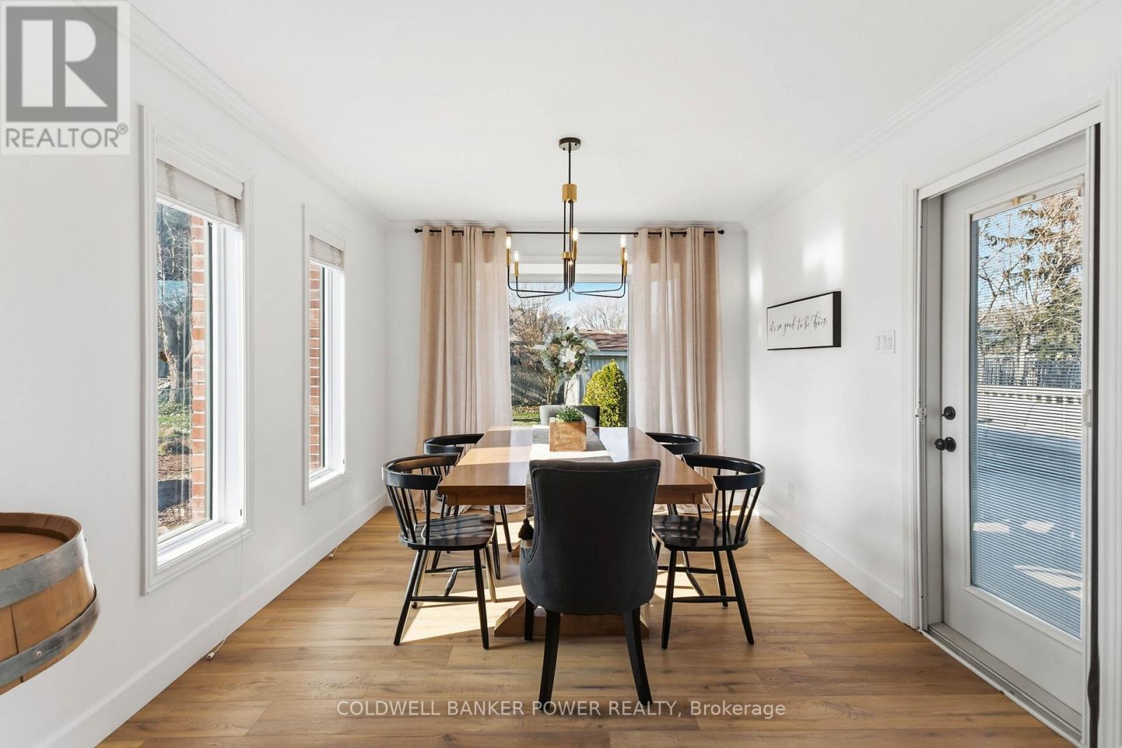 Welcome to this beautifully updated ranch-style home in desirable Dorchester, ideally located near all amenities and offering easy highway access for commuters. Set on a generous almost 1/4-acre lot, this home features 3 bedrooms, 2 full bathrooms, and convenient main-floor laundry. Stylish updates include all new flooring, a modern kitchen, and refreshed bathrooms-truly move-in ready. Step out onto the spacious deck just off the kitchen and take in the large, private backyard-perfect for entertaining or unwinding. Nestled on a quiet street in a well-established neighbourhood, this home offers both comfort and charm. A two-car garage and two storage sheds add to the practicality. The basement is fully finished with family room, a separate play space, a fun bar space for entertaining and a bedroom with full bath. Their is an option to create a separate entrance and create a separate suite, or to use as a welcoming retreat for guests or extended family. Don't miss this fantastic opportunity. (id:64974)