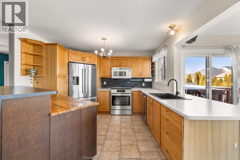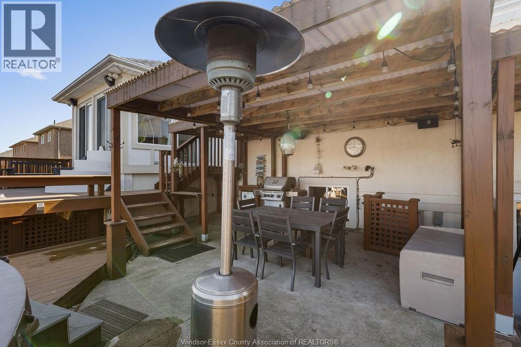 A Nice Package & Great offering! Right in Tecumseh/Lakeshore's most desirable location!!! A Special rear added on 4 season sunroom uniquely incorporates openness to the kitchen(SS appliances), and the action packed yard with 3 sets of patio doors, raised gas f/p, wired for surround sound/tv, slate tile, complementary custom glass display cabinetry, all giving a personal entertaining warmth and comfort to this Wide Open Bright home. Summer fun Yard with a/g Pool, sun deck, hot tub, covered patio, bbq gas line, wired for speakers, raised garden/flower boxes, and grade entrance for access to lower bath. Beautiful Hardwood stairs, and hardwood/tile floors (no carpets), 3 full baths, private XL Master Suite, Cathedral ceilings, glass rails, XXL 23x26 garage!!! Wide Open Lower family/games room, with 2nd gas f/p, 3rd full bath, and so much more! All new plumbing waterlines 2025, newer roof 2018, and Includes all 5 newer appliances 2020. Exclude Murphy bed in lower. Stones throw to Tecumseh's Sobey/LCBO shopping mall. All approx. (id:64974)