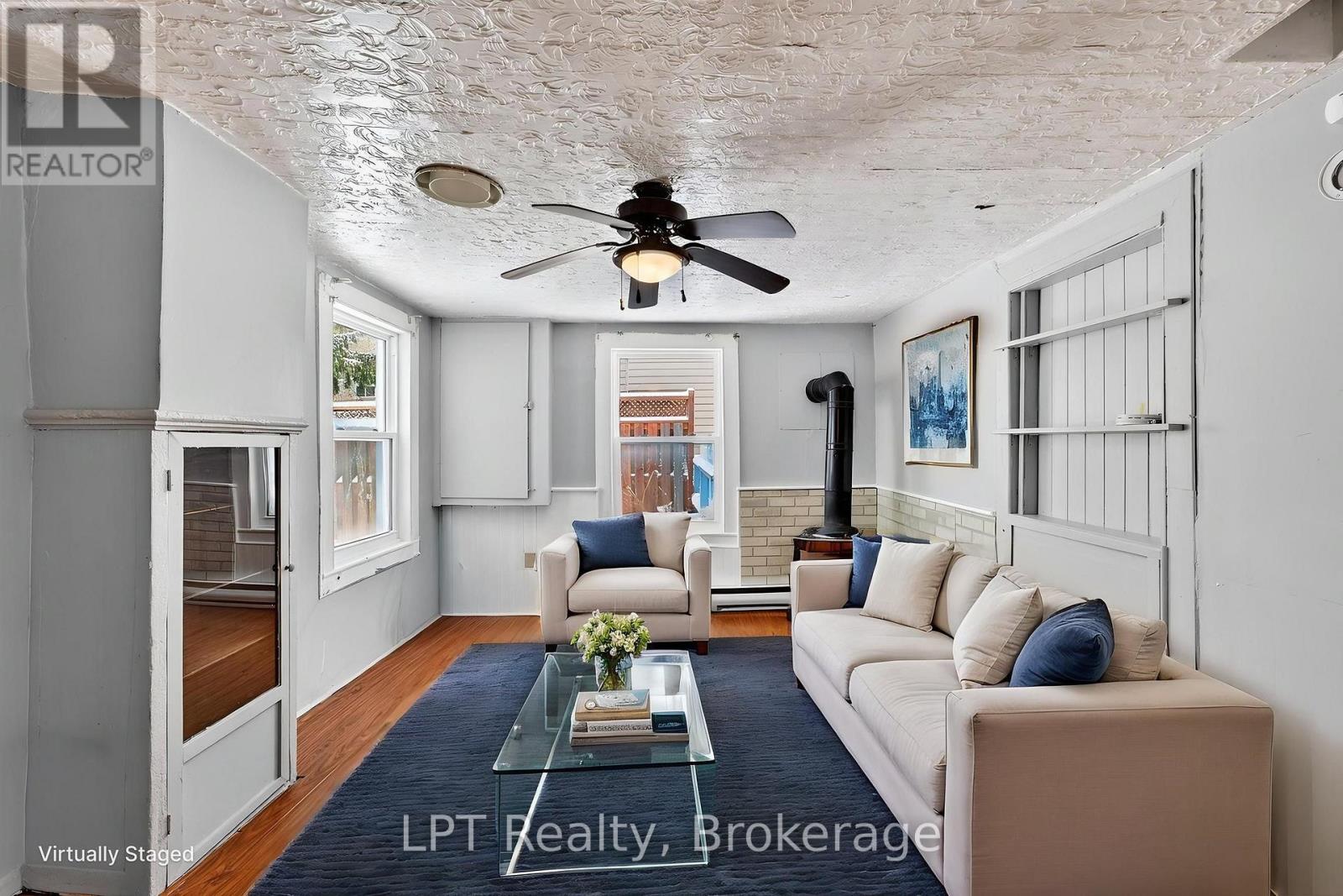 Welcome to charming Gananaque ! This 2 storey home offers a solid opportunity for buyers looking to get into the market and make this home their own. Featuring 3 bedrooms and 2 bathrooms, the layout provides a functional space for everyday living, with room to update and add your personal touch over time.The home includes a back alley access, 1 car detached garage, a great bonus for storage, parking, or workshop use, along with a durable metal roof already in place for long-term value. Outside, you'll find a fully fenced yard with mature landscaping, very private with a large back yard gazebo for sunny afternoons, offering a great space for outdoor enjoyment. Located close to local amenities, parks, and the waterfront, this property combines convenience with potential. A great option for first-time buyers, renovators, or anyone looking for a home they can gradually improve and make their own. (id:64974)