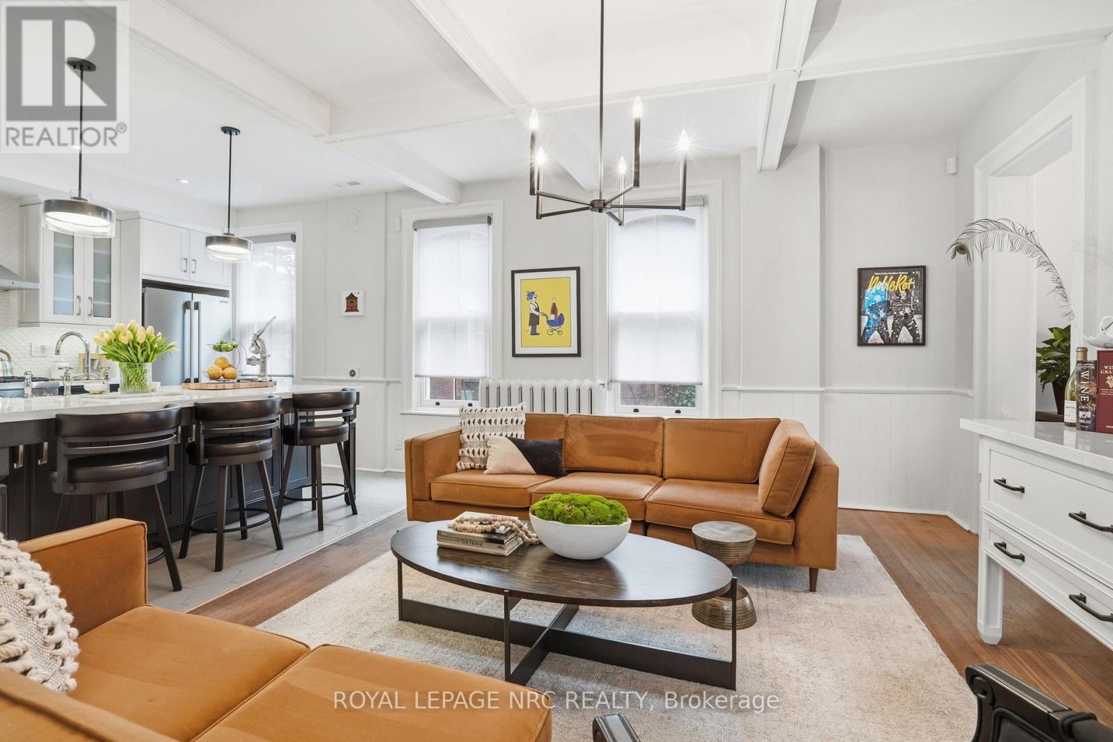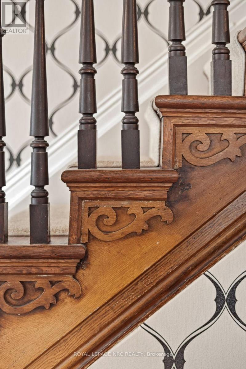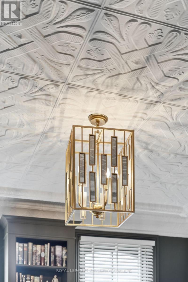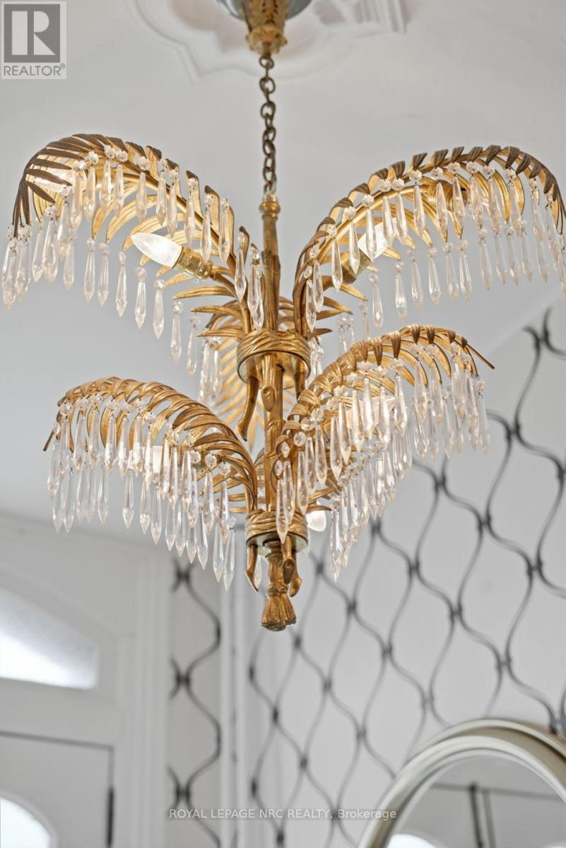 Beautifully renovated, tastefully decorated brownstone is nestled in an urban chic downtown location on trendy "Lawyer's Row". This stunning home has been updated to today's standards while preserving the character and fine craftmanship in such details as intricate ceilings, high coved moldings, wide baseboards, stained glass, marble fireplace. Renovated throughout by HGTV's Scott McGillivray and interior design byJohn Kazmir, bringing luxurious interiors, gorgeous lighting, custom cabinetry and open light filled spaces. Chef's gourmet kitchen with large island, coffered ceiling, quartz counters, Thermador stainless steel gas range, fridge, dishwasher and 36 bottle high end wine fridge, heated floors, second staircase to 2nd floor, walkout to cedar screened Sunroom overlooking private, landscaped backyard, ideal for seasonal entertaining. Inlaid hardwood throughout, deep windows, 10 ft. ceilings on main and second floors, custom bookshelves, 2 pc powder rm. Second floor w/ 3 spacious bedrooms, 2 full baths incl. ensuite privilege w/claw foot tub, reclaimed brick wall, stained glass window. Second full bath w/laundry, double sinks, glass shower, hydronic towel warmer. Updated windows, roof (2018) high efficiency boiler (2018) c/air (2018). NEW ONE OF A KIND GLASS WALLED WINE CELLAR - up to 2100 bottle CAPACITY, Vintage Cellar wine racks & 2 wall mounted oak Champagne racks. Ideally located a short walk to Montebello Park, downtown businesses, shops and cafes, Niagara's best restaurants, Meridian Arena, Performing Arts Centre. Close to major highways, Ridley College, Brock U, Toronto, Hamilton, Buffalo & Niagara airports, fabulous hiking and cycling trails, scenic Niagara wine routes, all amenities., Commercial zoning allows many live/work opportunities. This impeccable home will impress the most discerning buyer! See Supplemental documents for additional information and features. (id:64974)