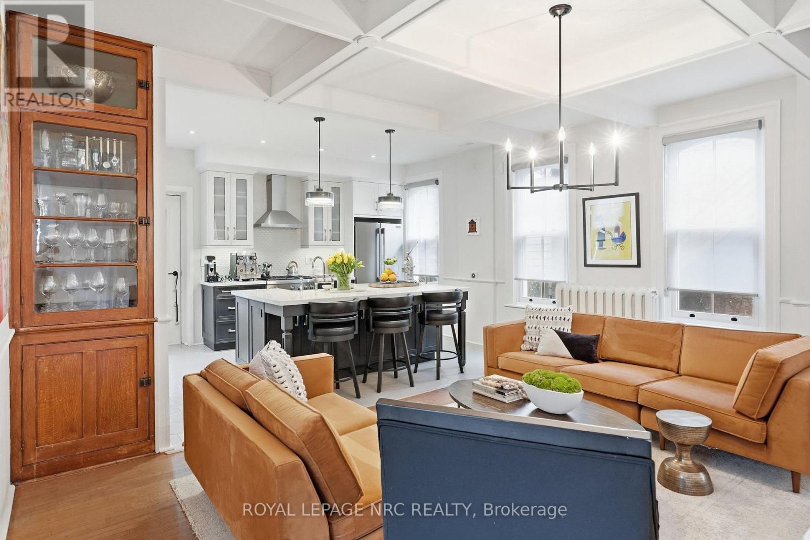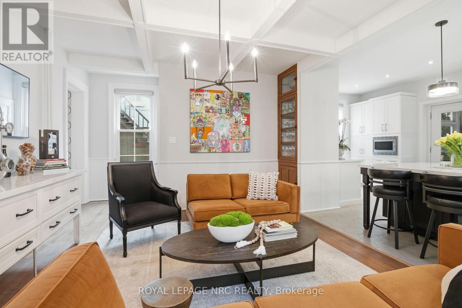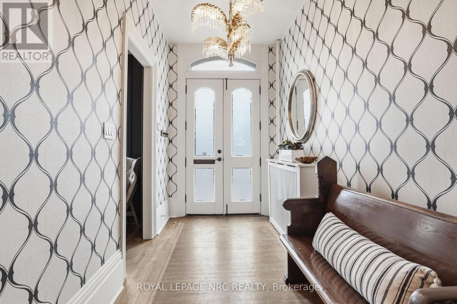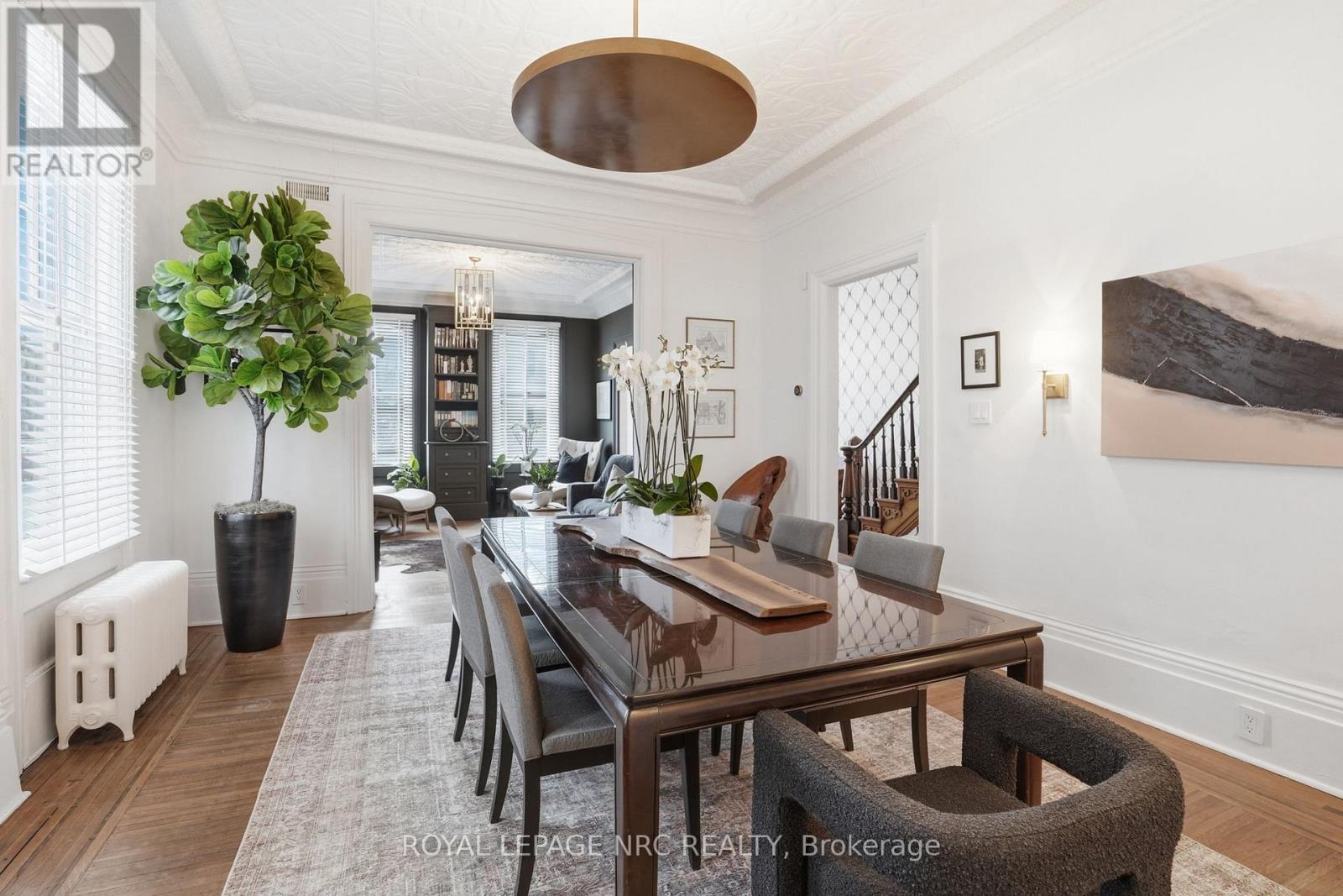 Beautifully renovated, tastefully decorated brownstone is nestled in an urban chic downtown location on trendy "Lawyer's Row". This stunning home has been updated to today's standards while preserving the character and fine craftmanship in such details as intricate ceilings, high coved moldings, wide baseboards, stained glass, marble fireplace. Renovated throughout by HGTV's Scott McGillivray and interior design byJohn Kazmir, bringing luxurious interiors, gorgeous lighting, custom cabinetry and open light filled spaces. Chef's gourmet kitchen with large island, coffered ceiling, quartz counters, Thermador stainless steel gas range, fridge, dishwasher and 36 bottle high end wine fridge, heated floors, second staircase to 2nd floor, walkout to cedar screened Sunroom overlooking private, landscaped backyard, ideal for seasonal entertaining. Inlaid hardwood throughout, deep windows, 10 ft. ceilings on main and second floors, custom bookshelves, 2 pc powder rm. Second floor w/ 3 spacious bedrooms, 2 full baths incl. ensuite privilege w/claw foot tub, reclaimed brick wall, stained glass window. Second full bath w/laundry, double sinks, glass shower, hydronic towel warmer. Updated windows, roof (2018) high efficiency boiler (2018) c/air (2018). NEW ONE OF A KIND GLASS WALLED WINE CELLAR - up to 2100 bottle CAPACITY, Vintage Cellar wine racks & 2 wall mounted oak Champagne racks. Ideally located a short walk to Montebello Park, downtown businesses, shops and cafes, Niagara's best restaurants, Meridian Arena, Performing Arts Centre. Close to major highways, Ridley College, Brock U, Toronto, Hamilton, Buffalo & Niagara airports, fabulous hiking and cycling trails, scenic Niagara wine routes, all amenities., Commercial zoning allows many live/work opportunities. This impeccable home will impress the most discerning buyer! See Supplemental documents for additional information and features. (id:64974)