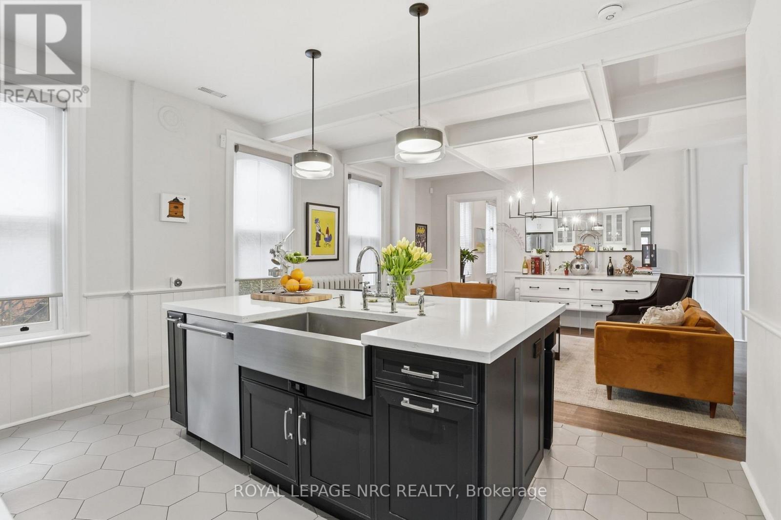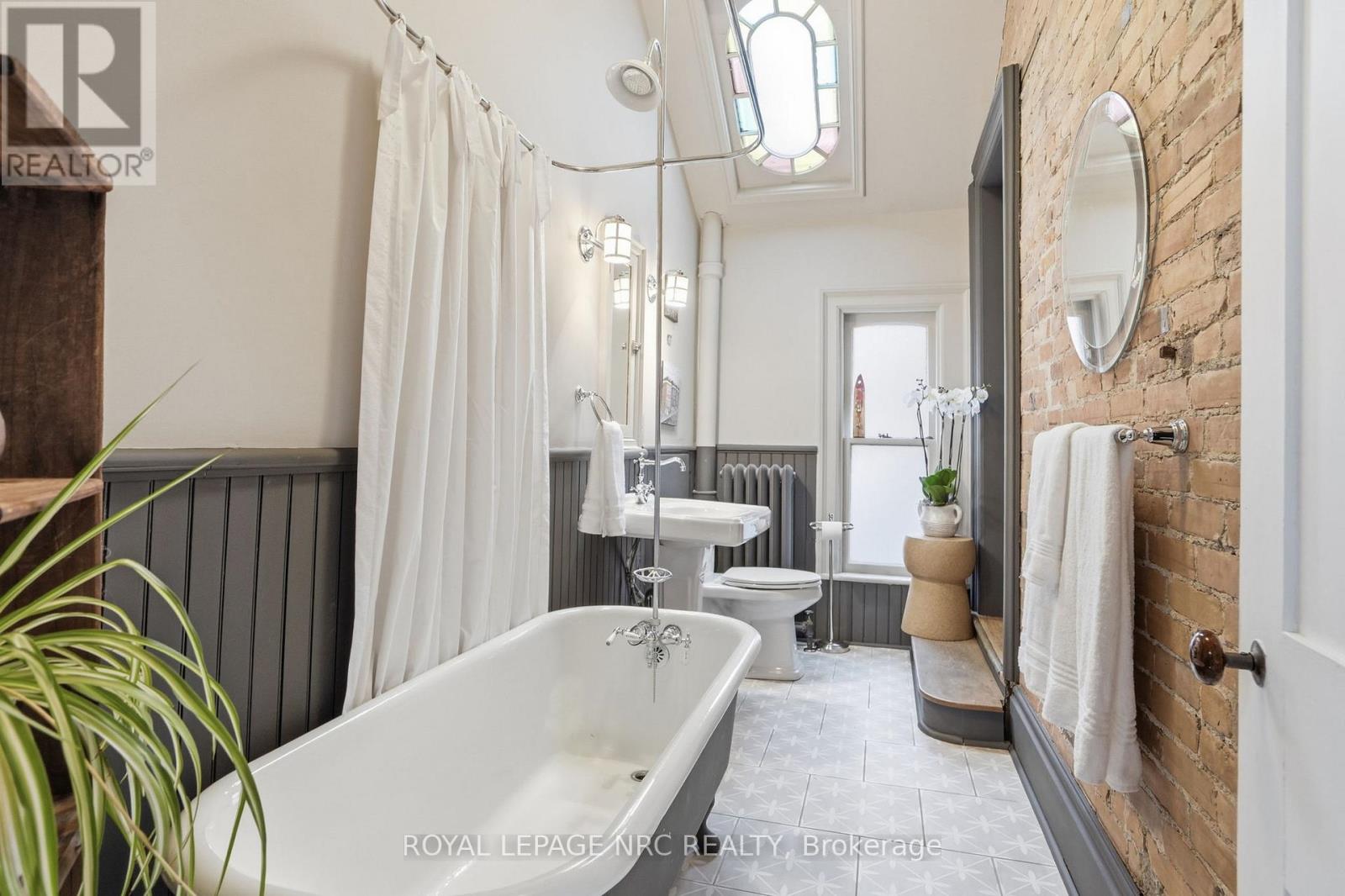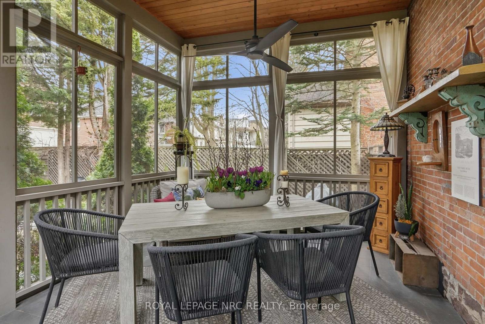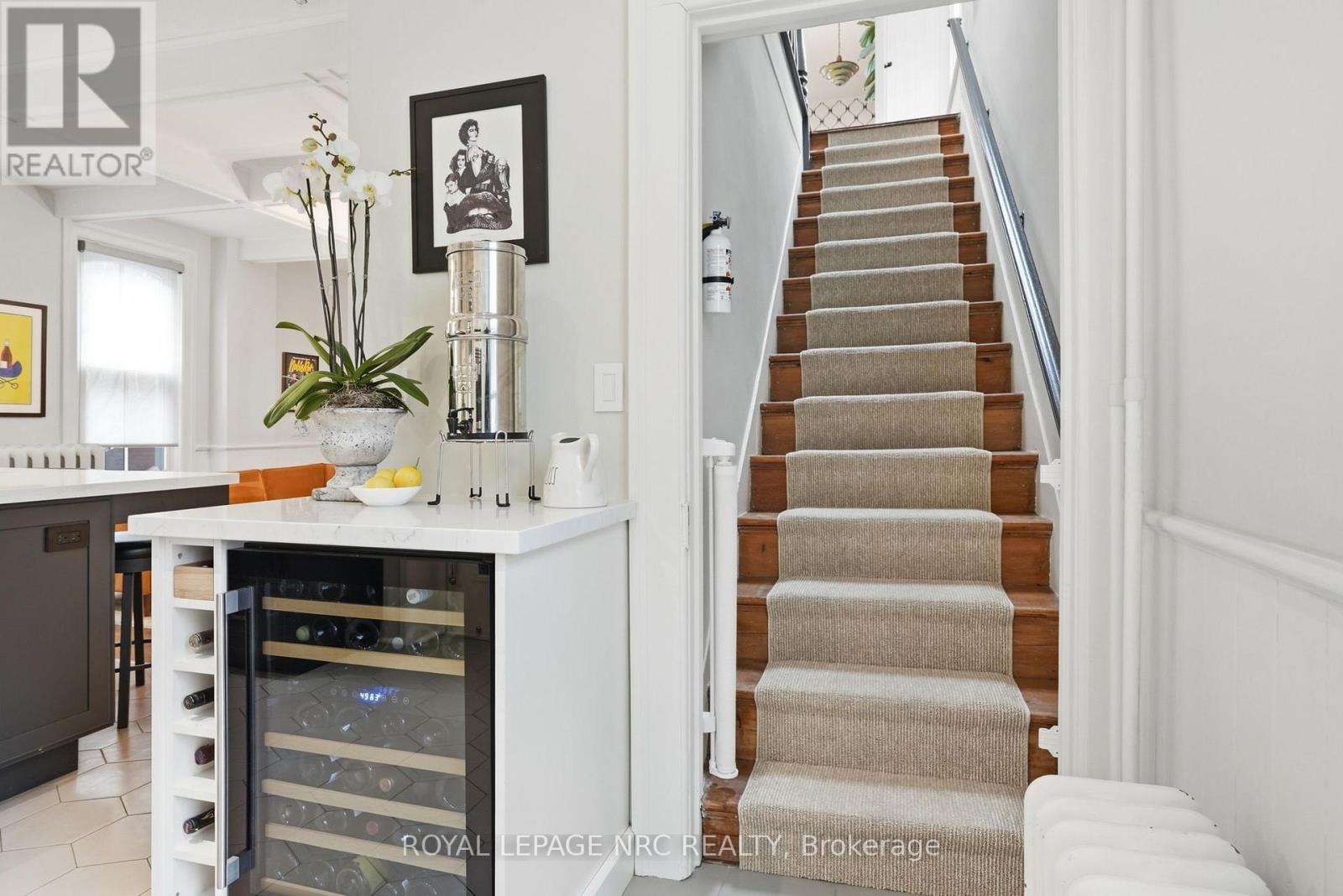 Beautifully renovated, tastefully decorated brownstone is nestled in an urban chic downtown location on trendy "Lawyer's Row". This stunning home has been updated to today's standards while preserving the character and fine craftmanship in such details as intricate ceilings, high coved moldings, wide baseboards, stained glass, marble fireplace. Renovated throughout by HGTV's Scott McGillivray and interior design byJohn Kazmir, bringing luxurious interiors, gorgeous lighting, custom cabinetry and open light filled spaces. Chef's gourmet kitchen with large island, coffered ceiling, quartz counters, Thermador stainless steel gas range, fridge, dishwasher and 36 bottle high end wine fridge, heated floors, second staircase to 2nd floor, walkout to cedar screened Sunroom overlooking private, landscaped backyard, ideal for seasonal entertaining. Inlaid hardwood throughout, deep windows, 10 ft. ceilings on main and second floors, custom bookshelves, 2 pc powder rm. Second floor w/ 3 spacious bedrooms, 2 full baths incl. ensuite privilege w/claw foot tub, reclaimed brick wall, stained glass window. Second full bath w/laundry, double sinks, glass shower, hydronic towel warmer. Updated windows, roof (2018) high efficiency boiler (2018) c/air (2018). NEW ONE OF A KIND GLASS WALLED WINE CELLAR - up to 2100 bottle CAPACITY, Vintage Cellar wine racks & 2 wall mounted oak Champagne racks. Ideally located a short walk to Montebello Park, downtown businesses, shops and cafes, Niagara's best restaurants, Meridian Arena, Performing Arts Centre. Close to major highways, Ridley College, Brock U, Toronto, Hamilton, Buffalo & Niagara airports, fabulous hiking and cycling trails, scenic Niagara wine routes, all amenities., Commercial zoning allows many live/work opportunities. This impeccable home will impress the most discerning buyer! See Supplemental documents for additional information and features. (id:64974)