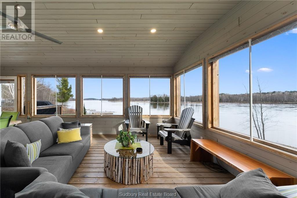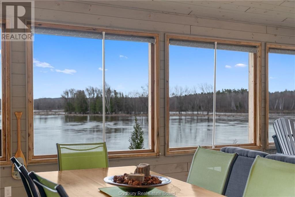 Imagine waking up to breathtaking panoramic views of the majestic Spanish River every day! This stunning four-season waterfront home offers the perfect blend of tranquil riverside living and access to incredible outdoor adventures. With three large bedrooms and two full bathrooms, there's ample space for family and friends to relax and unwind. Embrace the open-concept design, where natural light floods the spacious living areas through large windows, showcasing the spectacular river views. The seamless flow is perfect for entertaining, extending effortlessly to the spacious porch, your ideal spot for hosting gatherings and enjoying the serene waterfront ambiance. Set on over two acres of private land, this property offers a true escape. Step out onto your deck and soak in the beauty of your surroundings. Enjoy endless summer days swimming and fishing right off your own dock. For the adventurous at heart, the location is a dream come true with close proximity to fantastic skidoo and ATV trails for year-round exploration. Water enthusiasts will be thrilled with the boating access all the way to Manitoulin Island and beyond, opening up a world of aquatic adventures right from your backyard. This isn't just a home; it's a lifestyle. Don't miss this incredible opportunity to own your piece of waterfront paradise on the Spanish River! Schedule your private viewing today. (id:64974)