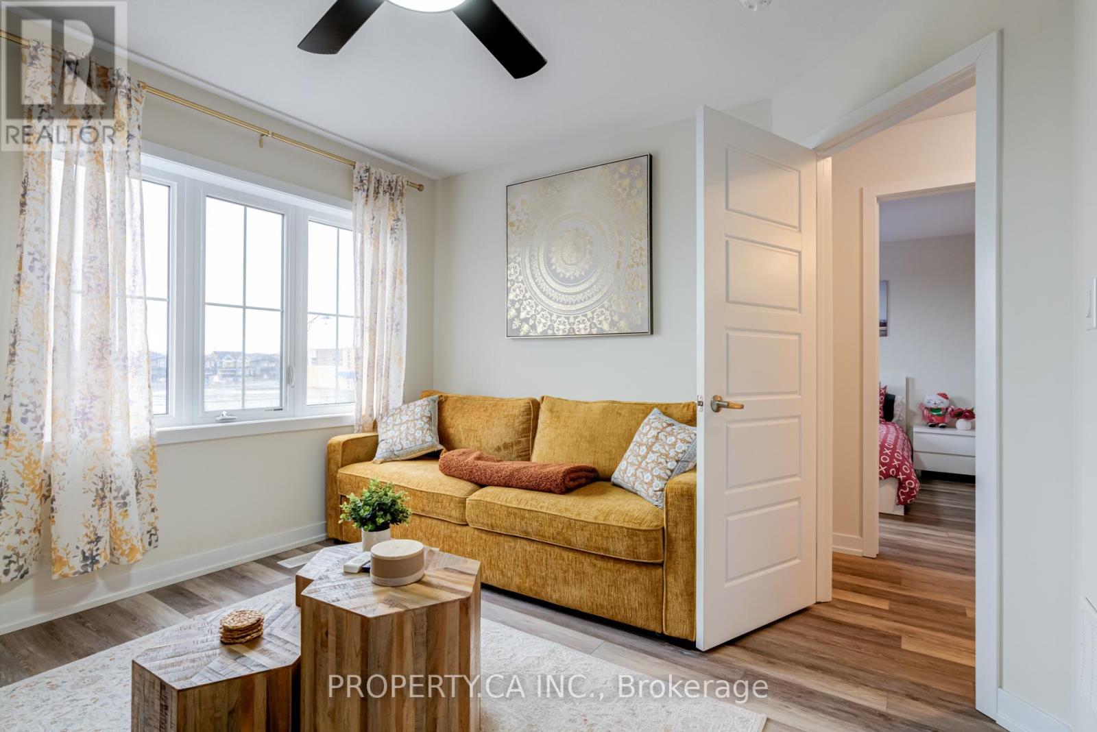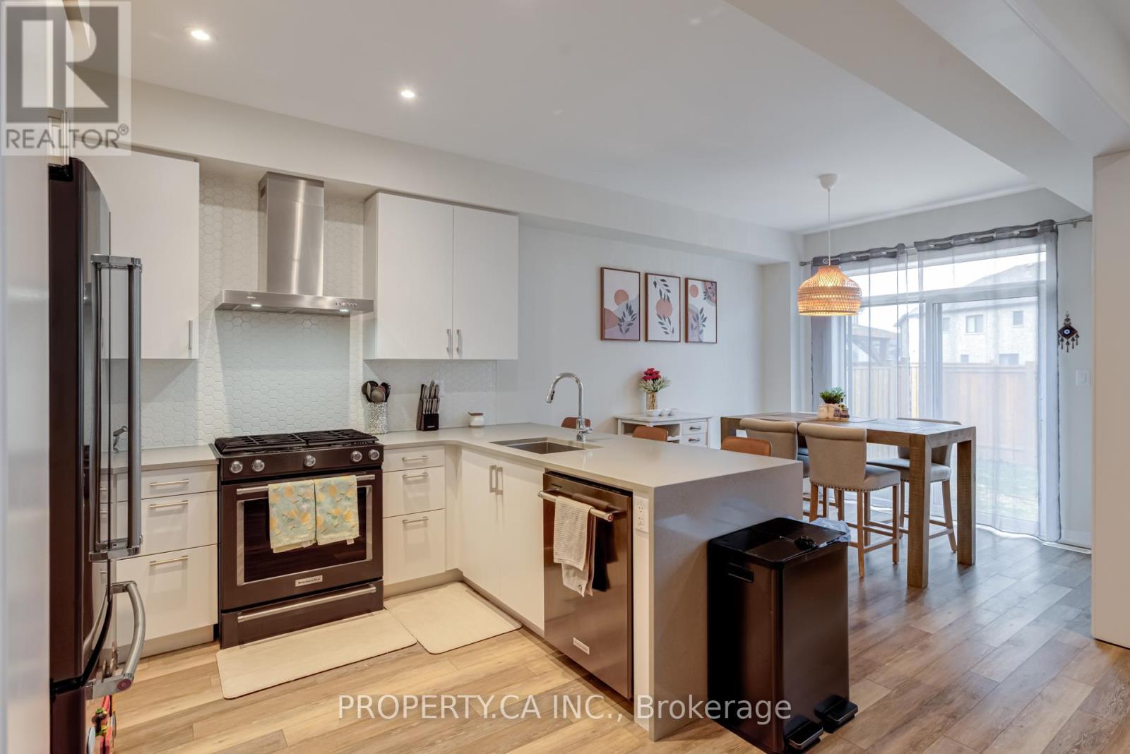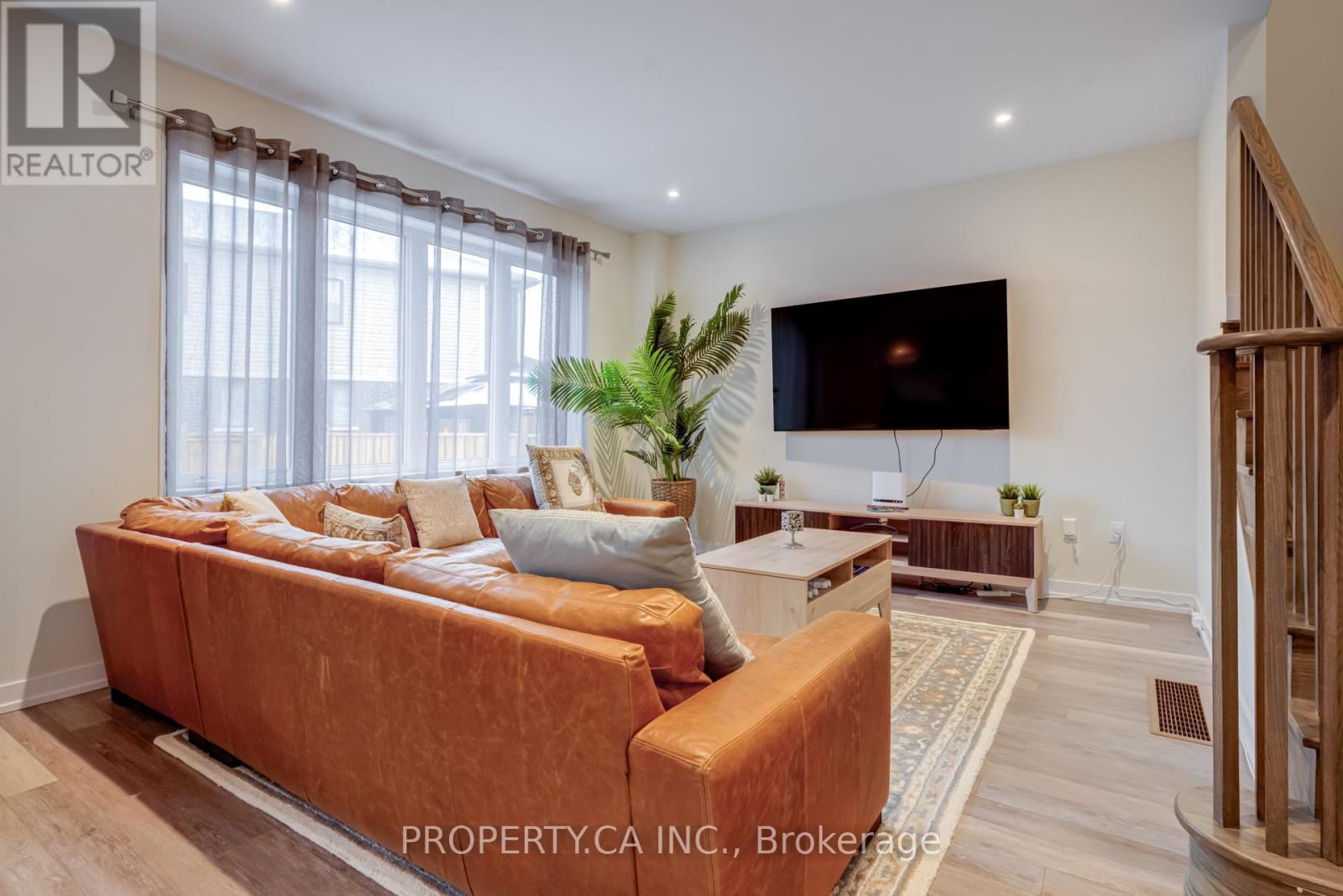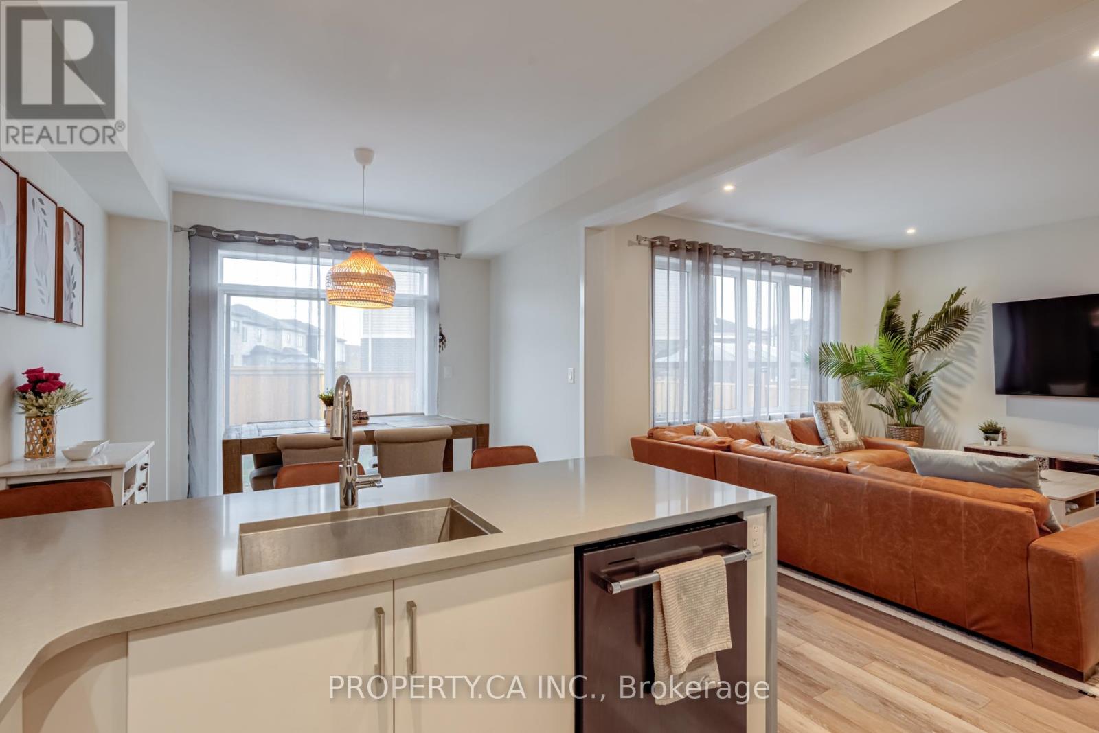 Welcome to this stunning detached home nestled in Caledonia's sought-after Avalon community. Thoughtfully designed for families, this spacious 3-bedroom, 4-bathroom home offers over 2,000 sq ft of above-grade living space plus a fully finished basement with 2 additional bedrooms, giving you room to grow without ever feeling like you've outgrown it. The open-concept main floor is bright and welcoming, featuring smooth ceilings and pot lights throughout. The kitchen flows seamlessly into the dining area and living space, making it ideal for family dinners and weekend entertaining a like. Step outside to a fully fenced backyard complete with a built-in BBQ platform and gas line for a fire pit or heater. Every inch of this home is carpet-free with comfort-height vanities and a keypad entry front door adding practical touches that families will appreciate from day one. Upstairs you'll find a spacious primary suite with a private ensuite, two bedrooms, and a full bathroom. The fully finished basement extends your living space with two additional bedrooms and a full bathroom complete with a walk-in shower, offering the flexibility of a kids' retreat, guest suite, or home office. The mudroom off the garage includes hot and cold water access and built-in cabinetry. The garage is EV charger-ready and set up for year-round use. Situated directly across from a park with tennis and basketball courts, with a new elementary school just steps away. This is a move-in ready home in a neighbourhood built for families. (id:64974)