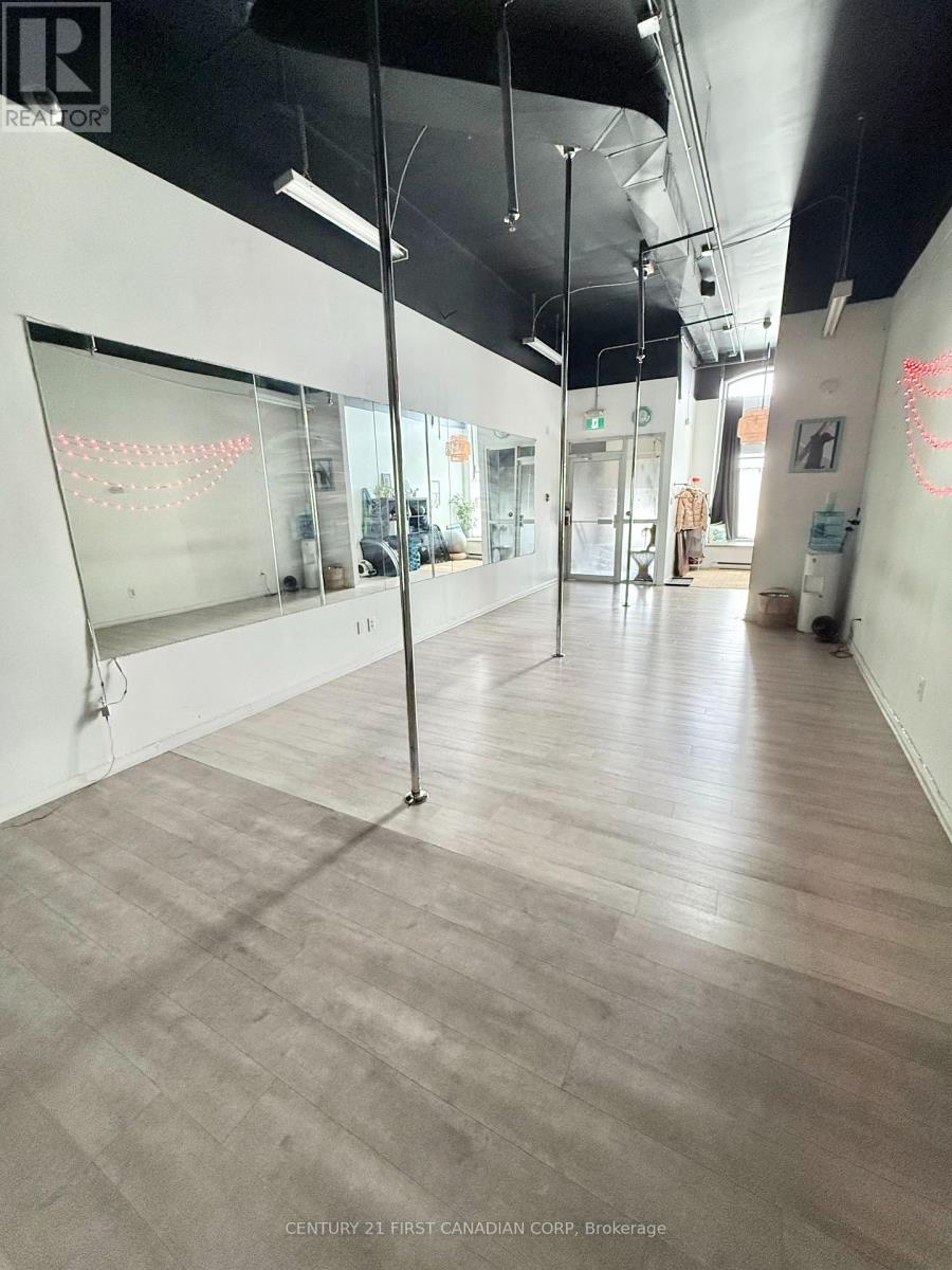 For Lease - Approx. 700 sq ft commercial space in downtown London. Unique small-format unit ideal for boutique retail, personal service, wellness, studio, or office use. Features include high ceilings, large front windows, open-concept layout, updated flooring, private washroom, and strong character throughout. Situated in a distinctive heritage-style building in a central downtown location with excellent access to the core. A great opportunity for businesses seeking an affordable, professional space with visual appeal. Lease price is plus TMI. (id:64974)