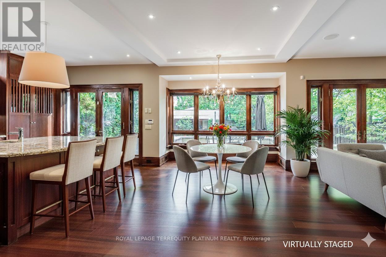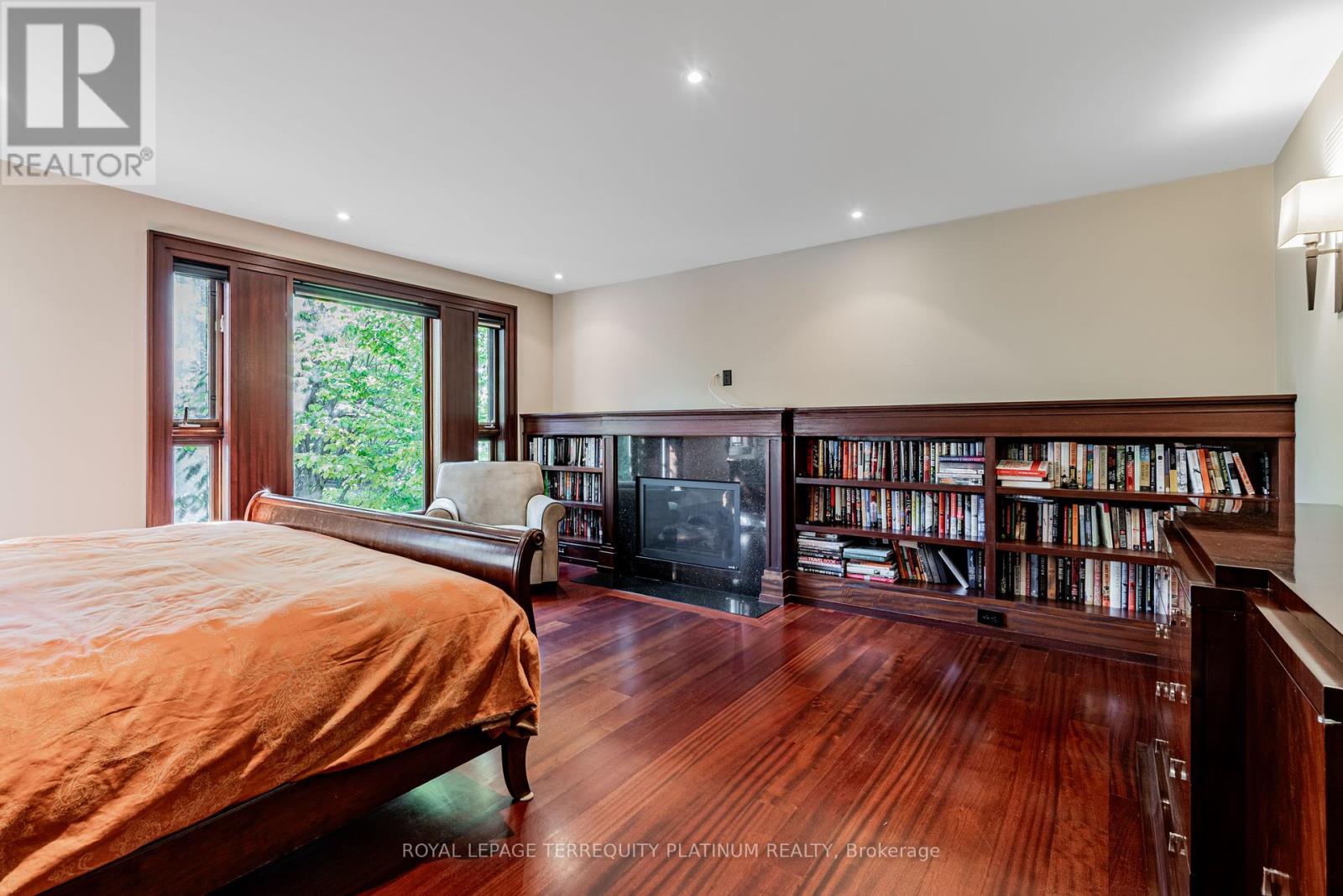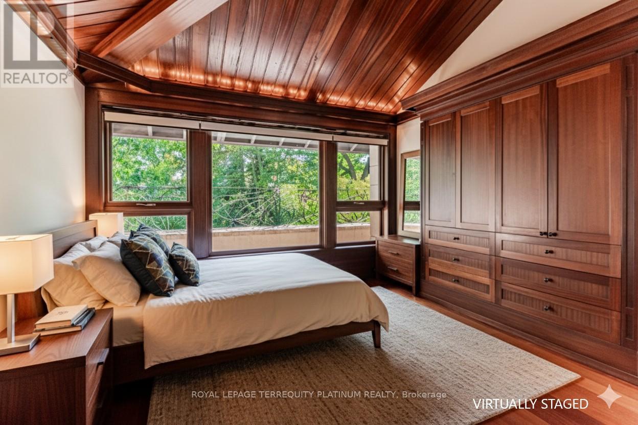 An architectural tour de force by acclaimed Robert Le Blond, recipient of the 1990 Governor Generals Award in Architecture ("Head-Smashed-In Buffalo Jump" in Alberta, now a UNESCO World Heritage Site), this 20-year-young bespoke residence is a French Art Deco masterwork of craftsmanship with inspired ironwork by Goudy from Spain. Offering over 5,000 sq ft of living space on a coveted corner by Chorley Park in prestigious Rosedale, the home is clad in rare Manitoba Tyndall stone, prized for its striking fossilized patterning. The residence blends enduring elegance with modern comfort, from the heated front porch and rear veranda to the soaring 17-foot living room crowned by a vintage theatre chandelier and wrapped in rich, mahogany-stained Jatoba wood wainscoting and floors. Formal entertaining spaces flow seamlessly into the chefs kitchen, breakfast area, and family room, all opening onto a landscaped garden sanctuary. The detached, heated garage, complete with a skylight, wet bar, shower, and custom storage, offers versatility as a private workshop, while a gated driveway ensures both privacy and grandeur. With five bedrooms, two offices, five fireplaces, six bathrooms, wrap-around balcony and even a dedicated pet wash, every element reflects a commitment to refined living without compromise. (id:64974)
