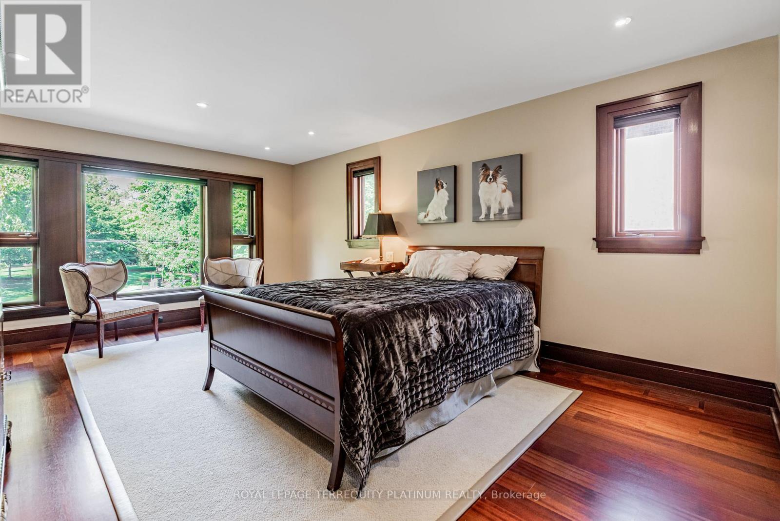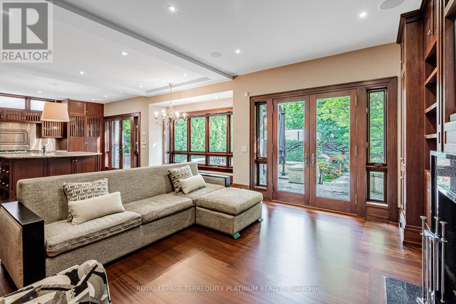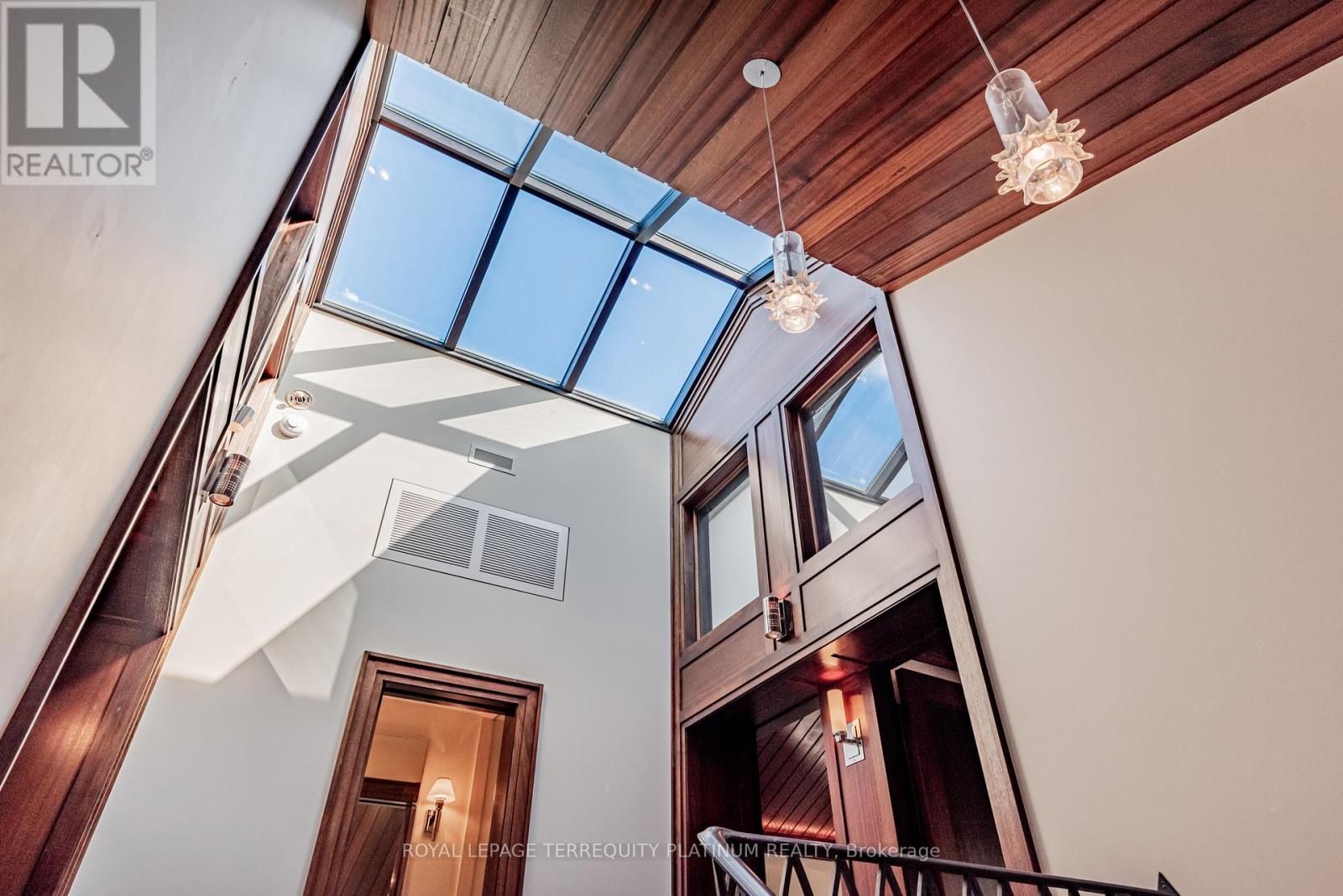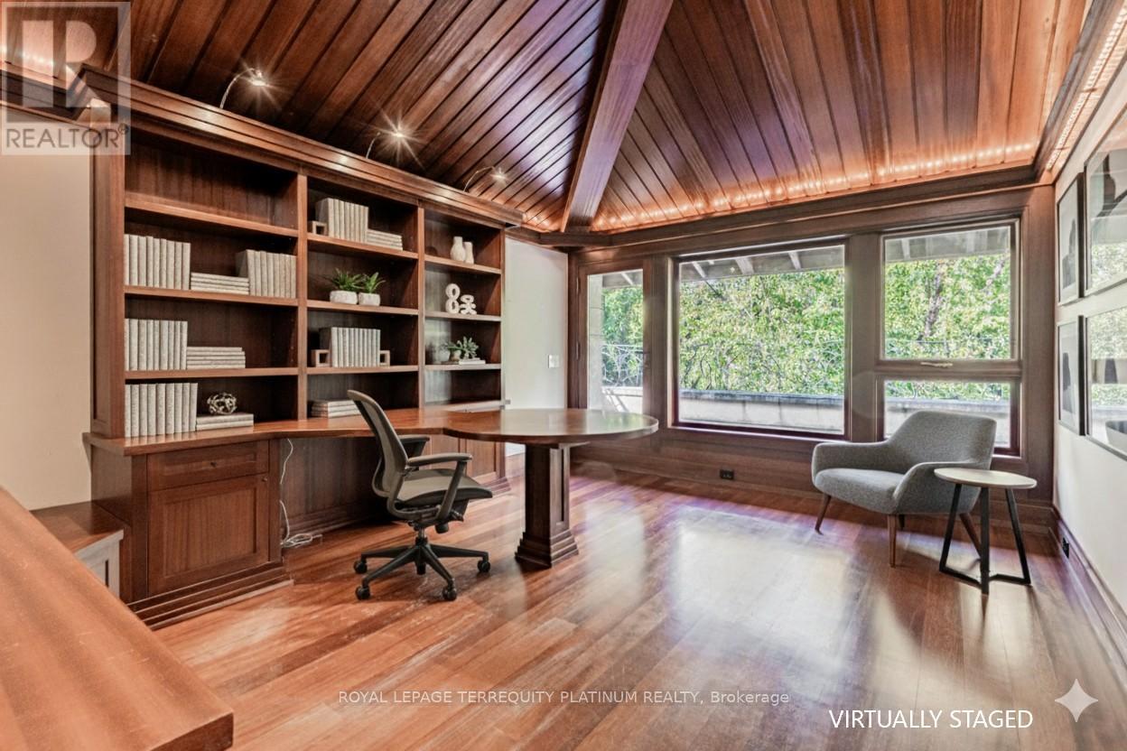 An architectural tour de force by acclaimed Robert Le Blond, recipient of the 1990 Governor Generals Award in Architecture ("Head-Smashed-In Buffalo Jump" in Alberta, now a UNESCO World Heritage Site), this 20-year-young bespoke residence is a French Art Deco masterwork of craftsmanship with inspired ironwork by Goudy from Spain. Offering over 5,000 sq ft of living space on a coveted corner by Chorley Park in prestigious Rosedale, the home is clad in rare Manitoba Tyndall stone, prized for its striking fossilized patterning. The residence blends enduring elegance with modern comfort, from the heated front porch and rear veranda to the soaring 17-foot living room crowned by a vintage theatre chandelier and wrapped in rich, mahogany-stained Jatoba wood wainscoting and floors. Formal entertaining spaces flow seamlessly into the chefs kitchen, breakfast area, and family room, all opening onto a landscaped garden sanctuary. The detached, heated garage, complete with a skylight, wet bar, shower, and custom storage, offers versatility as a private workshop, while a gated driveway ensures both privacy and grandeur. With five bedrooms, two offices, five fireplaces, six bathrooms, wrap-around balcony and even a dedicated pet wash, every element reflects a commitment to refined living without compromise. (id:64974)