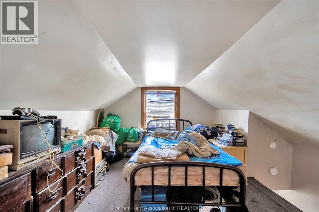One floor living made easy in this affordable 1.5 storey home in Chatham. The main floor consists of a family room, living room, full bath, kitchen, bedroom and laundry. Upstairs you'll find extra space which could be used as storage, a bedroom or den. Outside features a large backyard over 200 feet deep! With the metal roof you'll never have to replace shingles again. Currently rented to long term tenants paying $1000 plus utilities. 36-48 hours required for showings. (id:64974)