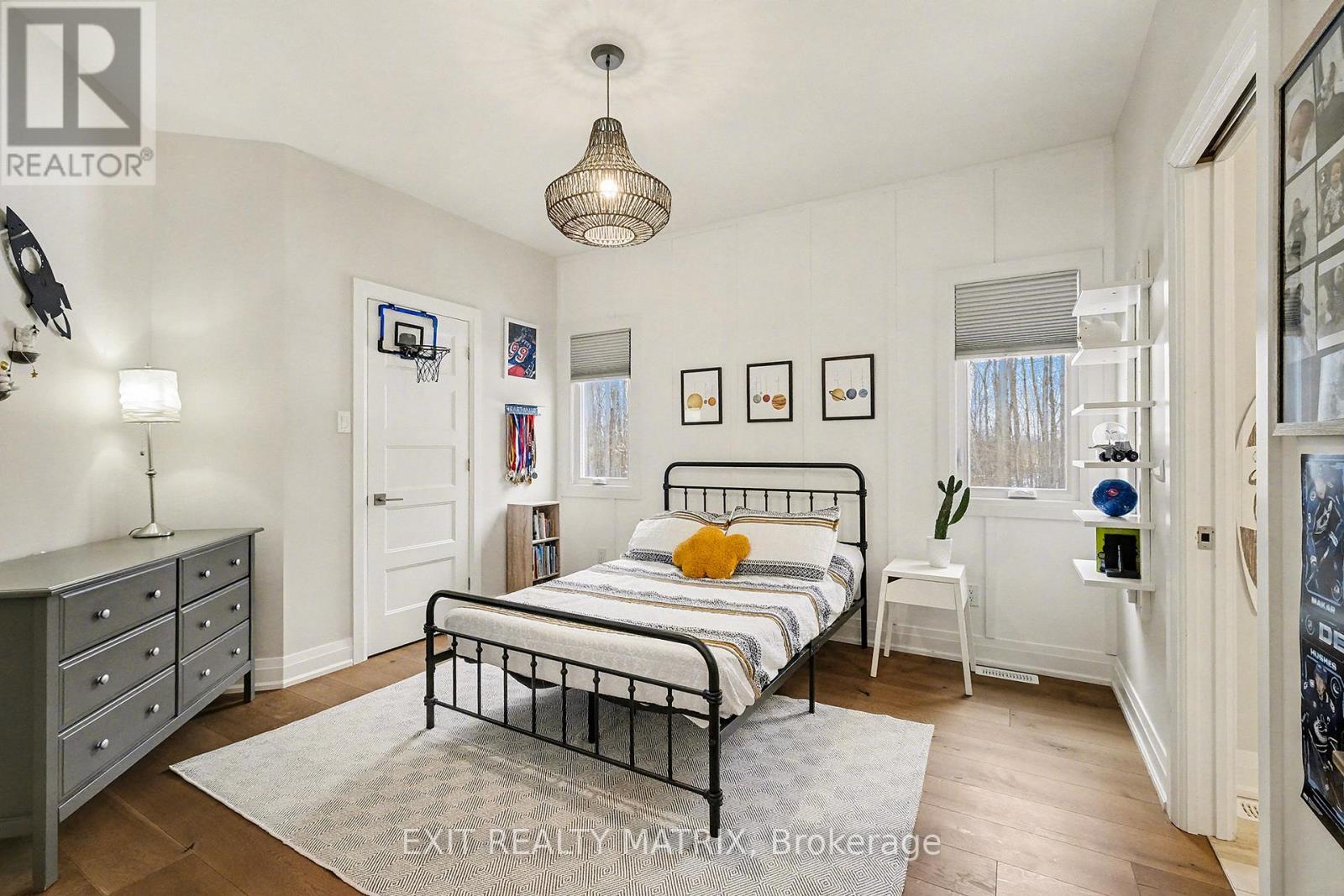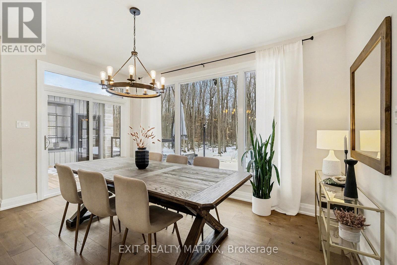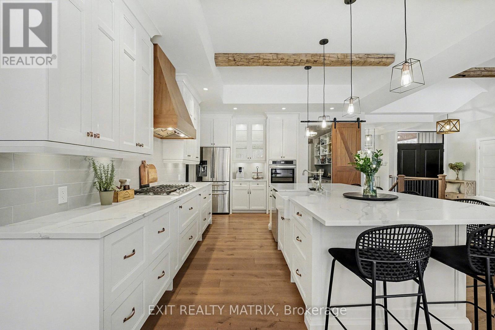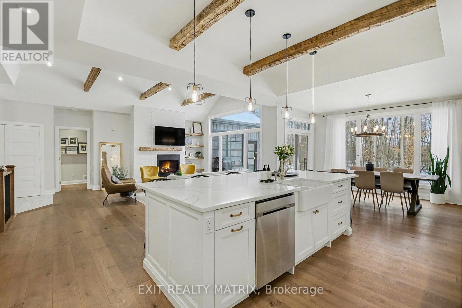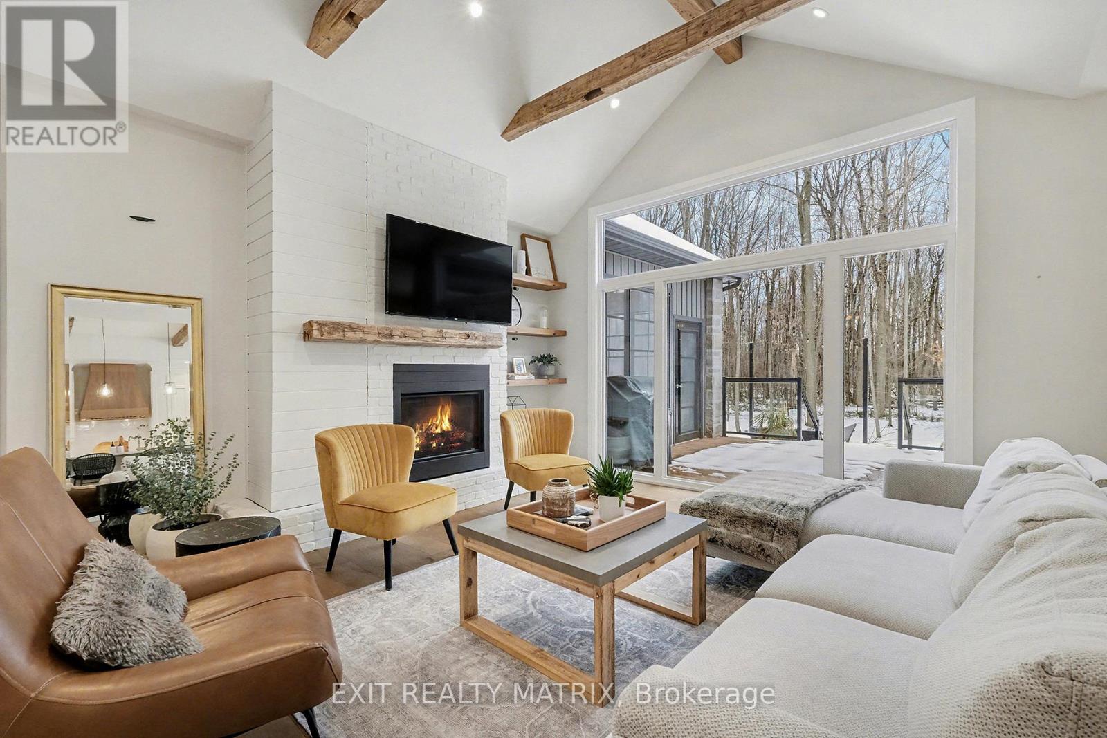 Prepare to discover the pinnacle of luxury country living in this breathtaking custom designer-built estate, perfectly poised on a premium, private treed lot just shy of four acres. Imagine waking up to mornings flooded with light, where the cathedral ceilings soar above elegant wood beam accents, setting the stage for unforgettable gatherings around the colossal 11-foot quartz island that anchors the open-concept gourmet kitchen, complete with a massive walk-in pantry and walls of fenestration framing serene outdoor views. The main floor offers a private sanctuary in the primary suite, boasting a walk-through closet, a highly upgraded ensuite with custom solid wood vanities and a large soaker tub, and direct access to a cozy, fireplace-warmed sunroom-your perfect year-round retreat. From the double attached garage, a large mudroom and main-floor laundry ensure family life stays organized, while two spacious children's bedrooms are connected by a high-end Jack and Jill washroom and a charming, flexible nook area, ideal as a reading retreat or homework station. The lower level is an entertainer's dream playground, featuring a sprawling bar area, a dedicated movie room for cinematic nights, and a generous kids' playroom beside it. Also on the lower level, a fourth bedroom, a fully equipped gym, and convenient walk-up garage access-perfectly accommodating multi-generational living. This dream is complete with an absolutely massive detached shop (32ft x 48ft) , featuring two large bays, a third side bay, and a loft, providing an incredible space for storing every toy and piece of equipment, cementing this home as the ultimate rural escape, truly overflowing with too many high-end, custom finishes to count. Don't miss out, book your private visit today! (id:64974)