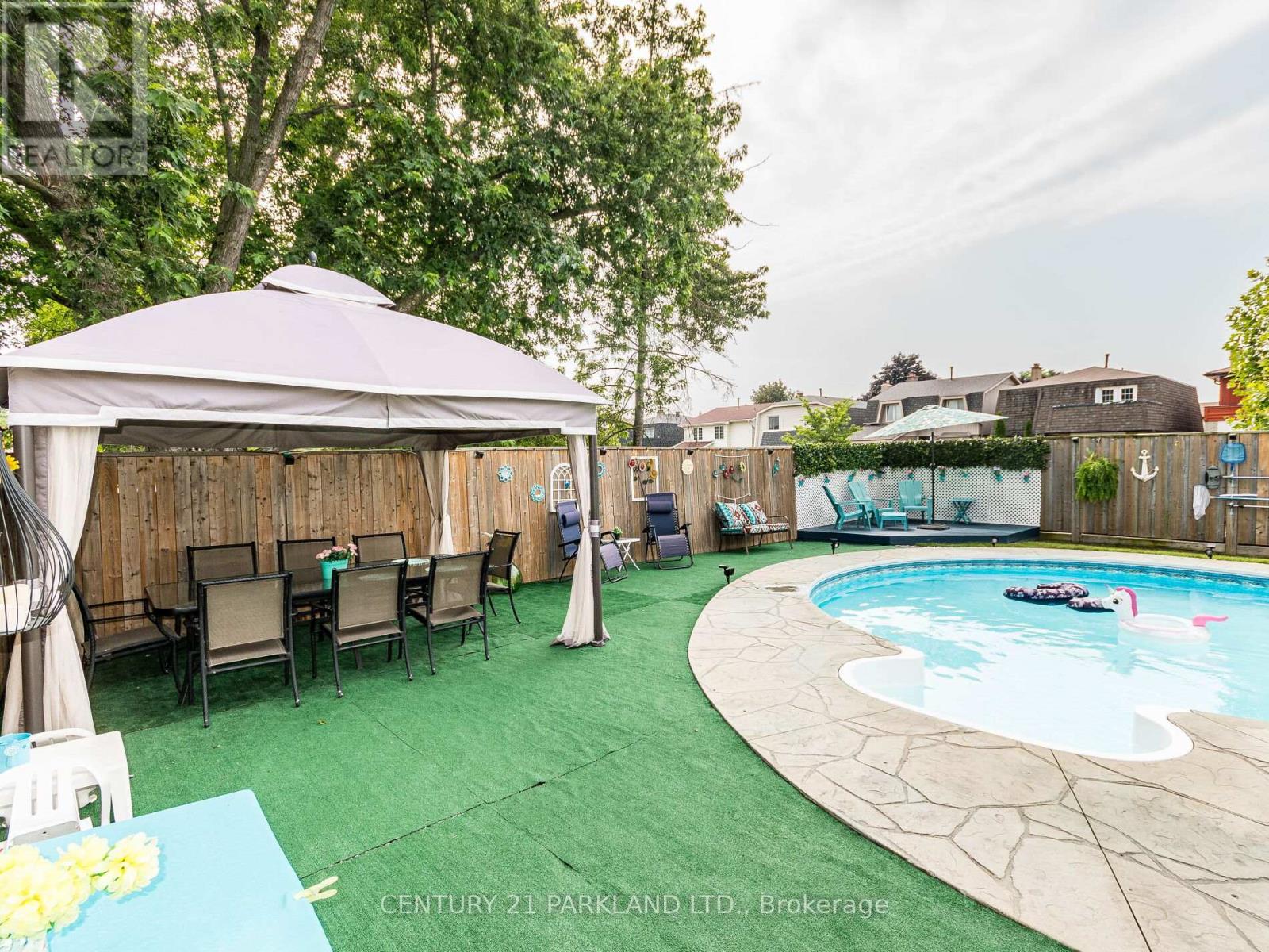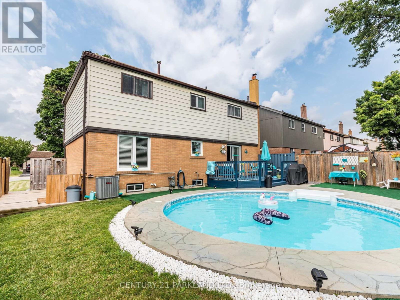 Desirable Amberlea Neighbourhood. This featured 4 bedroom detached home situated on a corner not with no backyard neighbours allows you the peace and tranquility to enjoy the resort like Inground pool and yard featuring multiple decks. Upgraded Kitchen with quartz counters and stainless steel appliances. Wood Burning Fireplace to cozy up to on the cold family movie nights. Entertainers paradise for festive events can be hosted in the spacious Living Room and Dining Room. Main floor Laundry with Garage Access . Conveniently located to all your amenities including shops, restaurants and area events. Minutes to 401 & 407. Move in Ready for you to call this home.. . (id:64974)