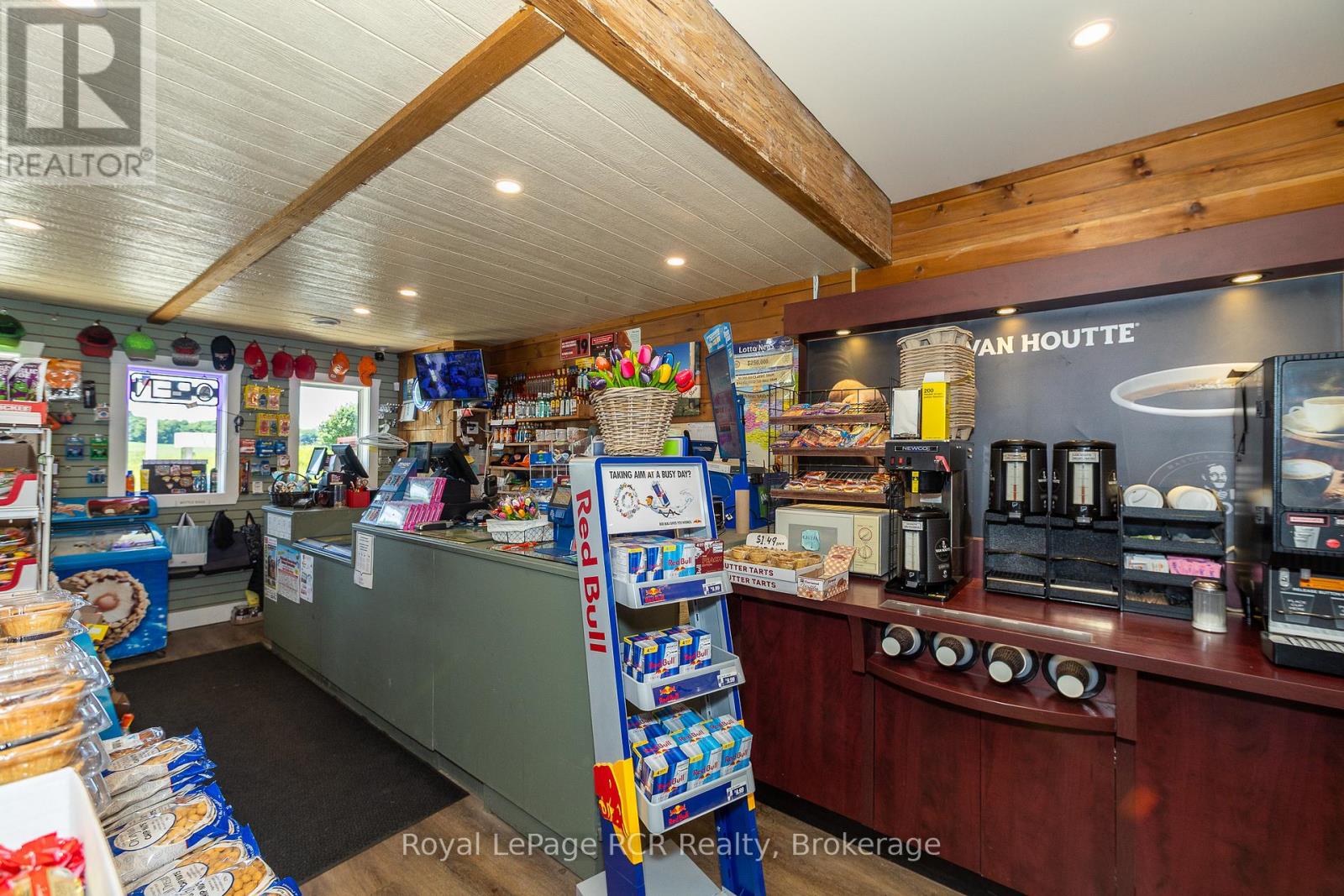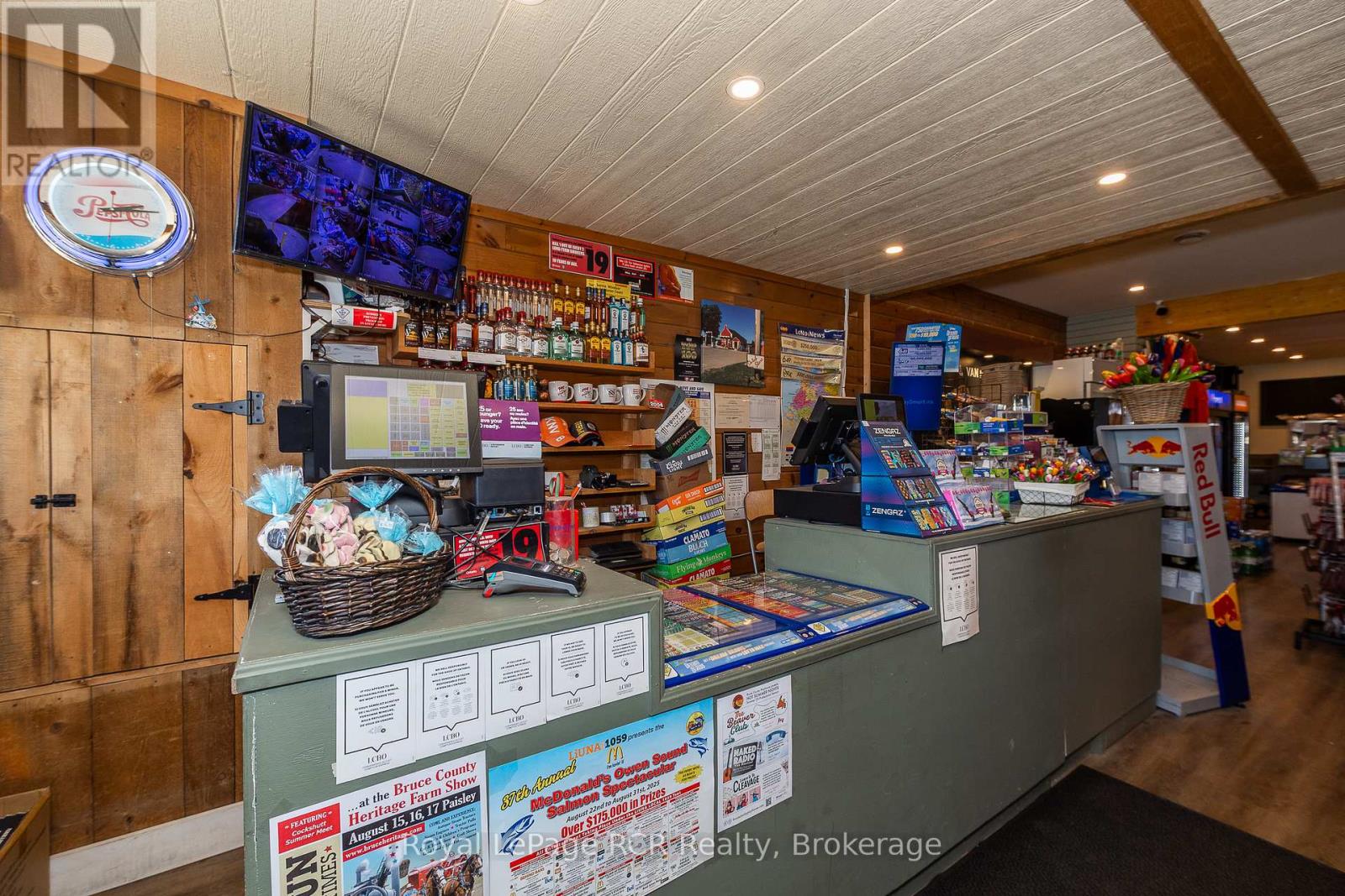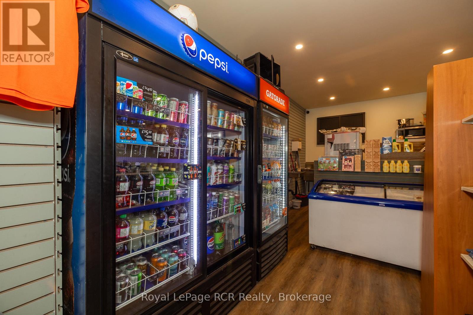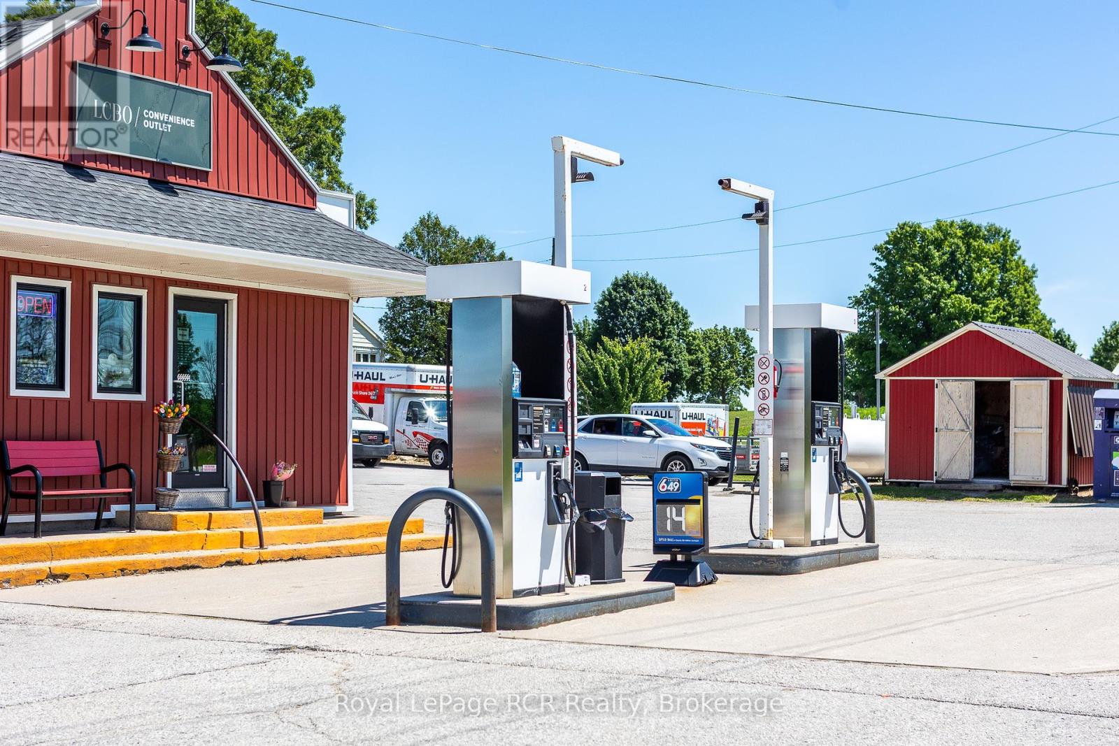 Profitable Fuel Station, Retail Business & Residence. Nestled on a busy highway in Grey County's scenic countryside, this successful independent fuel station, European delicatessen, and retail operation presents an exceptional investment opportunity in Georgian Bluffs, just southwest of Owen Sound. Ideally situated on Grey Road 18, a major county route with approx. 8,500 vehicles daily, this location benefits from excellent visibility and steady traffic from locals and travelers heading to and from Toronto, Hamilton, Barrie, and Kitchener-Waterloo. The property includes two modern fuel pumps offering Premium, Midgrade, and Regular gasoline, plus a dedicated diesel pump. Storage features three underground 22,700L tanks and a 5,000L above-ground diesel tank. The retail area has a convenience store with a walk-in beer cooler, LCBO sales, a European-style deli kitchen, food concession trailer with refrigeration, lottery sales, coffee stand, and a profitable U-Haul franchise. The building also features dry basement storage, natural gas heating, and central air, two owned sale terminals and a 16-camera security system ensure secure, efficient operations. Included in this package is a four-bedroom, two-bath brick residence offers comfortable living, with an oversized detached garage/workshop. A large paved lot provides generous parking. The recently upgraded septic system supports future business growth. Store and washrooms are fully accessible. Georgian Bluffs and the surrounding area feature a strong economy supported by agriculture, tourism, and retail. The regions rich farmland, vibrant community, and natural beauty including the Bruce Peninsula and Niagara Escarpment draw year-round visitors and drive consistent growth. This is a rare chance to acquire a turnkey business with multiple revenue streams and an included residence in a prime, high-traffic location. (id:64974)