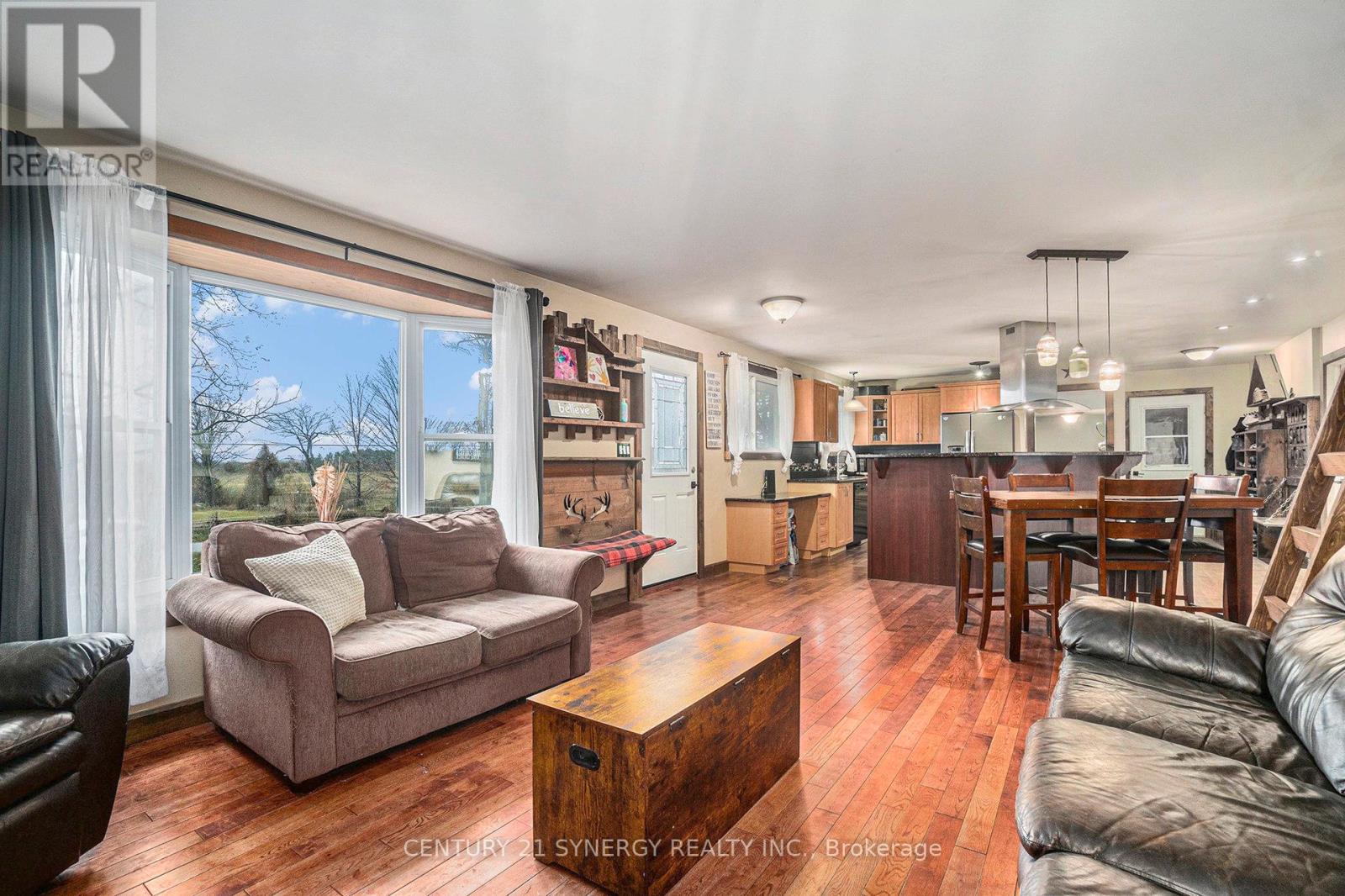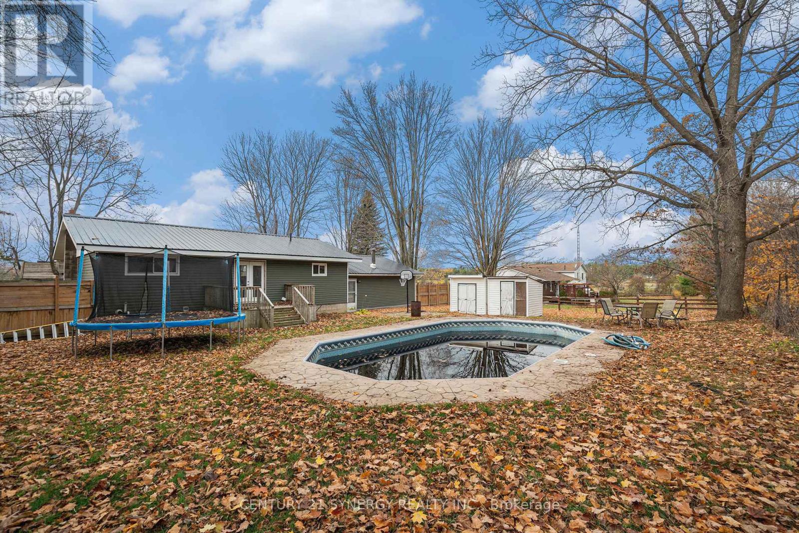 OPEN HOUSE SAT DEC 6 2:00 PM-3:00 PM. Are you looking to right-size or downsize? This charming home could be just what you're searching for. With everything on one level, there's plenty of room for your kids and grandchildren to visit. The open concept kitchen, dining, and living room create a warm and cozy atmosphere, perfect for family gatherings. Large windows overlook the private lot with mature trees, allowing for natural light to flood in at just the right time. The primary room on the main level offers convenience, while a second multi-use room with patio doors to the back deck provides flexibility. Outside, you'll find an in-ground pool for relaxing on hot summer days, along with plenty of space for your kids and pets to roam. The finished basement offers even more space, perfect for extra bedrooms, an office, storage, or a playroom for the kids. Enjoy the outdoors on the good-sized patios while the kids play in the pool or treehouse. With a double-car garage and sheds for storage, you'll have plenty of space for pool toys, gardening tools, and lawn furniture, leaving room for your cars in the attached garage. Located on a dead-end road on the fringe of Smiths Falls, your daily commute to Smiths Falls or Perth will be a breeze. Don't miss out on this lovely home that offers both comfort and convenience. Approximate utility costs are as follows: Hydro is $2300. yrly Heat is $2400. yrly. (id:64974)