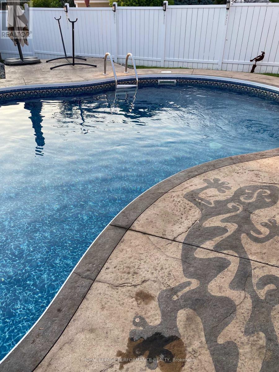 Welcome to this beautiful home in the east part of Rockland - a place where growing families can truly settle in and make lasting memories. Set on an oversized, fully manicured lot, this property offers the kind of outdoor space that's hard to find. Whether you're hosting summer barbecues, watching the kids play, or simply unwinding after a long day, the backyard is your own private retreat - complete with an heated salt water in-ground pool (6ft on the deep end), bar with fridge, gazebo, and storage shed. Inside, the home is warm, bright, welcoming, and thoughtfully updated. The main floor offers the convenience of a laundry room, powder room, and inside access to the double car garage. The beautifully renovated kitchen (100K+) is truly the highlight of the home, with up to celing white cabinets, over the sink window, gas range, pots and pans drawers, quartz countertops, breakfast island and a professionally opened-up wall to create a seamless flow into the dining and living rooms. From the dining room, a patio door leads directly to the backyard oasis. Upstairs, you'll find three great size bedrooms and a full bathroom, including a spacious primary suite with a walk-in closet with organizers and cheater access to bathroom. Luxury vinyl flooring runs throughout both the main and second floors (except primary bedroom) and newer carpets in stairs to upper level and primary bedroom. The fully finished basement adds even more versatility, offering a rec room, a full bathroom with a custom shower, a den, and a dedicated office space - ideal for working from home, hobbies, or giving everyone a little extra room to grow. Located in a fantastic family-friendly neighbourhood steps away from the park with easy highway access, it's the perfect place to start your next chapter. Kitchen (2022), AC (2025), Windows and front door (2025), Shingles (2016), Pool Liner (2021), Pool Filter (2025), Luxury Vinyl on main floor (2022) (id:64974)