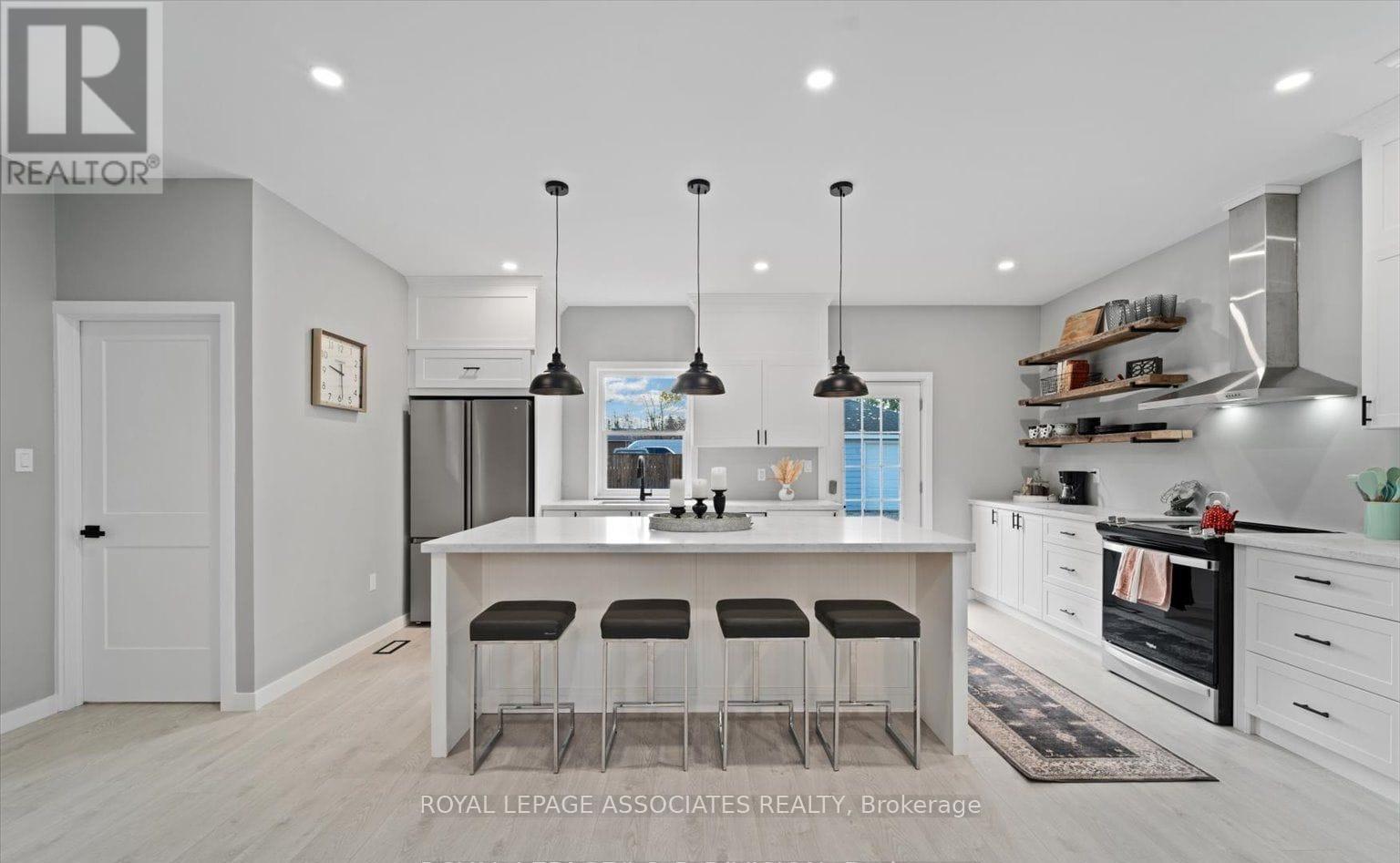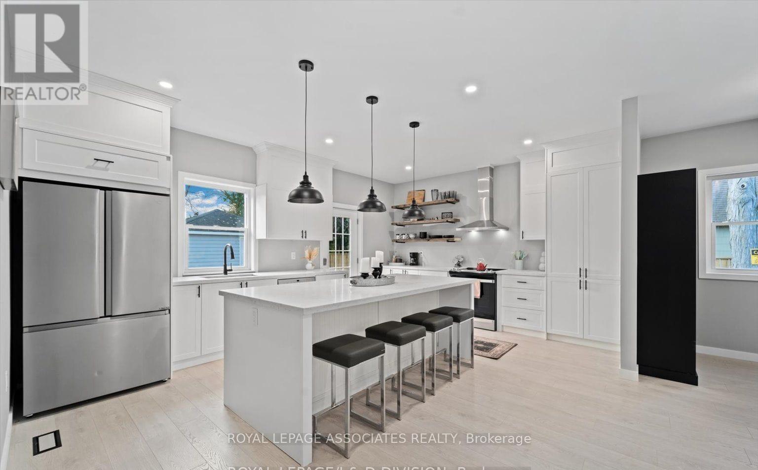 This 5 bedroom, 4 bath detached residence perfectly blends farmhouse charm with modern luxury. Set on a large lot, the property features a newly rebuilt driveway (2025) with parking for up to 6 cars, a private detached garage, and a new storage shed (2023).The main floor includes a chef's kitchen with a large island, stainless steel appliances, and walkout to the deck. Along with a bedroom/office with a 2 piece bath. Upstairs you will find the original sunroom and the spacious bedrooms. The primary suite features its own ensuite bath. Each bedroom has wood flooring, pot lights, and generous closet space. The second floor also has a third full bath and a convenient laundry closet. Located within walking distance to childcare, schools, cafes, and shops, as well as, Rayner's Park boat launch. Only 45 minutes from the GTA. Applications for zoning is underway, allowing the possibility of professional offices, medical clinics, daycare, and other commercial uses. With the City granting temporary mixed commercial use until the final approval is issued, this home an ideal live-work or investment opportunity. (id:64974)