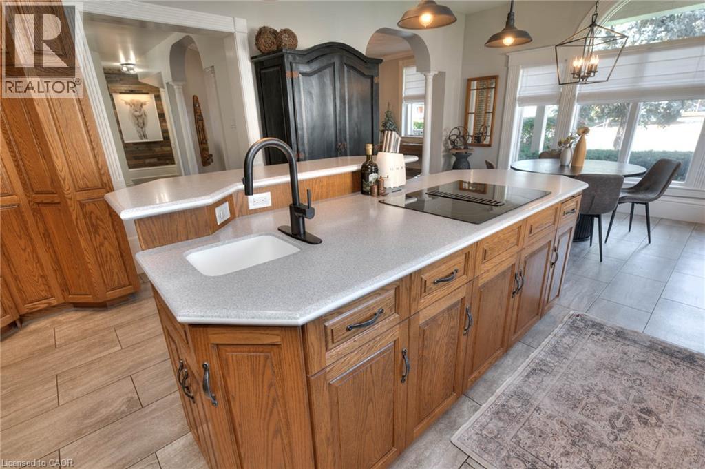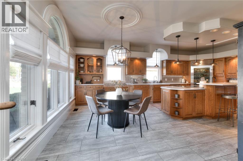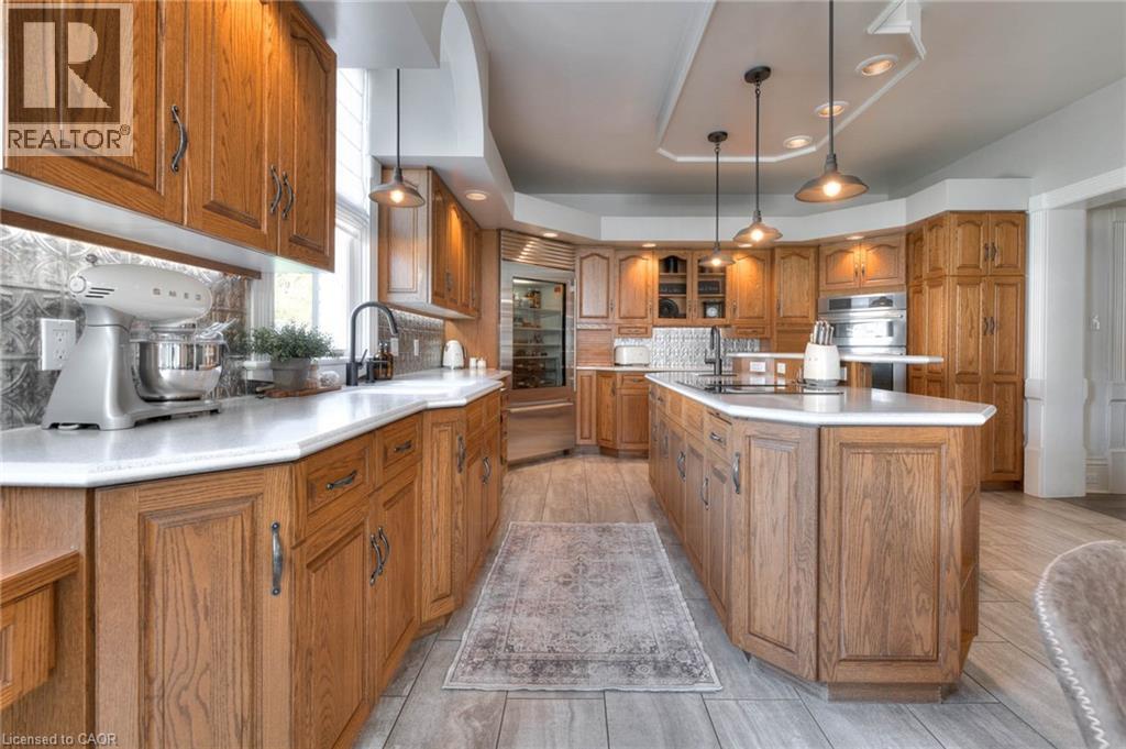 On a secluded .59 acers, this home holds a timeless allure without compromising modern luxuries. The yard is professionally landscaped with a stone patio, gas fire feature, and surrounded by newer fencing. Positioned in the heart of Atwood, 10 minutes to Listowel, one hour to Godrich beach, and 45 minutes to K-W. From the 600 Sq ft heated garage with epoxy floors you will enter the homes large mudroom/foyer. The 3500 sq ft upper levels pay homage to the architectural details found in Victorian-style homes of this caliber. From the modern farmhouse lighting, and colour selection to the crown moldings, arched windows, and doorways, every detail has been thoughtfully designed. The eat-in kitchen is timeless with oak cabinets, stainless steel appliances, and a large island. The pantry offers room for a freezer and bar fridge. From the front of the house, you can access the front living room and the office. This layout expands the main floor to include a laundry room and the family room with a gas fireplace, and a 3-piece bath. Upstairs includes 4 bedrooms and 2 baths. The primary suite is spectacular with a walkout to a private balcony, dual walk-through closets, and an ensuite featuring a standalone tub and a glass shower. The lower-level features a rec room with a hardwood staircase off the family room and 2 more storage rooms. The roofs are all less than 15 years old, furnace and AC 2015, bathrooms and addition in 2020, new gas generator for the whole house 2025 and the list just keeps going. The Atwood Lions Park offers a pool, tennis, baseball diamond, new playground, and an outdoor rink—along with beloved local traditions like the Canada Day celebration and annual Santa Claus parade. The scenic Rail Trail invites year-round biking, hiking, snowmobiling, and ATV adventures. This private escape lets you live in a dreamy small town only a minute away from the fire department and coffee shop, yet on a property that allows for peace and tranquility all year round. (id:64974)