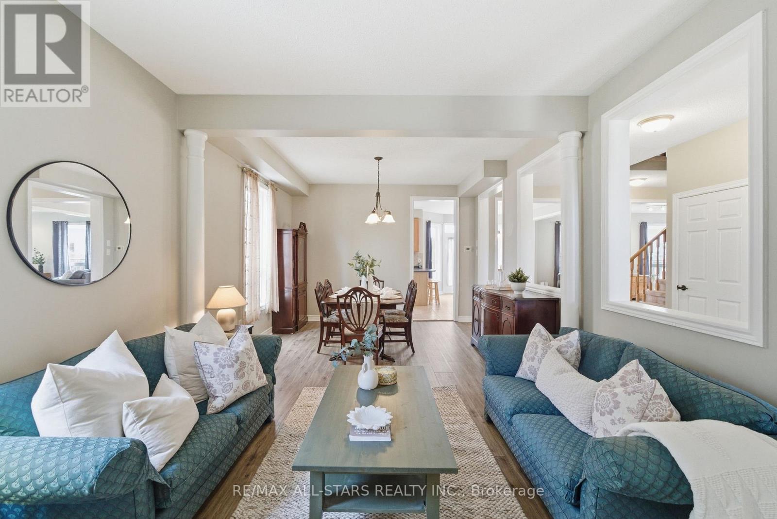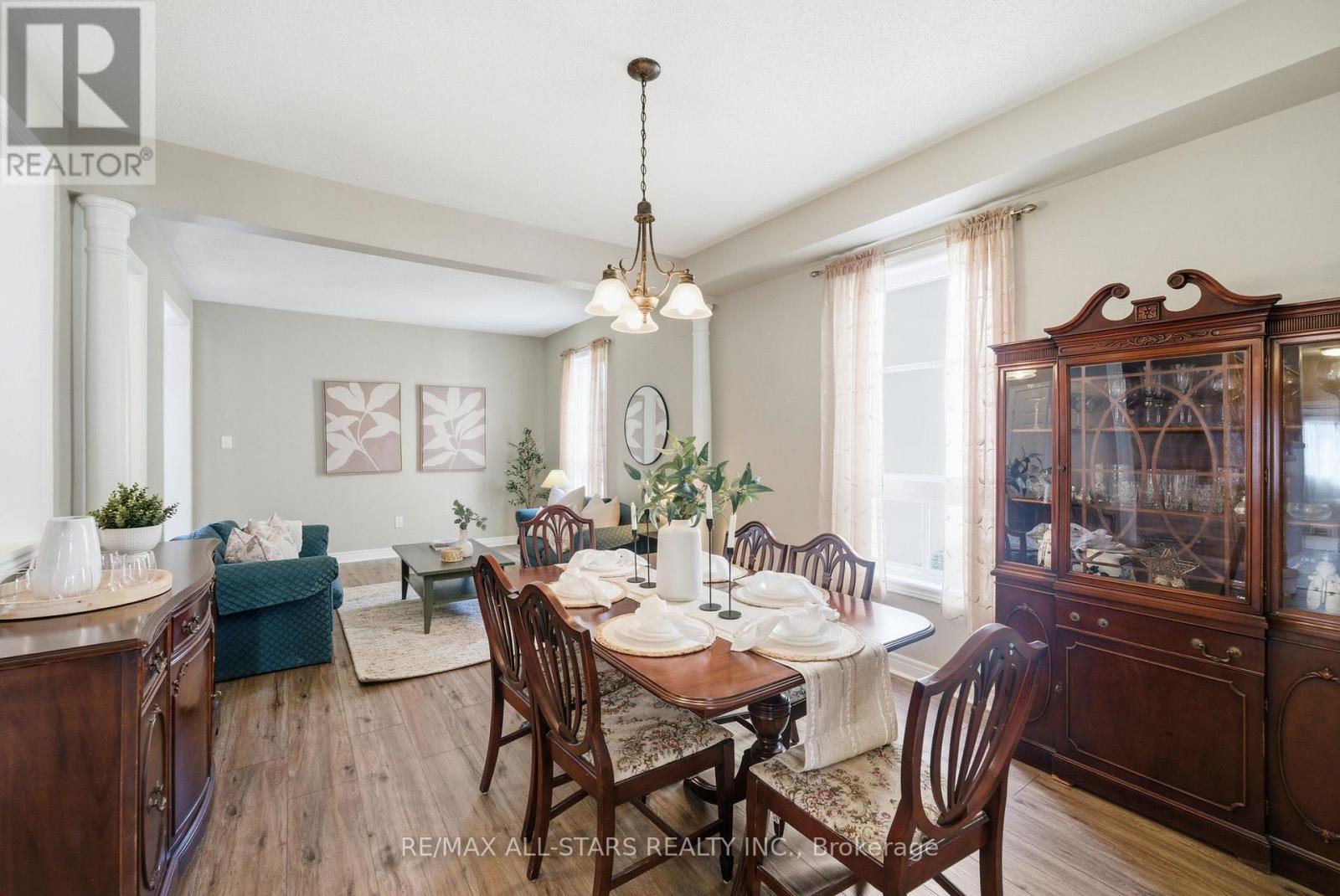 The Ravines of Cawker Creek in Port Perry! Large family home! Established family friendly neighbourhood walking distance to schools and community centre. Elegant and welcoming exterior with attached 2 car garage; front vestibule with vaulted ceiling; bright office area overlooking front yard, hardwood floors & vaulted ceiling; living room with vinyl plank flooring and open to entertaining sized dining area; eat-in kitchen with good cabinet/counter space, peninsula for stools, walkout to deck and overlooking family room with gas fireplace, vinyl plank flooring, two large windows with rear yard views. Bedrooms on second level include Primary with 4 piece ensuite with separate tub & shower; 3 additional bedrooms , family bath and nook in the hallway-great for a computer nook, or kids play area. Main floor laundry with garage access. Basement area has been beautifully finished with additional entertaining space, bedroom and 3 piece bath with glass shower, ideal for family member or overnight guests. Extra finished utility/workshop room great for extra storage; Fresh neutral decor throughout- move right in! Fully fenced rear yard; deck for barbecue and relaxation. Great location within Port Perry -walk to convenience shops, schools, medical arts building, community centre / arena and more. Note: Some exterior photos have been digitally altered for summer season. (id:64974)