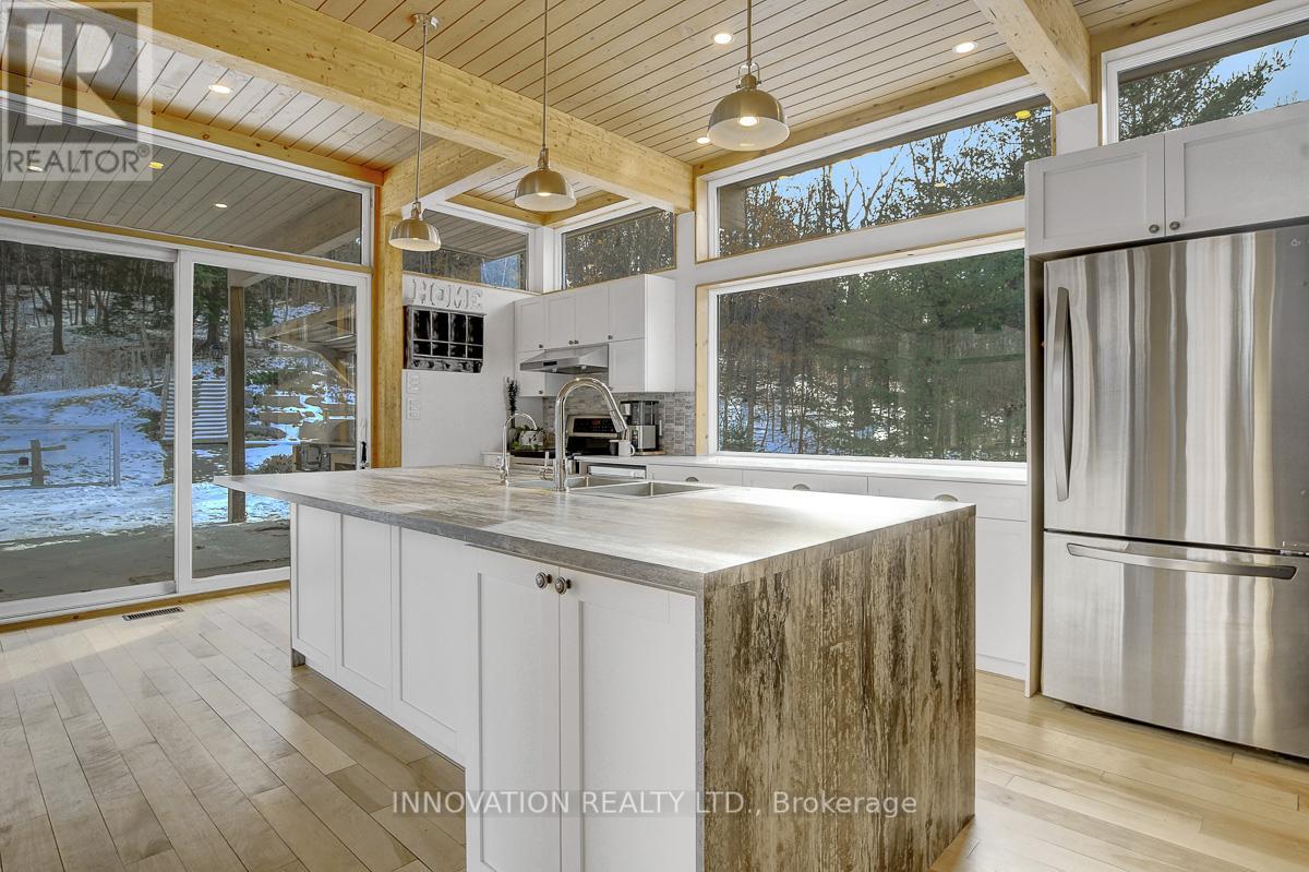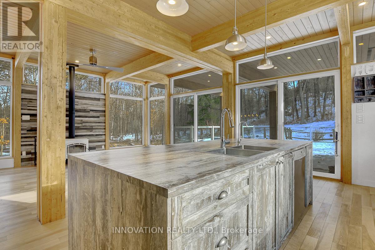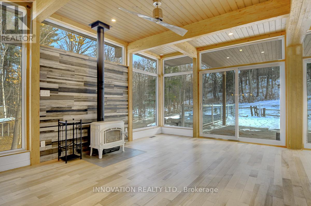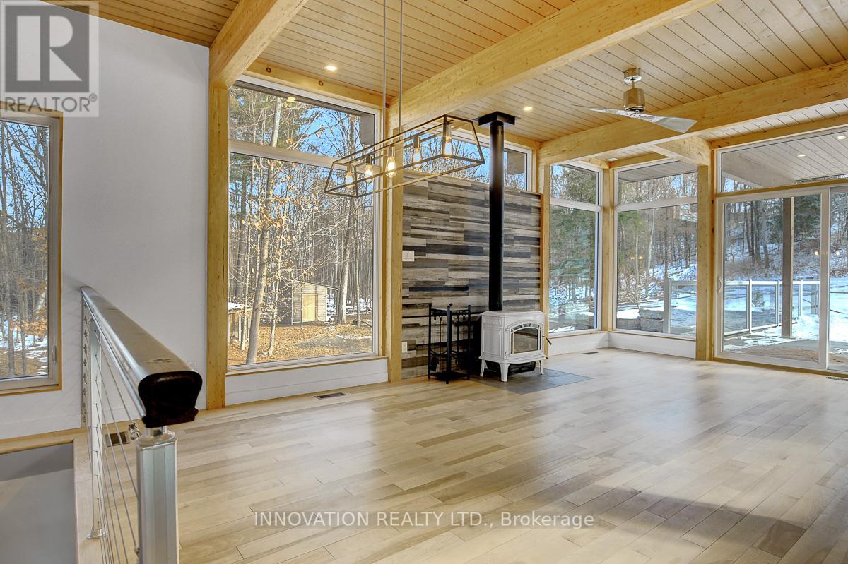 Get ready to be wowed by this breathtaking custom home, nestled on an expansive 41-acre estate featuring a lush mixed forest and your very own private pond! As you step inside, you'll be greeted by an airy and inviting atmosphere, seamlessly flowing across beautifully refinished hardwood floors. The heart of the main living area features an elegant wood stove and a captivating feature wall-perfect for cozy gatherings or calm, relaxing evenings at home. With floor-to-ceiling windows enveloping the main floor, the home invites the outdoors in and opens up to a massive patio equipped with a built-in outdoor kitchen-ideal for entertaining and enjoying al fresco dining! The fabulous master suite is your private sanctuary, complete with a spacious walk-through closet and a spa-inspired bath that beckons you to unwind and rejuvenate. Venture down to the lower level and discover an amazing recreation room with grand patio doors that lead to a lovely lower patio space. Two spacious bedrooms and a gorgeous shared bath complete this fun-filled area. You'll also find a utility room that houses the water treatment system and a wood/propane combination heating system. The ample 2-car garage is ready to accommodate your vehicles, motorized toys, or serve as a fantastic workshop. Outside, the property boasts a variety of outbuildings in different sizes, perfect for storage and countless hobby-farming opportunities. Meander along the winding paths that explore the property, and make the most of the serene surroundings with delightful walking, skiing, and snowshoeing adventures by the pond. Conveniently located just 15 minutes from Kanata and Almonte, this home combines the tranquillity of rural living with easy access to gourmet restaurants, charming shops, and endless recreational activities. Don't let this extraordinary slice of paradise slip away-where luxury and nature live in perfect harmony! (id:64974)