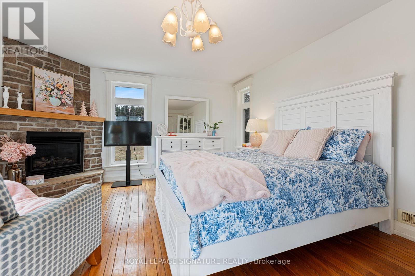 Lovingly maintained circa 1907, this charming 3-bedroom, 2-bathroom home is perfectly nestled among towering trees and set well back from the road on a picturesque 1.1-acre lot, offering exceptional privacy and timeless appeal. The property showcases impressive curb appeal with a brick and complementary siding exterior, tasteful landscaping, and a custom deck overlooking tranquil country views. A heated detached garage, currently used as a workshop, features a versatile upper loft space with endless potential. Inside, the beautifully updated layout begins with a welcoming foyer and flows into a warm, inviting kitchen with pine cabinetry, a spacious living room highlighted by hardwood floors, and a separate dining area ideal for entertaining. The refreshed main bathroom and sought-after main floor bedroom with a cozy gas fireplace offer flexibility, including potential for an in-law suite. Upstairs, you'll find two generously sized bedrooms, including a primary retreat with walk-in closet and dressing area, a4-piece bathroom, and the convenience of bedroom-level laundry. The utility-style basement provides ample storage and houses the home's mechanicals. Notable updates include a steel roof on both the home and garage, septic (2012), cistern (2013), foundation wrap (2013), and spray foam insulation in the basement (2013), along with modern décor, fixtures, and lighting throughout. Ideally located just minutes to amenities in Port Dover, Jarvis, and Simcoe, with easy access to Highway 403, this property is perfect for a variety of lifestyles-offering the peace, privacy, and beauty of country living without sacrificing convenience. (id:64974)