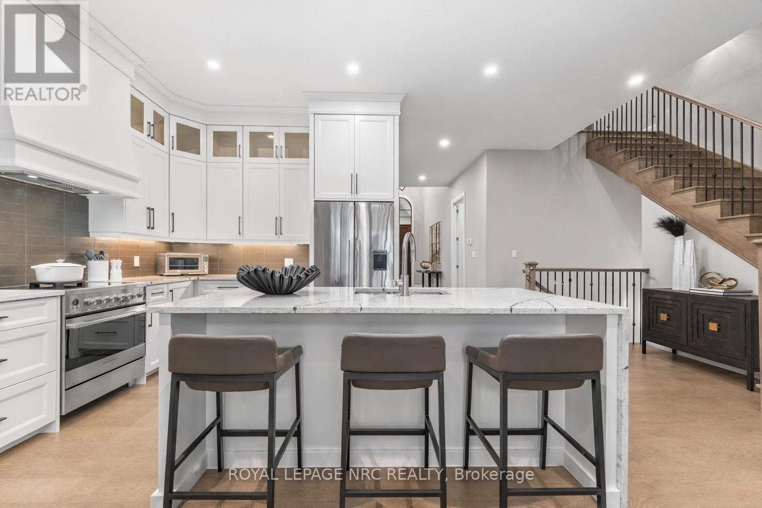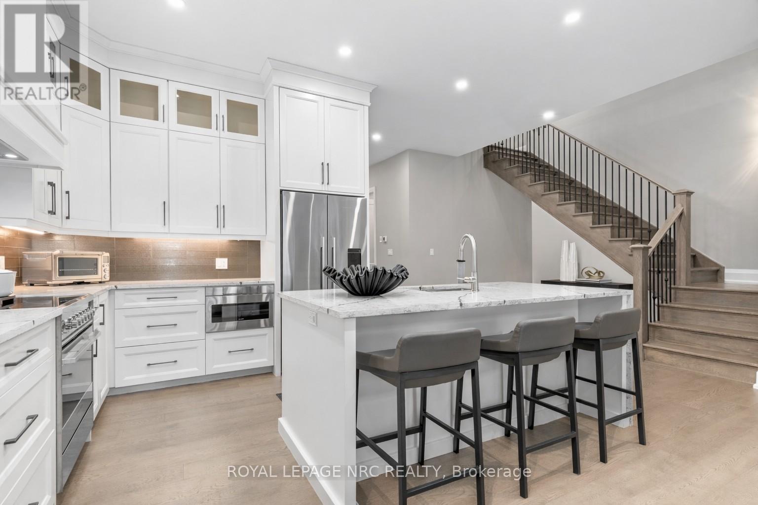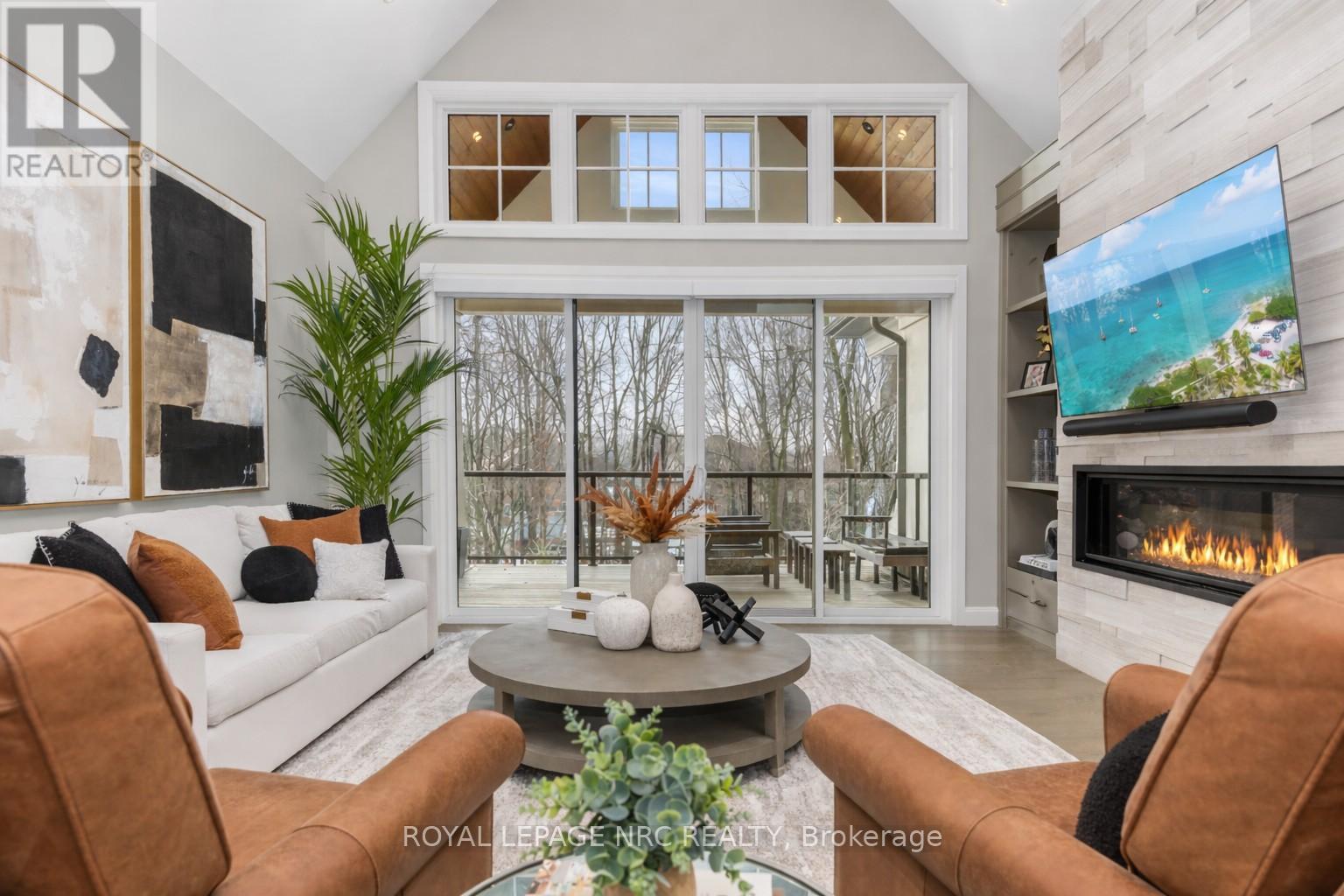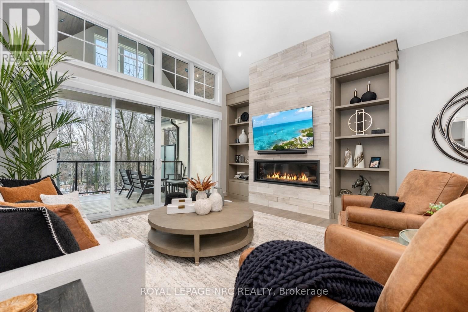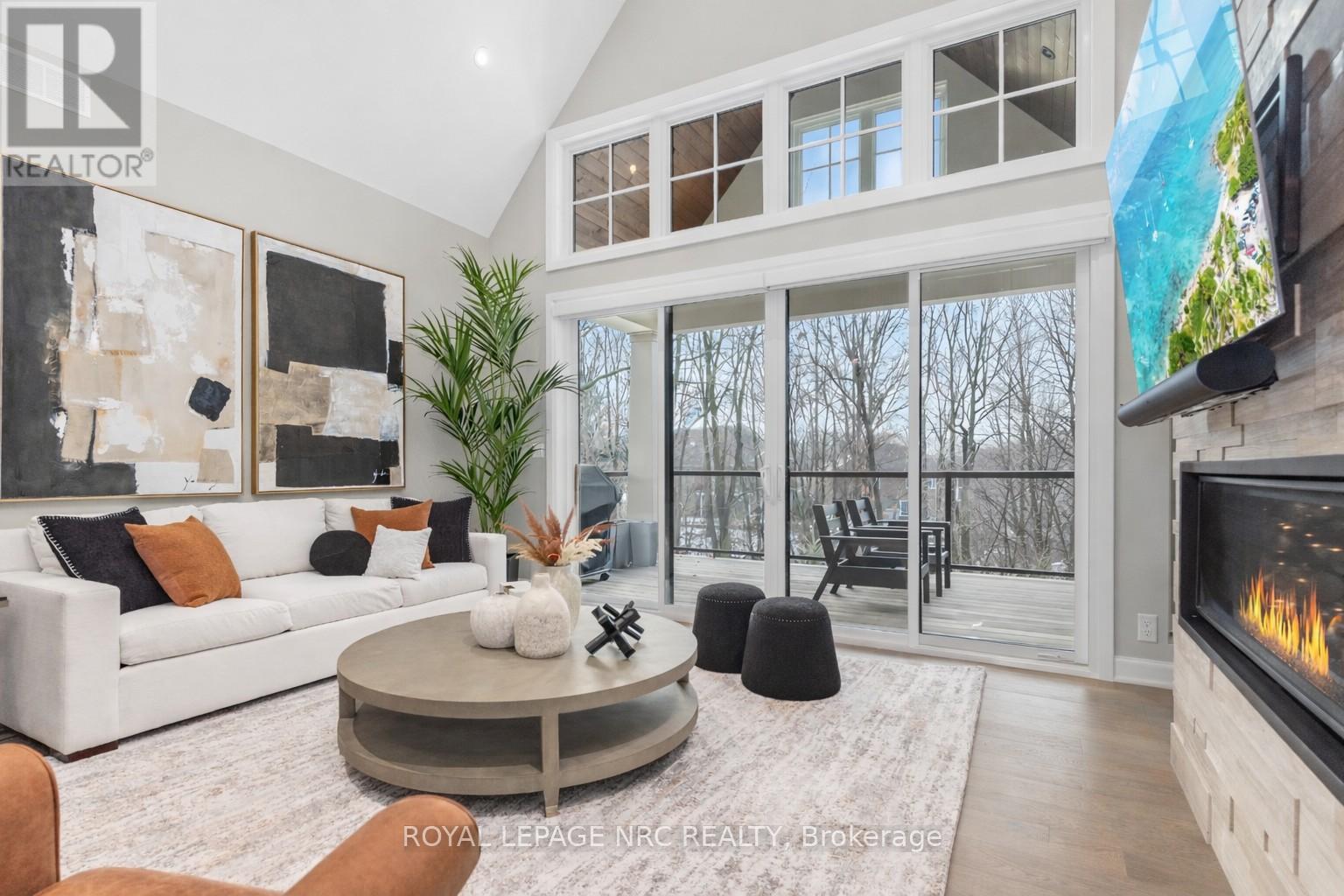 Ohh La La! Welcome to Fonthill's most exclusive enclave of luxury townhomes 'Canboro Hills' - where elegance, privacy and tranquility meet. Built by the acclaimed DeHaan Homes, this exceptional Tintern Model offers 3 bedrooms, 3.5 baths and 2,774 (+/-) sq. ft. of refined above-grade living space, plus a fully finished walk-out lower level, all enhanced by upscale finishes throughout. Perfectly positioned at the quiet rear of the community, this residence enjoys serene ravine views and remarkable privacy, beautifully blending luxury living with nature. A striking entrance welcomes you defined by soaring 10-ft ceilings, gleaming porcelain tile, engineered hardwood, designer pot lighting, elegant 7.25" baseboards, 8-ft doors and premium fixtures, creating a warm yet sophisticated atmosphere. The dining room impresses with a dramatic 15-ft vaulted ceiling, while the chef-inspired custom kitchen showcases Fisher & Paykel appliances, induction range, stunning quartz countertops and a generous walk-in pantry. The spectacular Great Room features an impressive 18-ft vaulted ceiling, anchored by a sleek 60" linear gas fireplace with custom built-ins, creating a stunning focal point.The primary suite is a peaceful sanctuary with a spa-inspired 5-piece ensuite. A stylish powder room with full linen closet and a spacious mudroom/laundry with built-in bench complete the main level. Ascend the elegant white oak staircase to the upper loft where guests enjoy a generous bedroom with walk-in closet and private 3-piece ensuite.The finished walk-out lower level expands the living space with a large recreation room with electric fireplace, an additional bedroom with walk-in closet and 3-piece bath. Outdoor living is equally impressive with peaceful ravine views from the covered balcony with composite decking, glass privacy wall and gas line, while the lower concrete patio offers another private outdoor retreat. Luxury, privacy and timeless design refined Fonthill living at its fines (id:64974)