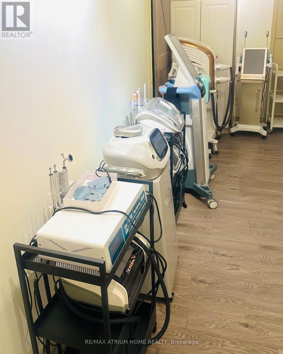 Exceptional Opportunity to this Turnkey, Profitable, Scalable, Staffed, and Well-Reviewed Business with Consistent Revenue!!! Located in the High-Traffic Plaza (First Markham Place) Anchored with Home Depot, Winners, Supermarkets and Tons of Restaurants. Professional Finished with High-End decor 3 Single & 1 Double Facial Treatment/Massage Rooms plus a Welcoming Foyer, Reception Area and Manicures Spaces. Services Include High-Demand Offerings Such as Tons of Different Facial Treatments, Waxing, Laser Hair Removal, Manicures, Pedicures and Eyeliner/Eyebrow Tattoo, All with Proven Client Retention. Excellent Visibility, Ample Parking, and a Loyal & Abundant Customer Base. !!! (id:64974)