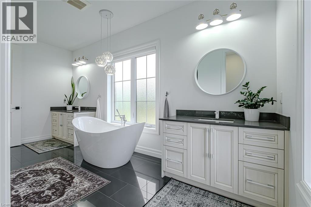 Welcome to this stunning custom-built masterpiece, where luxury meets thoughtful design in every detail! This exceptional 6 bedroom (4+2) , 5 bathroom (4+1) home offers roughly 5,471 sq. ft. of elegant and functional living space. Nestled in an Executive new subdivision just 10 minutes from Brantford, this residence features a rare 4-car garage and a spacious 6-car driveway perfect for car enthusiasts or large families. From the moment you arrive, you're greeted by grand arched double doors that open to a warm and inviting foyer. The main living area boasts 11-foot coffered ceilings, a cozy fireplace, custom built-ins, and expansive windows that flood the space with natural light. Designed for entertaining, the open-concept layout flows seamlessly into the gourmet kitchen, complete with high-end KitchenAid appliances, quartz countertops, a gas stove, walk-in pantry, and wine fridge. Three bedrooms on the main level feature private ensuites and walk-in closets, including a luxurious primary suite with dual walk-in closets, spa-like ensuite with a soaking tub, and a private walk-out to the backyard. The fully finished basement offers 9-foot ceilings, oversized windows, a kitchen, ample storage, and a separate entrance connecting to the oversized garage ideal for an in-law suite or rental potential. Additional features include a durable metal roof, premium finishes throughout, and meticulous care from top to bottom. Builders own home so expenses have been spared. Don't miss this rare opportunity to own in one of the area's most desirable communities. Book your private showing today! (id:64974)