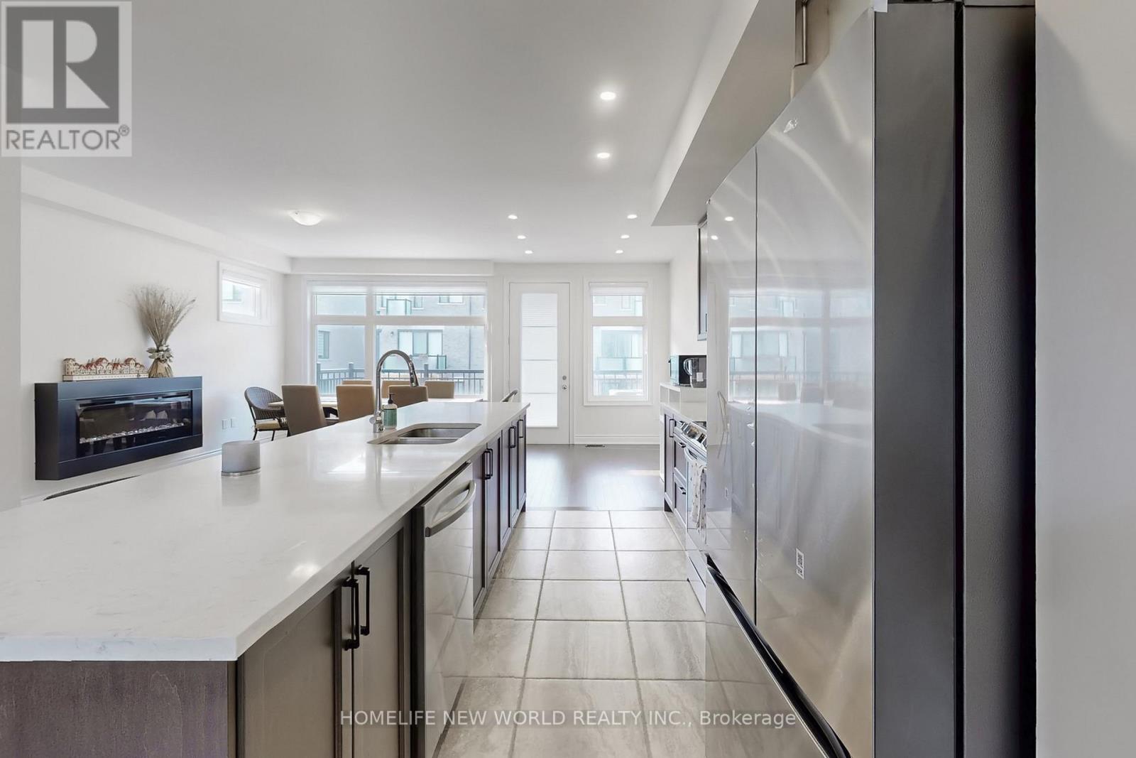 Welcome to this 3 YEAR NEW Extra Large Executive Double Garage Freehold Townhome In Shining Hill Neighborhood At The Border Of Aurora And Newmarket, where luxury meets comfort in this bright, modern, and spacious END Unit. Boasting over 2681 Sqft. This Double Garage gem is conveniently located within walking distance from Yonge St. Step inside to discover an inviting open concept living, dining, and kitchen area adorned with stainless steel appliances, including a double door fridge and upgraded hood fan. The large eat-in gourmet kitchen features a generous center island and pantry, offering ample storage space for your culinary essentials.9 Feet Flat Ceilings On Ground, Main And Upper Floors, Huge Windows With Lots Of Natural Light, Escape to tranquility on the terrace, perfect for relaxing or entertaining guests. Upgraded hardwood flooring, Kitchen Back splash and all Bathroom Extra quiet Fans And GFCI Outlets. Plus updated 200 AMPs of hydro Breaker. Relax in the cozy ambiance of the electric fireplace in the family room, while large windows frame picturesque ravine views, bringing nature indoors. With a spacious 2-car garage featuring motorized doors and a long driveway, parking is never an issue. Don't miss the opportunity to make this beautiful, clean, modern home yours. (id:64974)