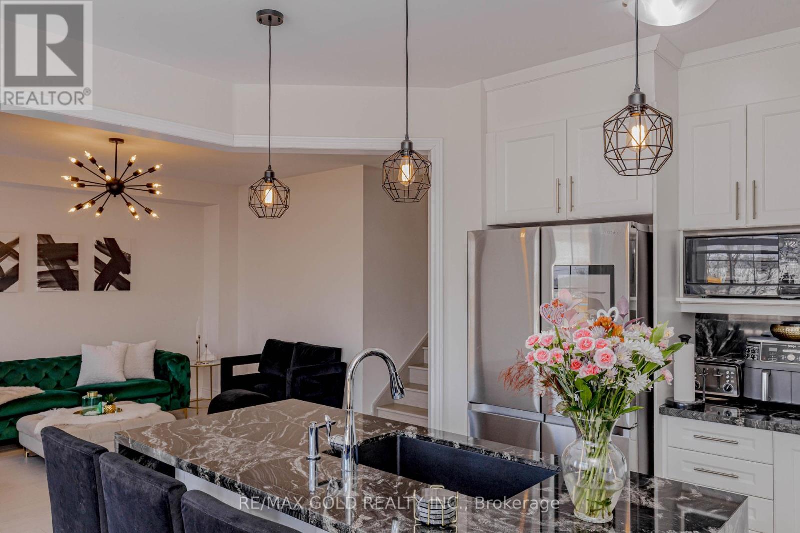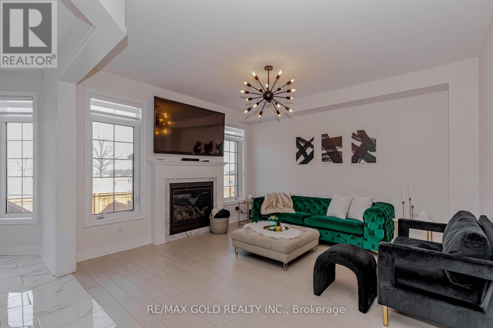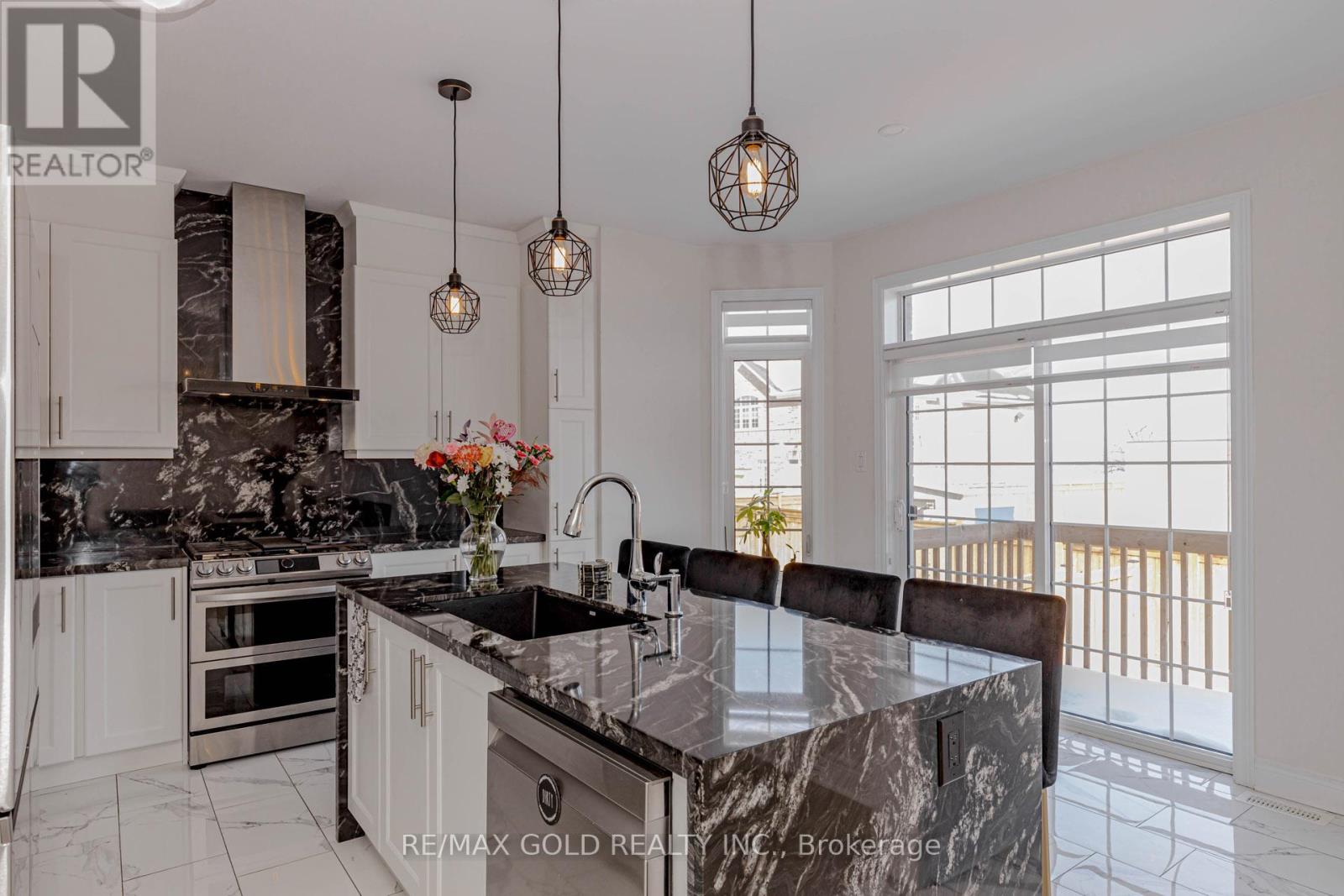Luxury living awaits in this exceptional Georgetown home featuring a striking stone and brick exterior and an impressive double-door entry. Less than five years old, this beautifully upgraded residence offers approximately 2,250 sq. ft. of thoughtfully designed living space (as per builder floor plan), combining modern style with everyday comfort. The chef-inspired kitchen is the heart of the home, showcasing granite countertops and matching backsplash, a waterfall island, stainless steel appliances, and ample cabinetry. The kitchen flows seamlessly into a bright breakfast area, ideal for family gatherings and entertaining. Upgraded hardwood flooring enhances the living and family rooms, which are centered around a cozy gas fireplace. Nine-foot ceilings on the main floor create a bright, open atmosphere, while convenient main-floor laundry adds functionality. Upstairs, the primary suite offers a private retreat with his-and-hers walk-in closets and a spa-like 4-piece ensuite featuring a soaker tub, glass shower, and double sinks. Each additional bedroom includes its own walk-in closet and ensuite bathroom. With over $100,000 in builder upgrades, a basement with large lookout windows, no rear neighbours, and a prime location close to schools, parks, shopping, and amenities, this home offers luxury, privacy, and exceptional value. (id:64974)