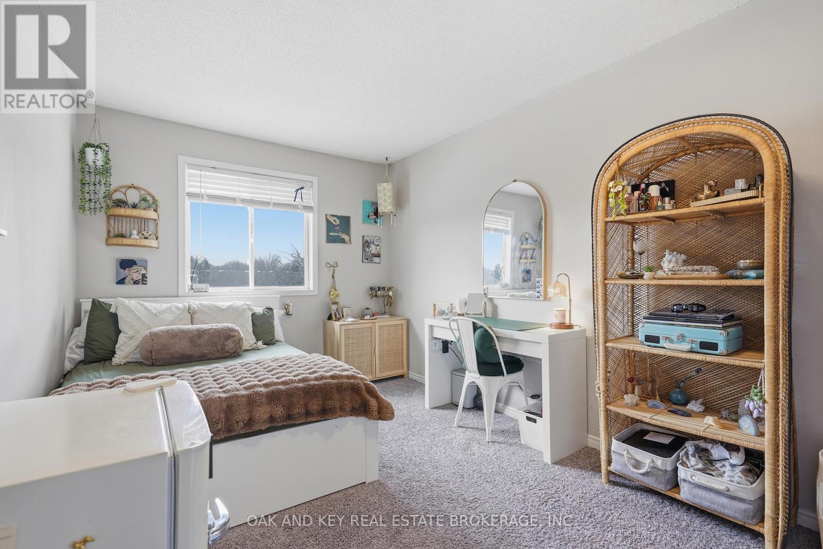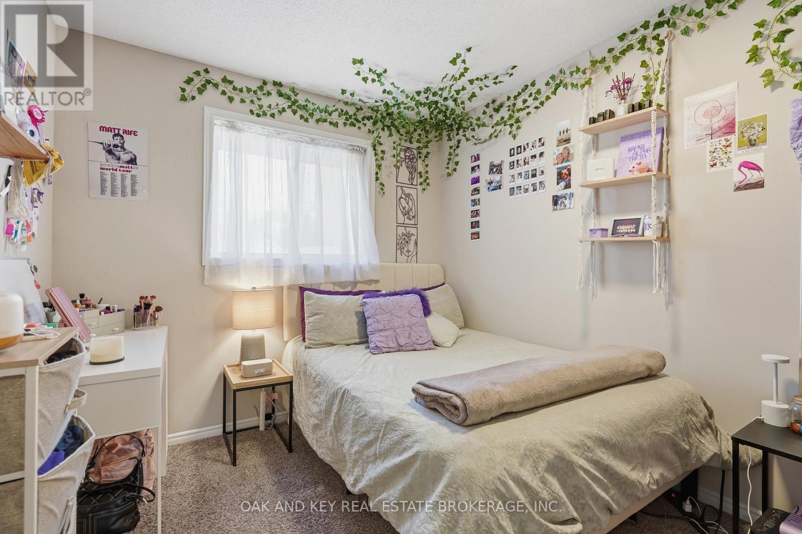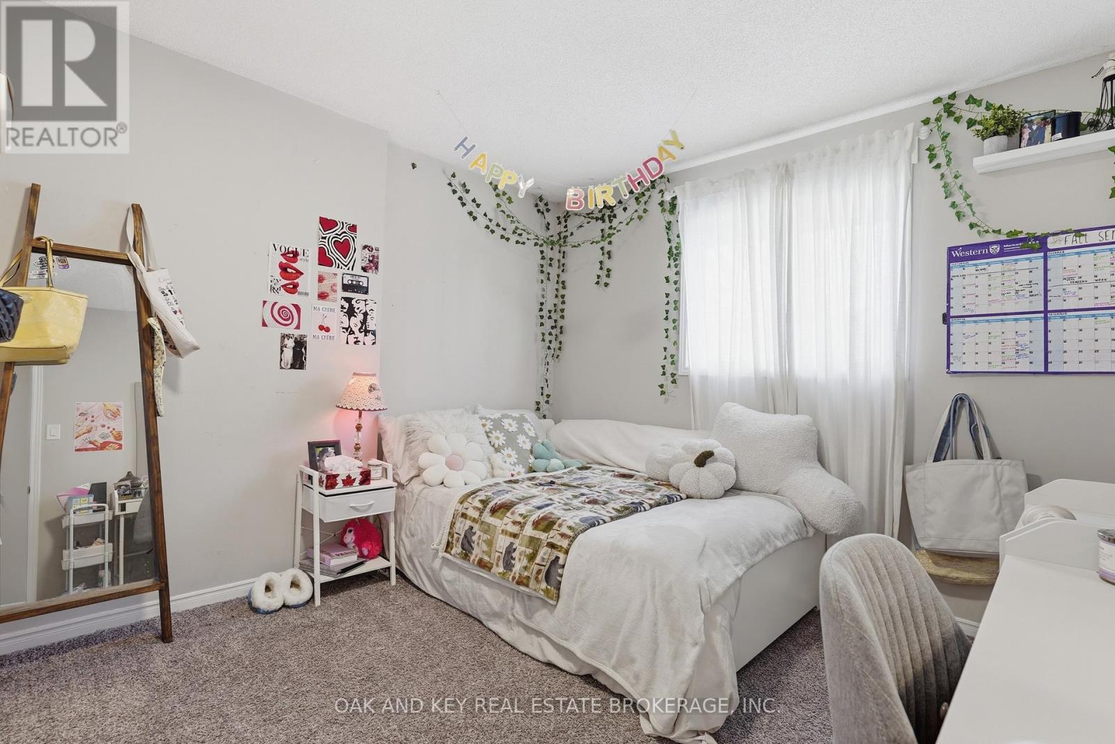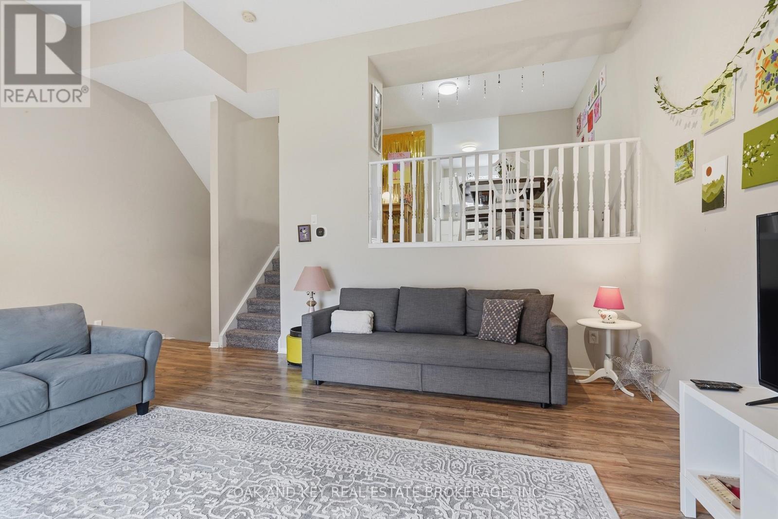 NO CONDO FEES. END-UNIT FREEHOLD WITH 5 BEDROOMS AND FLEXIBLE INCOME POTENTIAL NEAR WESTERN. Tucked into a cul-de-sac setting, this end-unit freehold townhouse offers a great mix of space, privacy, and flexibility - just minutes from Western University, transit, and everyday amenities. With no neighbours directly behind and added separation along one side, it feels more private than most townhomes. A sundeck, private driveway, and attached garage complete the exterior.Inside, the home is well maintained and thoughtfully laid out across multiple levels, offering both open living space and separation when needed. The main entry features a spacious foyer with laundry and direct access to the garage - ideal for everyday function and shared living. The second level is anchored by a large, open family room with soaring two-storey ceilings, creating a bright, airy feel rarely found in townhomes.The third level overlooks this space and features the kitchen, dining area, and powder room - a natural gathering space for everyday living or shared occupancy. The upper level offers four bedrooms and two full bathrooms, including a Jack & Jill shared between two rooms, providing a practical layout for families, students, or multi-tenant use.The lower level includes a fifth bedroom, den, and its own bathroom - ideal for a private suite, owner-occupant option, or additional income potential.Ideally situated just steps from transit with direct routes to Western University and downtown, and close to shopping, restaurants, Costco, parks, and the scenic Medway Valley trails, this high-demand location offers consistent rental appeal and long-term potential. Rooms currently rented at $880/month + utilities. Vacant possession available May 1 offering a rare opportunity to set market rents or make the property your own. (id:64974)