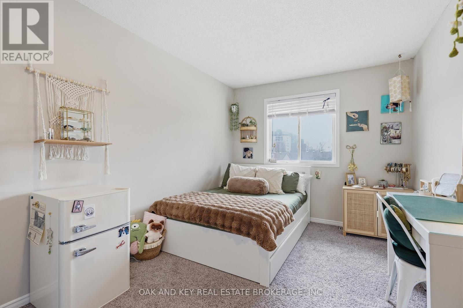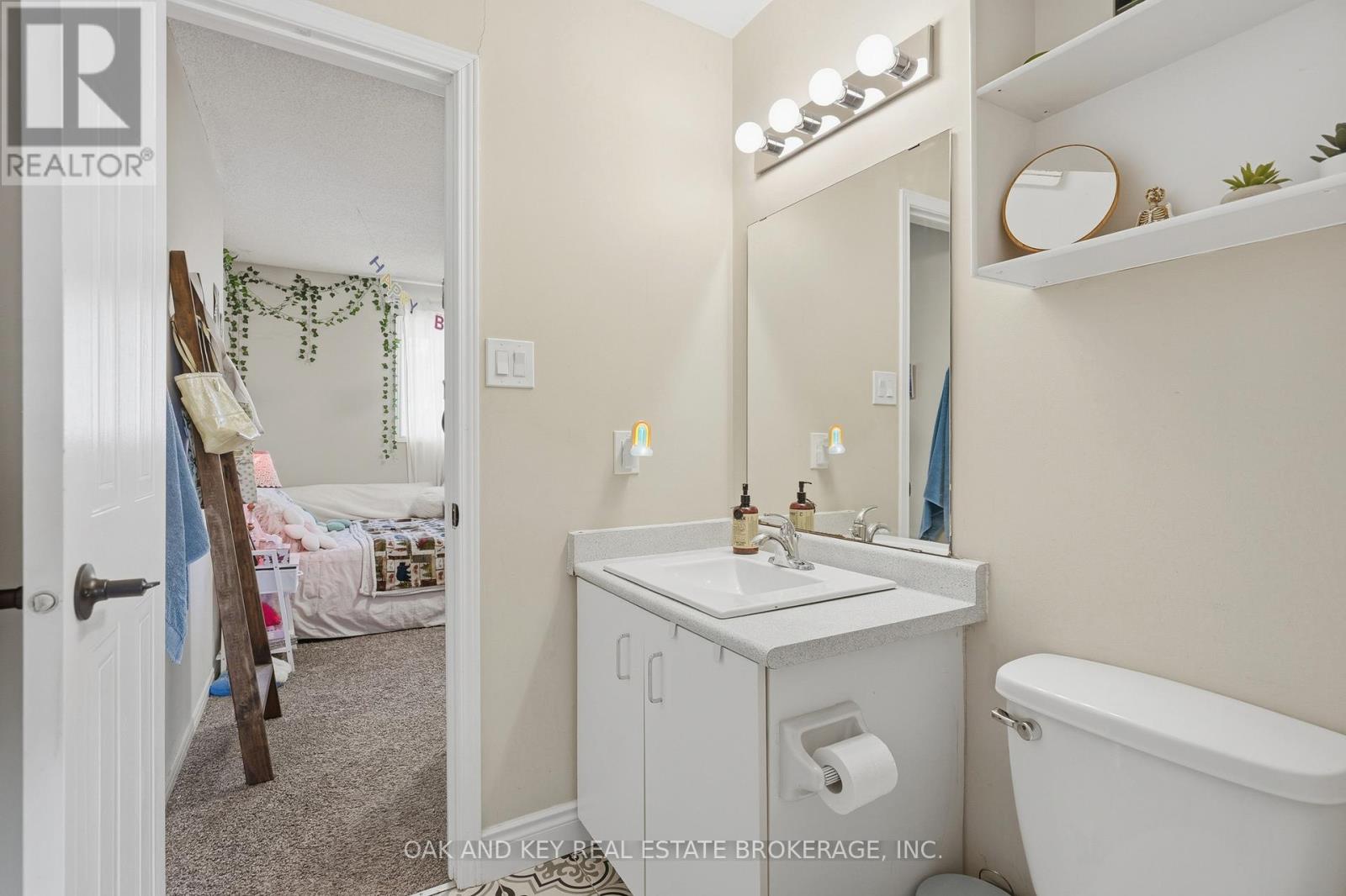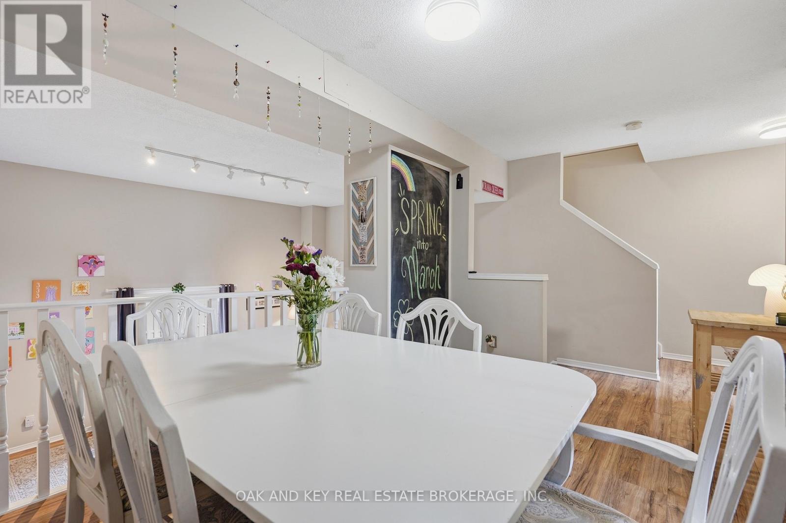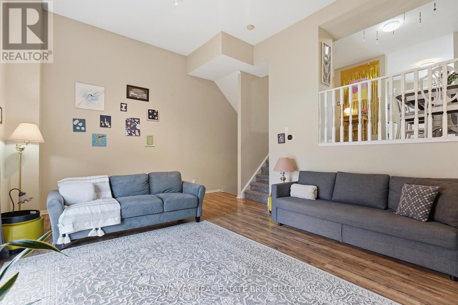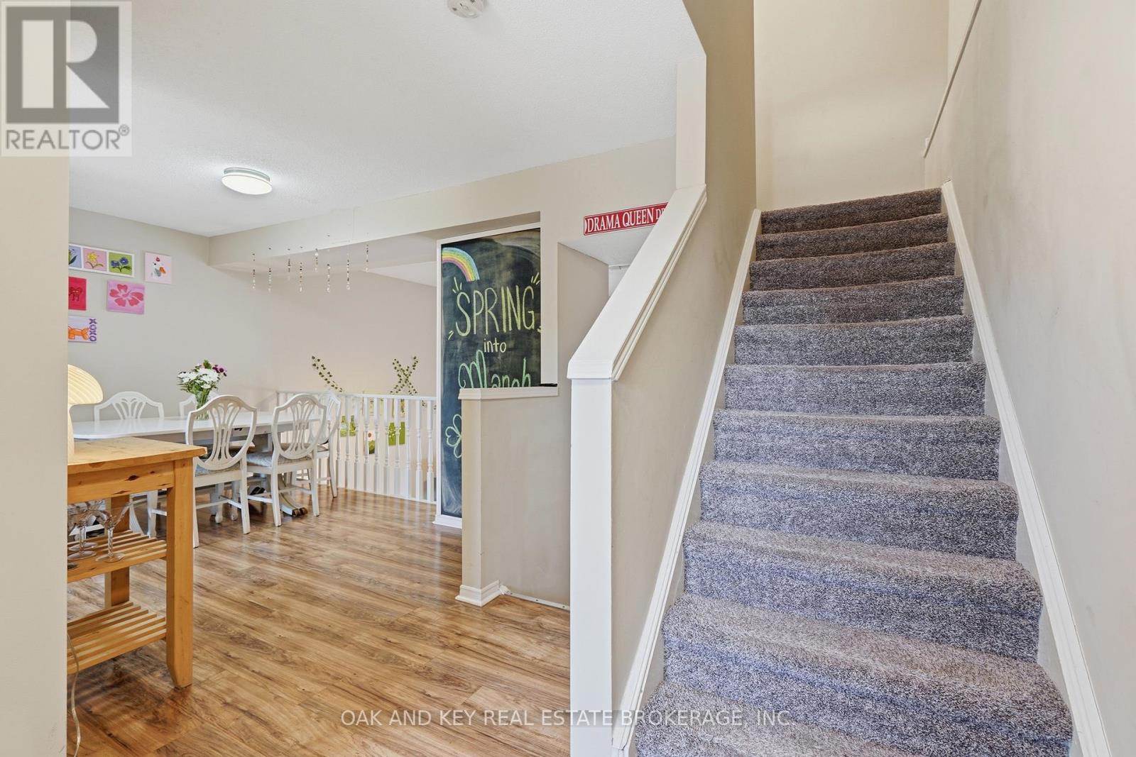 NO CONDO FEES. END-UNIT FREEHOLD WITH 5 BEDROOMS AND FLEXIBLE INCOME POTENTIAL NEAR WESTERN. Tucked into a cul-de-sac setting, this end-unit freehold townhouse offers a great mix of space, privacy, and flexibility - just minutes from Western University, transit, and everyday amenities. With no neighbours directly behind and added separation along one side, it feels more private than most townhomes. A sundeck, private driveway, and attached garage complete the exterior.Inside, the home is well maintained and thoughtfully laid out across multiple levels, offering both open living space and separation when needed. The main entry features a spacious foyer with laundry and direct access to the garage - ideal for everyday function and shared living. The second level is anchored by a large, open family room with soaring two-storey ceilings, creating a bright, airy feel rarely found in townhomes.The third level overlooks this space and features the kitchen, dining area, and powder room - a natural gathering space for everyday living or shared occupancy. The upper level offers four bedrooms and two full bathrooms, including a Jack & Jill shared between two rooms, providing a practical layout for families, students, or multi-tenant use.The lower level includes a fifth bedroom, den, and its own bathroom - ideal for a private suite, owner-occupant option, or additional income potential.Ideally situated just steps from transit with direct routes to Western University and downtown, and close to shopping, restaurants, Costco, parks, and the scenic Medway Valley trails, this high-demand location offers consistent rental appeal and long-term potential. Rooms currently rented at $880/month + utilities. Vacant possession available May 1 offering a rare opportunity to set market rents or make the property your own. (id:64974)
