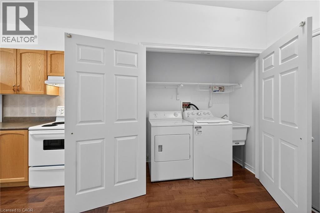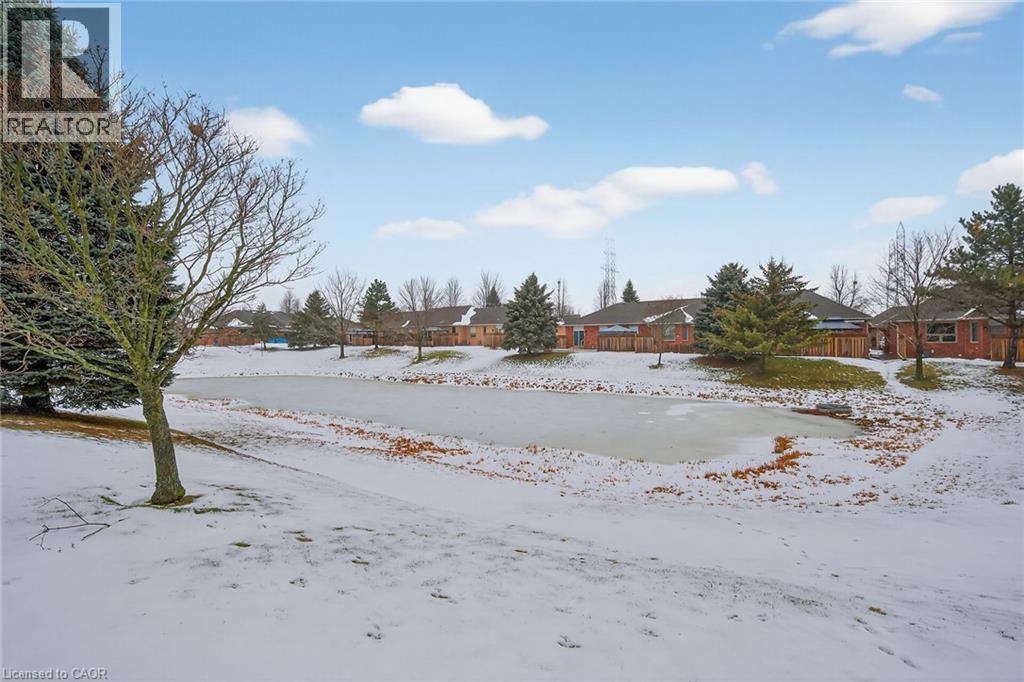 Clean, move-in ready, end unit bungalow in Twenty Place. Welcome to one of Southern Ontario's most sought-after adult lifestyle communities. Enjoy the many great amenities the spectacular residents' clubhouse has to offer. There is indoor pool, sauna, whirlpool, fully equipped gym, large party room with a kitchen, games and craft rooms, an inviting library, tennis/pickle ball court, putting green, shuffleboard and more! You'll enjoy low maintenance living in this friendly, active community. The covered front porch welcomes you in, where you'll find a spacious entry, 9 foot main floor ceilings, with 10 foot coffered ceiling in the good-sized, bright living/dining room. Appliances are included in the kitchen, with hardwood floors, ample cupboard space and a lovely bay window and patio door in the dinette leading to the patio at rear. The backyard is very private and there is a pond behind. The laundry closet is handy from the kitchen and has washer and dryer included. There is a convenient coat closet here, as well as inside entry from the garage. A nice bay window and double closets are featured in the good-sized bedroom, where there is also an ensuite privilege bathroom. The 4 piece bathroom is also accessible from the hallway. The large unfinished basement is waiting for your personal finishing. Lovingly maintained by the original owner of 25 years, with the roof, windows, furnace and air conditioning unit updated. With the large windows, and west and east exposures, you'll see why this floor plan is called The Sunlight. Please note some photos are virtually staged. (id:64974)