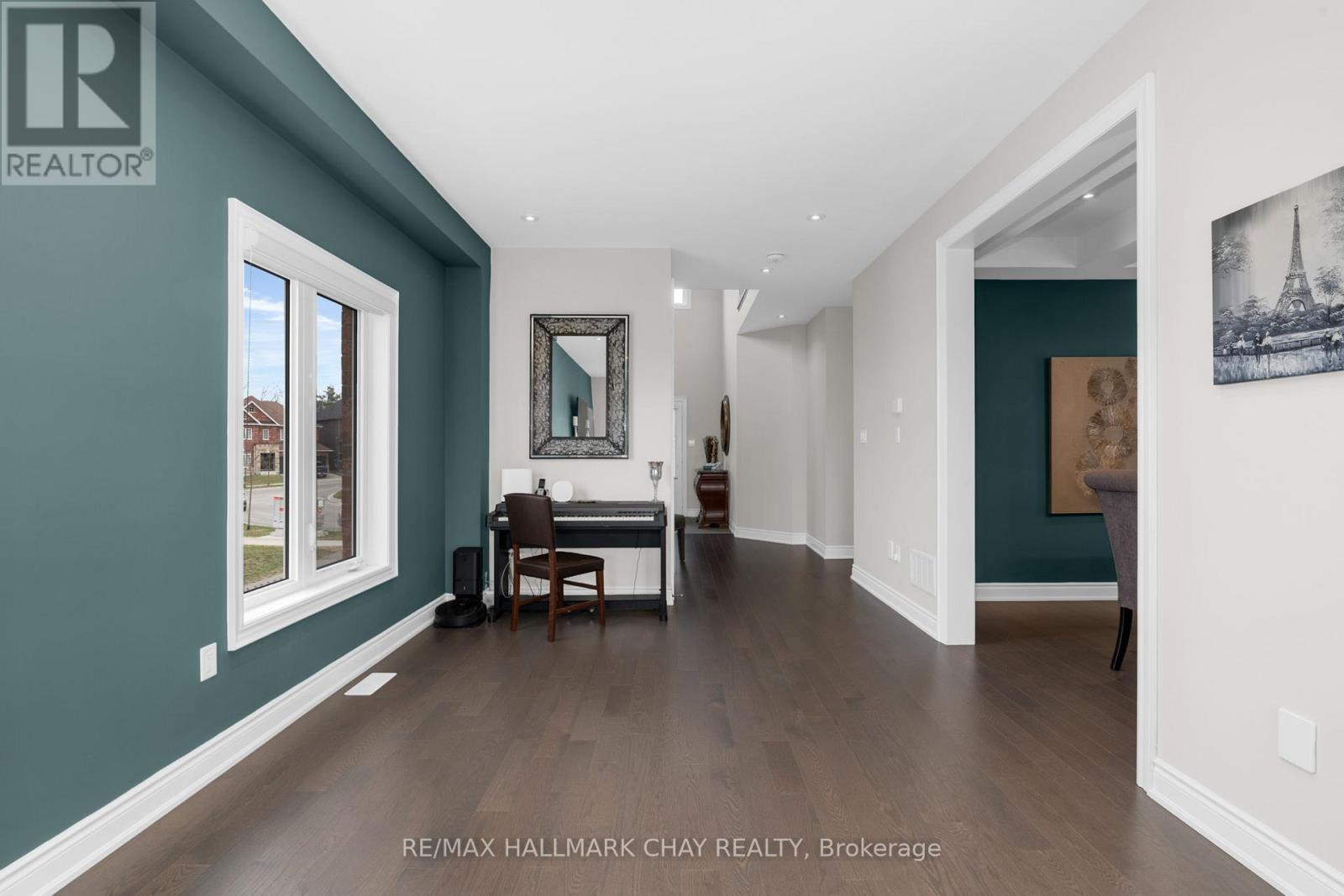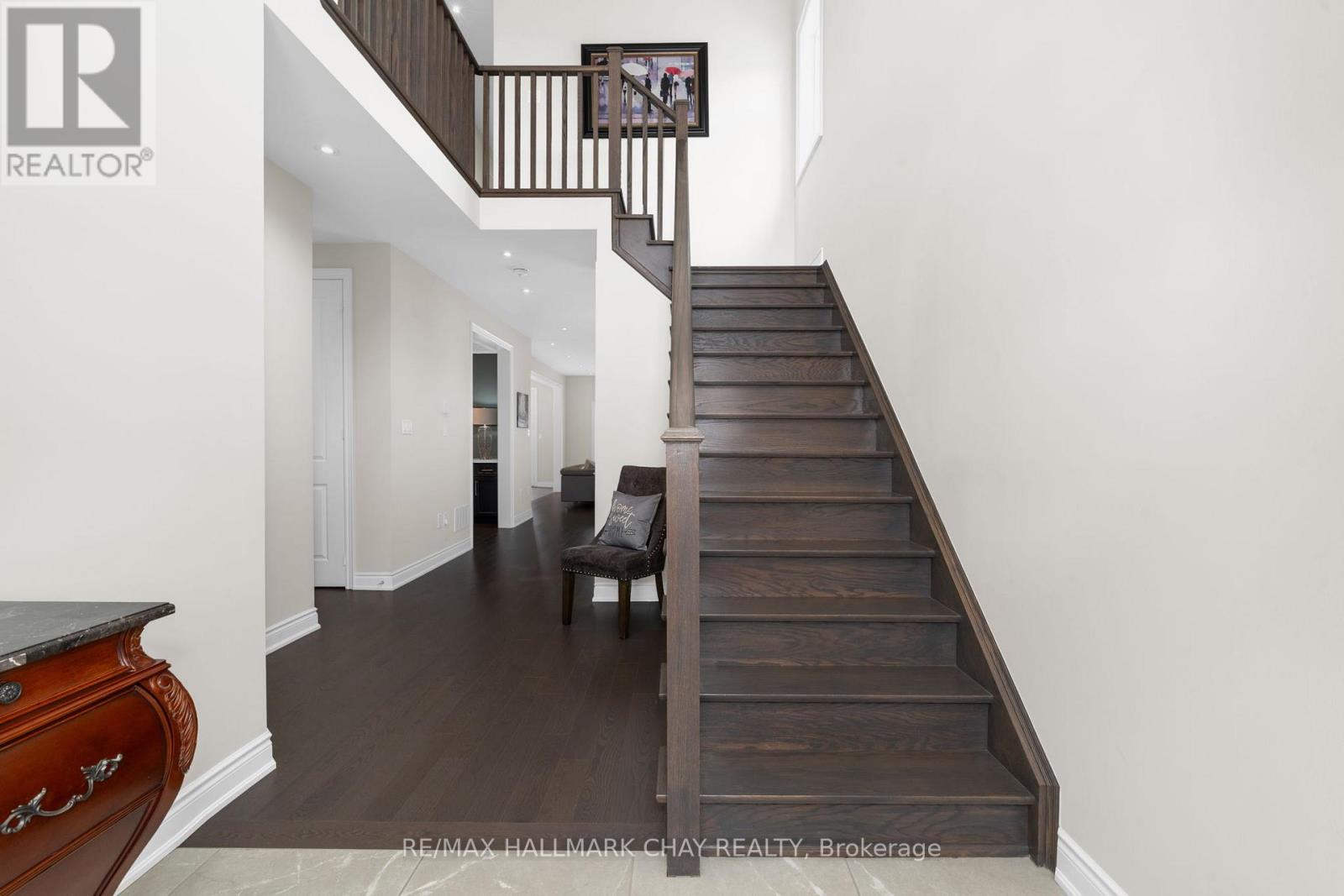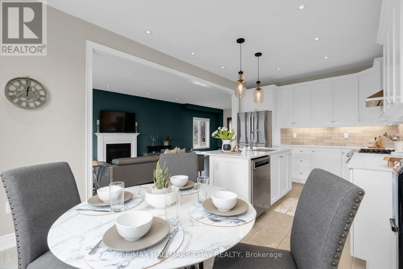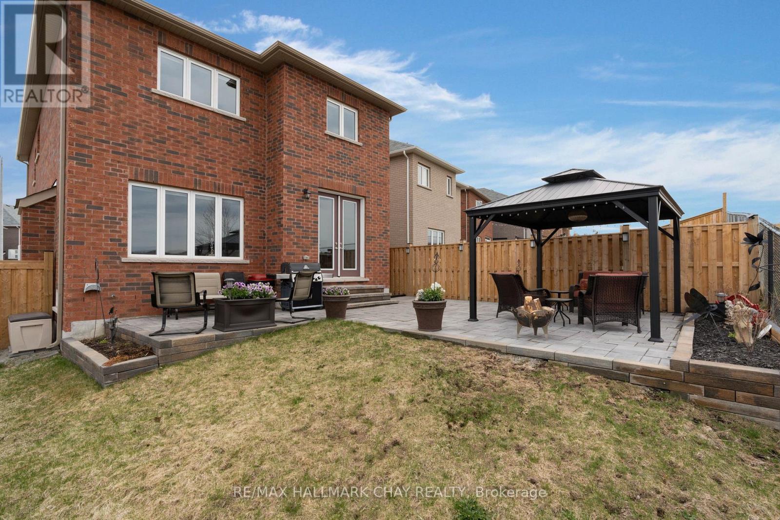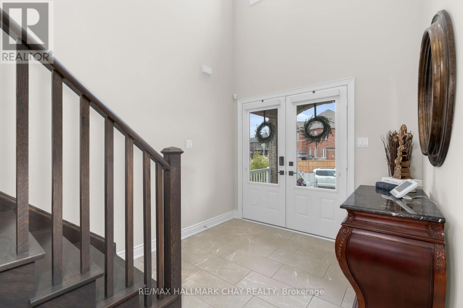 WELCOME to 18 Cypress Point Street located within a small enclave of homes in one of Barrie's newer communities - Pineview Greens Estates. This well-appointed family home offers stylish design, many upgrades, generous living space. Situated in a family centric neighbourhood, siding onto a park and open space, having direct neighbours on only one side - provides an extra level of privacy. With over 2,400 sq.ft., this two story detached 3-bedroom Royal Park home is very well appointed with high-end design and functional detail at every turn. Welcoming front entrance via the covered front porch leads you into a grand foyer with 18' ceilings, 2pc guest bath, main floor laundry room, direct inside access to double garage. Step inside to find the stylish kitchen ready to delight the family's Chef - tasteful white cabinetry, under mount lighting, centre island w/sink, stunning backsplash, s/s range hood, quartz countertops, s/s appliances, plenty of storage. This functional layout flows seamlessly into the convenient eating area, then extends your living space outdoors to your private fenced rear yard via upgraded patio doors. 9' ceilings, oversized window package completely bathe this space with the warmth of natural light. Easy maintenance tile and hardwood flooring throughout. Open concept floor plan - kitchen - living room - dining room + incredible banquette with beverage centre - is perfect for entertaining. Custom coffered ceilings. Living room flows to the formal dining space for family time, special meals with guests. Beautiful oak staircase leads to the private level with large bedrooms. Primary with a sitting area, massive closet and oversized 5pc spa-like ensuite with glass shower, soaker tub. Two additional bedrooms with Jack & Jill main bath. This home offers plenty of functional storage. Full, unfinished basement for your own plans and design (cantina, R/I bath). Step outdoors to appreciate the beautiful unistone patio in the rear fully fenced yard. (id:64974)