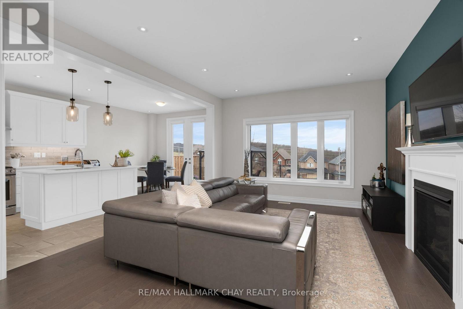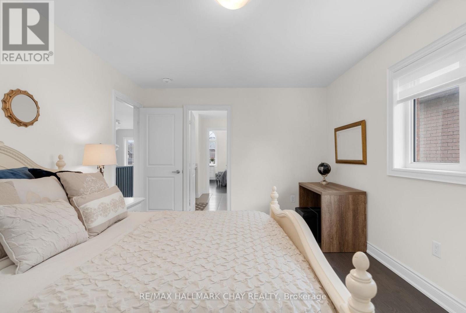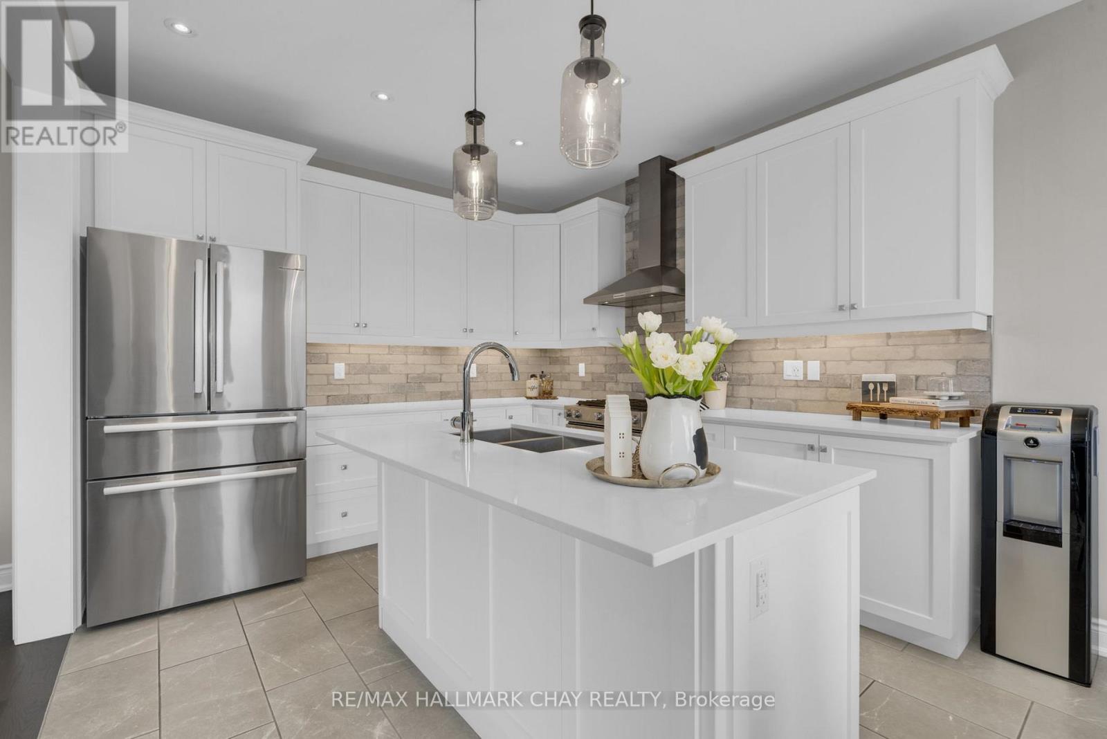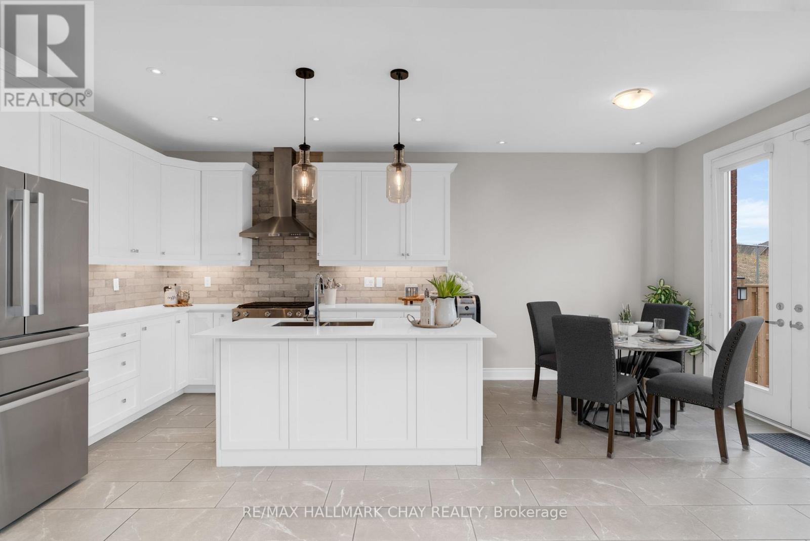 WELCOME to 18 Cypress Point Street located within a small enclave of homes in one of Barrie's newer communities - Pineview Greens Estates. This well-appointed family home offers stylish design, many upgrades, generous living space. Situated in a family centric neighbourhood, siding onto a park and open space, having direct neighbours on only one side - provides an extra level of privacy. With over 2,400 sq.ft., this two story detached 3-bedroom Royal Park home is very well appointed with high-end design and functional detail at every turn. Welcoming front entrance via the covered front porch leads you into a grand foyer with 18' ceilings, 2pc guest bath, main floor laundry room, direct inside access to double garage. Step inside to find the stylish kitchen ready to delight the family's Chef - tasteful white cabinetry, under mount lighting, centre island w/sink, stunning backsplash, s/s range hood, quartz countertops, s/s appliances, plenty of storage. This functional layout flows seamlessly into the convenient eating area, then extends your living space outdoors to your private fenced rear yard via upgraded patio doors. 9' ceilings, oversized window package completely bathe this space with the warmth of natural light. Easy maintenance tile and hardwood flooring throughout. Open concept floor plan - kitchen - living room - dining room + incredible banquette with beverage centre - is perfect for entertaining. Custom coffered ceilings. Living room flows to the formal dining space for family time, special meals with guests. Beautiful oak staircase leads to the private level with large bedrooms. Primary with a sitting area, massive closet and oversized 5pc spa-like ensuite with glass shower, soaker tub. Two additional bedrooms with Jack & Jill main bath. This home offers plenty of functional storage. Full, unfinished basement for your own plans and design (cantina, R/I bath). Step outdoors to appreciate the beautiful unistone patio in the rear fully fenced yard. (id:64974)