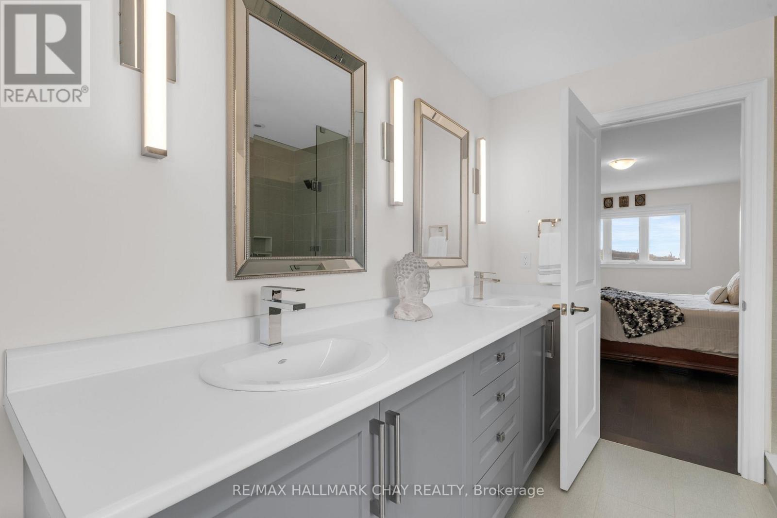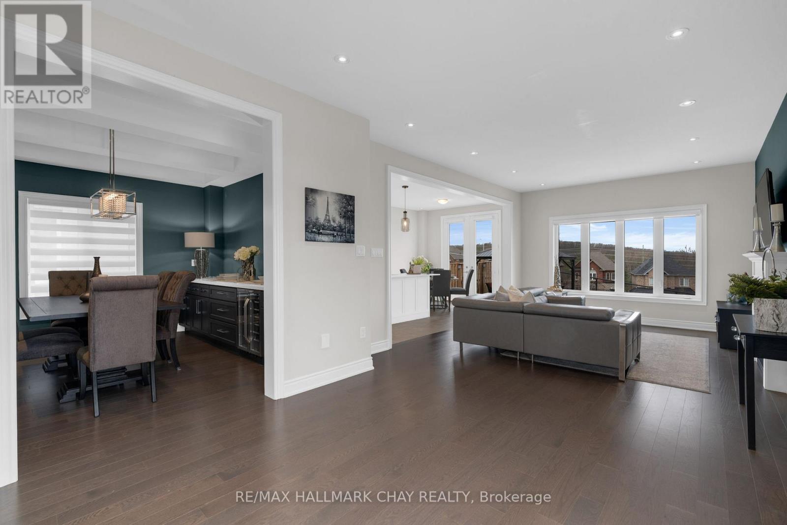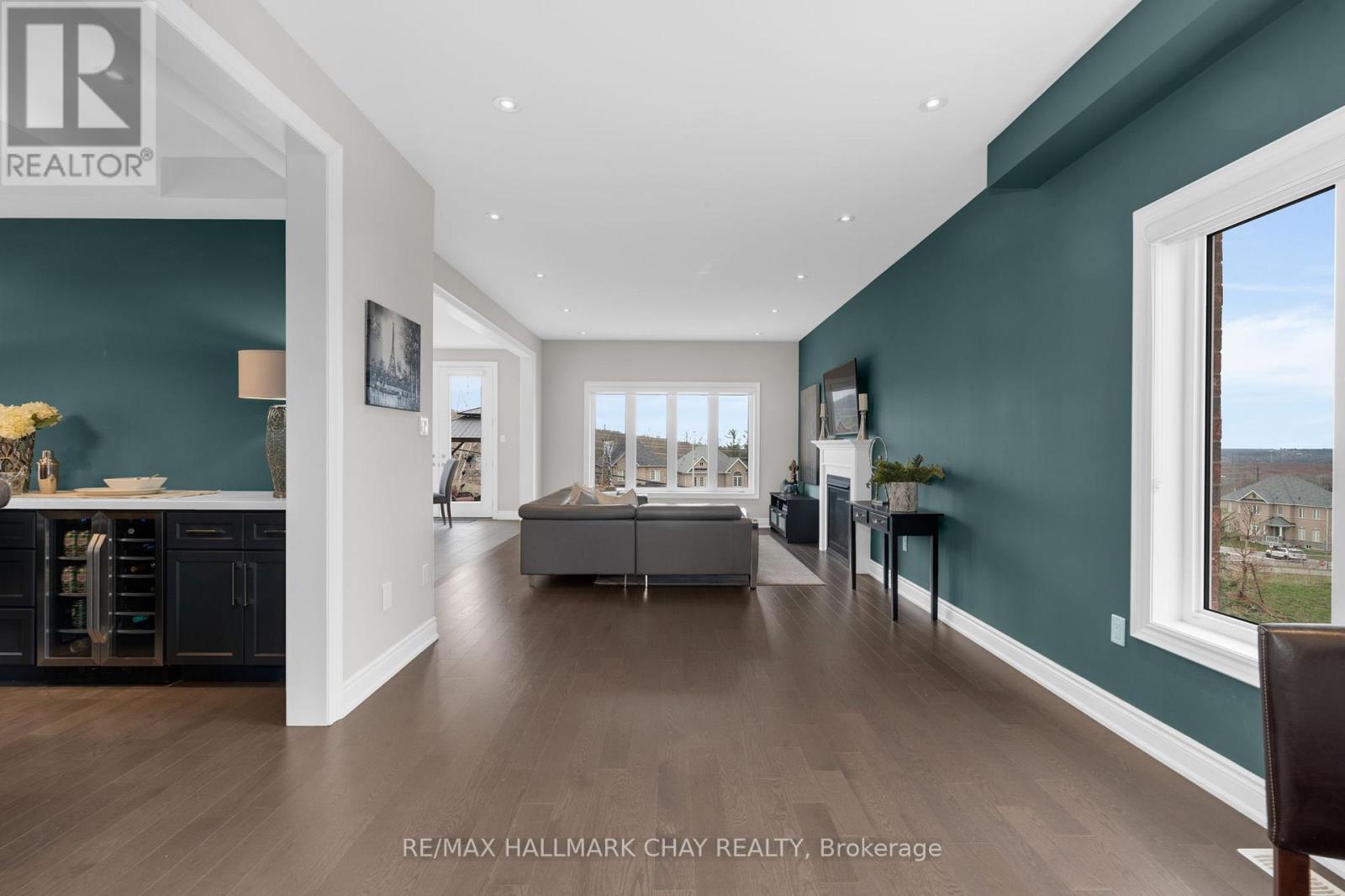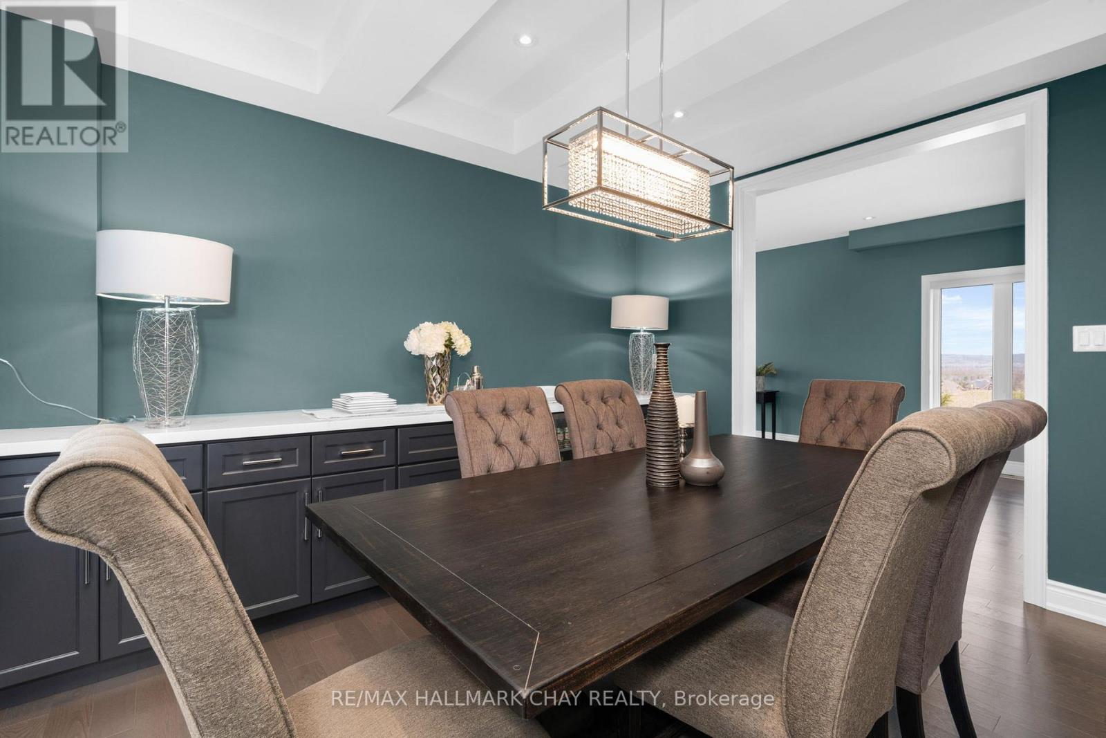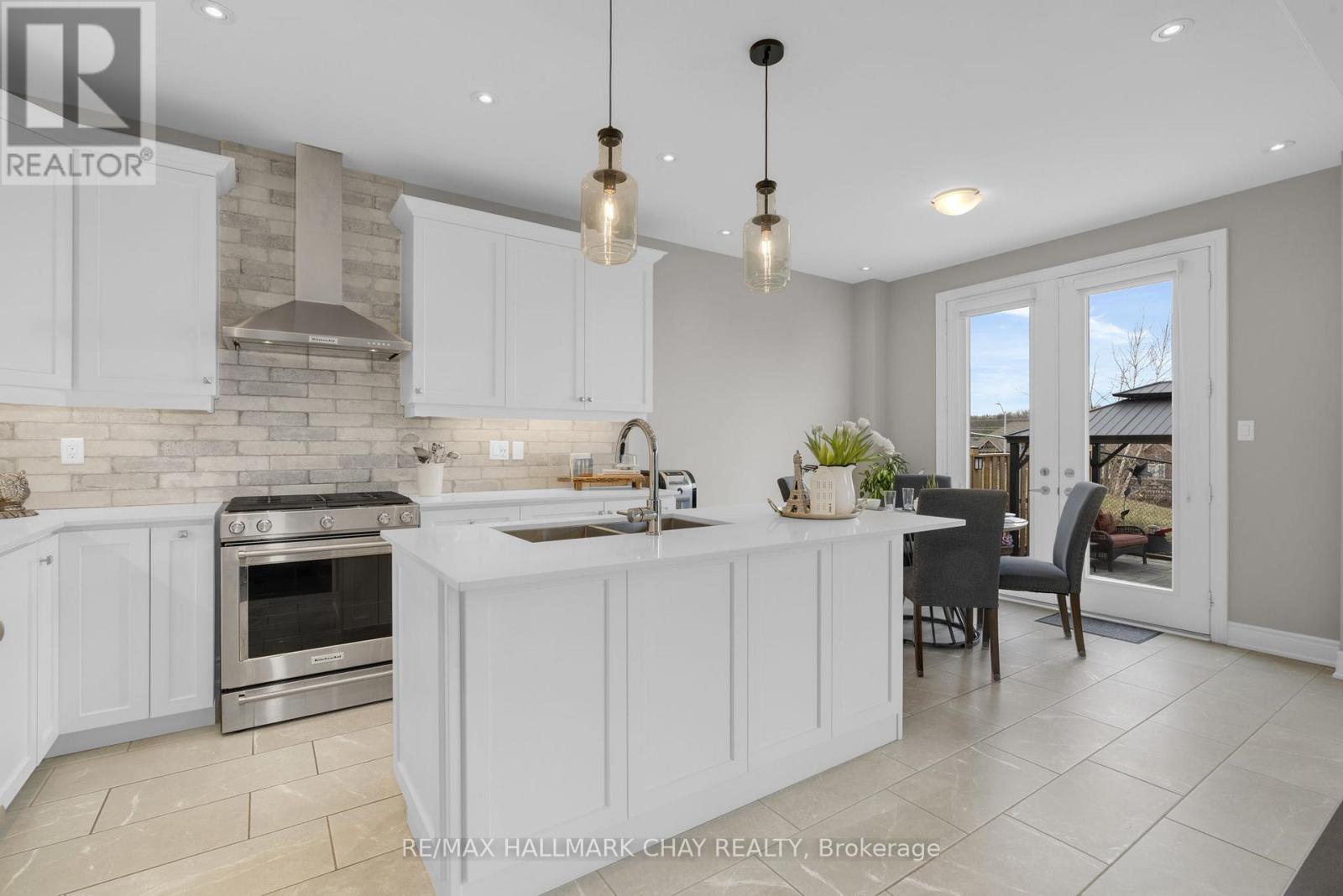 WELCOME to 18 Cypress Point Street located within a small enclave of homes in one of Barrie's newer communities - Pineview Greens Estates. This well-appointed family home offers stylish design, many upgrades, generous living space. Situated in a family centric neighbourhood, siding onto a park and open space, having direct neighbours on only one side - provides an extra level of privacy. With over 2,400 sq.ft., this two story detached 3-bedroom Royal Park home is very well appointed with high-end design and functional detail at every turn. Welcoming front entrance via the covered front porch leads you into a grand foyer with 18' ceilings, 2pc guest bath, main floor laundry room, direct inside access to double garage. Step inside to find the stylish kitchen ready to delight the family's Chef - tasteful white cabinetry, under mount lighting, centre island w/sink, stunning backsplash, s/s range hood, quartz countertops, s/s appliances, plenty of storage. This functional layout flows seamlessly into the convenient eating area, then extends your living space outdoors to your private fenced rear yard via upgraded patio doors. 9' ceilings, oversized window package completely bathe this space with the warmth of natural light. Easy maintenance tile and hardwood flooring throughout. Open concept floor plan - kitchen - living room - dining room + incredible banquette with beverage centre - is perfect for entertaining. Custom coffered ceilings. Living room flows to the formal dining space for family time, special meals with guests. Beautiful oak staircase leads to the private level with large bedrooms. Primary with a sitting area, massive closet and oversized 5pc spa-like ensuite with glass shower, soaker tub. Two additional bedrooms with Jack & Jill main bath. This home offers plenty of functional storage. Full, unfinished basement for your own plans and design (cantina, R/I bath). Step outdoors to appreciate the beautiful unistone patio in the rear fully fenced yard. (id:64974)