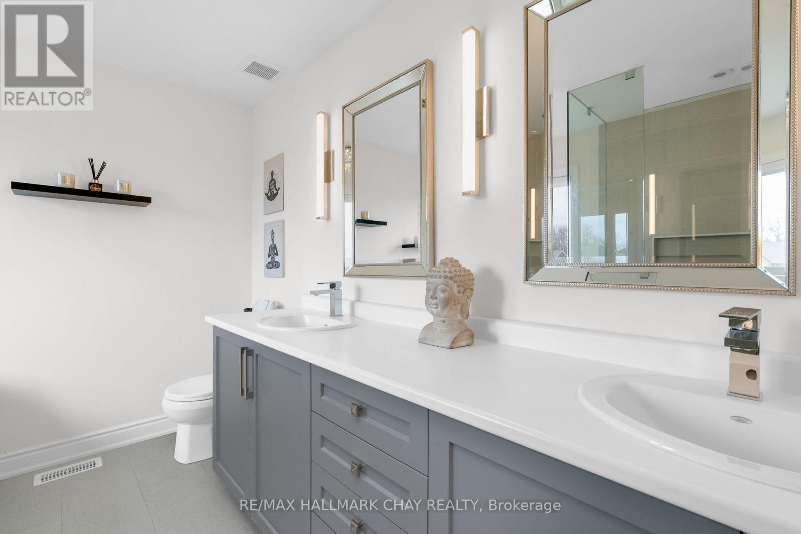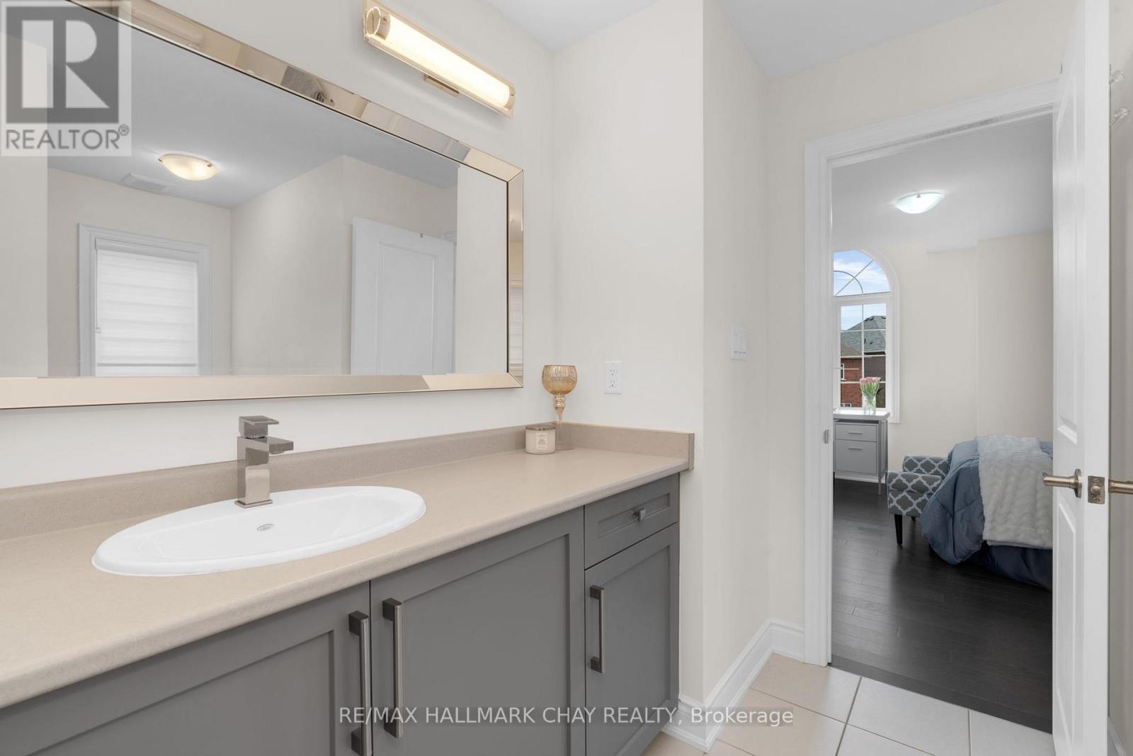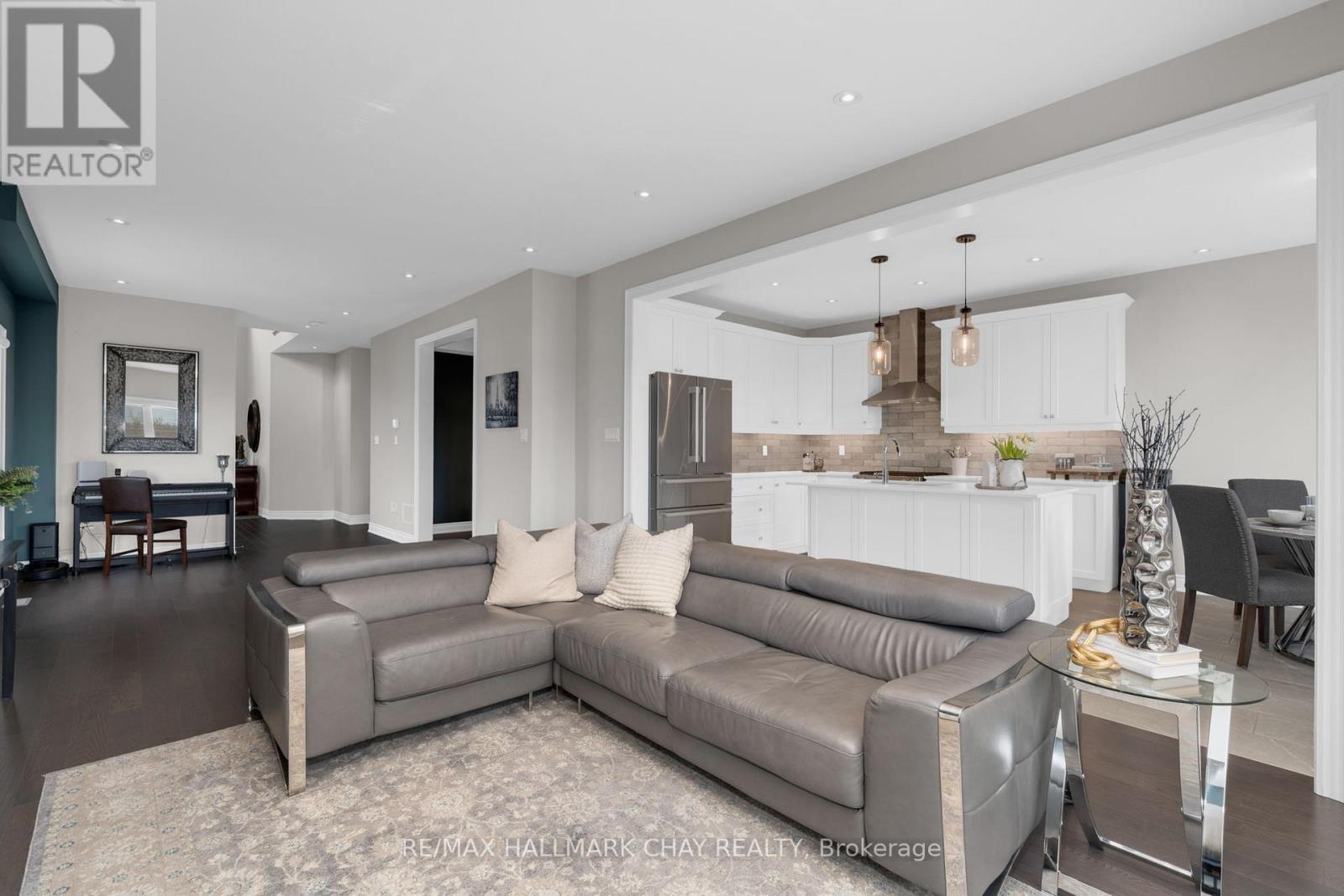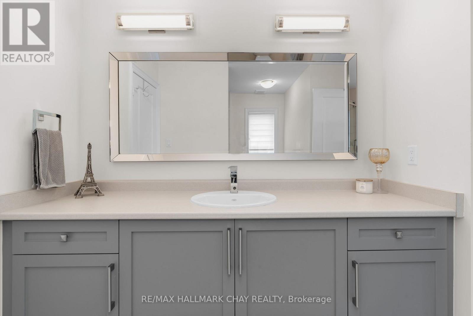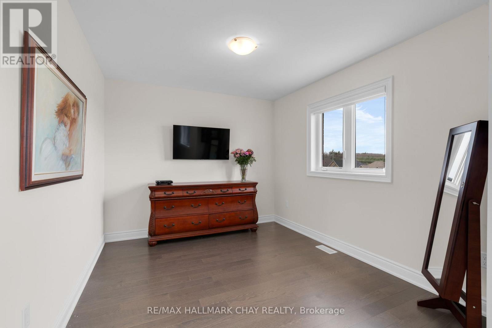 WELCOME to 18 Cypress Point Street located within a small enclave of homes in one of Barrie's newer communities - Pineview Greens Estates. This well-appointed family home offers stylish design, many upgrades, generous living space. Situated in a family centric neighbourhood, siding onto a park and open space, having direct neighbours on only one side - provides an extra level of privacy. With over 2,400 sq.ft., this two story detached 3-bedroom Royal Park home is very well appointed with high-end design and functional detail at every turn. Welcoming front entrance via the covered front porch leads you into a grand foyer with 18' ceilings, 2pc guest bath, main floor laundry room, direct inside access to double garage. Step inside to find the stylish kitchen ready to delight the family's Chef - tasteful white cabinetry, under mount lighting, centre island w/sink, stunning backsplash, s/s range hood, quartz countertops, s/s appliances, plenty of storage. This functional layout flows seamlessly into the convenient eating area, then extends your living space outdoors to your private fenced rear yard via upgraded patio doors. 9' ceilings, oversized window package completely bathe this space with the warmth of natural light. Easy maintenance tile and hardwood flooring throughout. Open concept floor plan - kitchen - living room - dining room + incredible banquette with beverage centre - is perfect for entertaining. Custom coffered ceilings. Living room flows to the formal dining space for family time, special meals with guests. Beautiful oak staircase leads to the private level with large bedrooms. Primary with a sitting area, massive closet and oversized 5pc spa-like ensuite with glass shower, soaker tub. Two additional bedrooms with Jack & Jill main bath. This home offers plenty of functional storage. Full, unfinished basement for your own plans and design (cantina, R/I bath). Step outdoors to appreciate the beautiful unistone patio in the rear fully fenced yard. (id:64974)