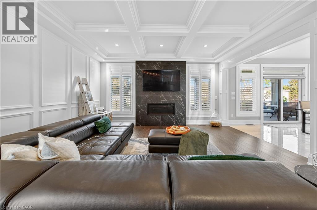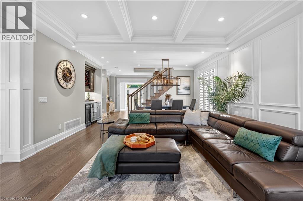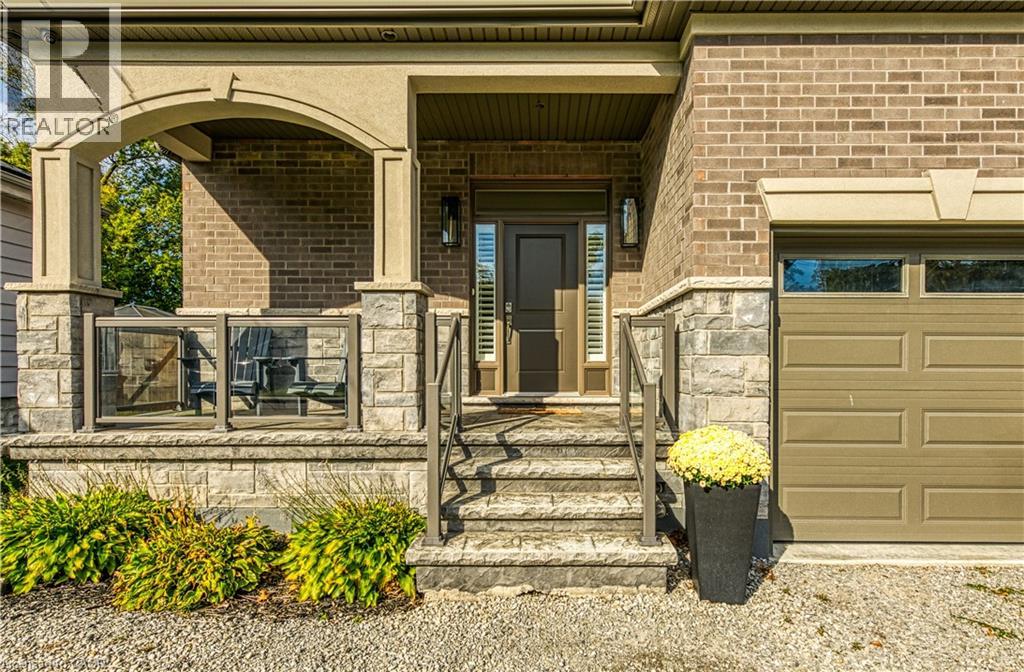 Prepare to be impressed by this meticulously crafted, fully custom 3-bedroom, 2.5-bathroom residence offering 2,531 sq ft of luxurious living on a generous 50x108 ft lot. From the moment you arrive, the home’s full brick and stone façade, arched windows, and covered porch speak to the quality and pride of ownership throughout. Inside, every detail is elevated — engineered hardwood and porcelain tile span the entire home. Solid wood interior doors, coffered ceilings, pot lights (including on all 4 sides of the home’s exterior), and crown moulding define each space with sophistication. The kitchen is an entertainer’s dream, complete with custom cabinetry, quartz countertops, high-end appliances, in-ceiling speakers, and a spacious island. It opens effortlessly to a dining area and large living room anchored by a floor-to-ceiling stone gas fireplace and built-in wet bar. The primary suite is a sanctuary, offering a large walk-in closet with custom cabinetry and a dedicated makeup station. The ensuite bath includes a double vanity, quartz countertops, and a private water closet. Upstairs bathrooms also feature quartz surfaces and private toilet rooms for added convenience. A wide staircase enhances flow, and thoughtful extras include central vac with in-wall hose systems on every level, closet lighting throughout, and California shutters. Step outside to a covered back porch and fully fenced backyard where freshly planted cedars promise enhanced privacy in the seasons to come. The unfinished basement — with its own private side entrance and insulated subfloor — offers endless possibilities. With a double-car garage and four-car driveway, this property checks every box for luxury, comfort, and long-term livability. (id:64974)