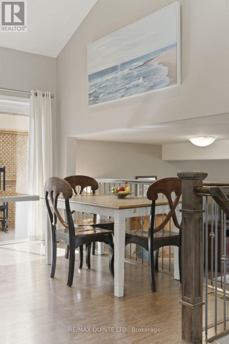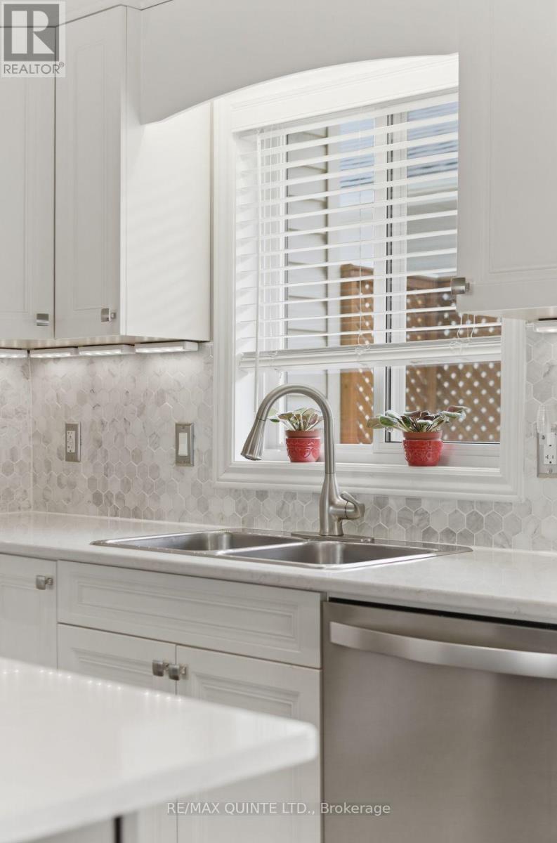 Located in Belleville's Potter's Creek subdivision, 18 Deacon Place is an exceptional 4-bedroom, 3 full bathroom Mirtren-built backsplit offering over 2,150 sq ft of above-grade living space designed for comfort, style, and everyday functionality. Step inside to a welcoming foyer with ceramic tile, garage access, and a convenient coat closet. The main level opens into a bright, open-concept living and dining area with soaring vaulted ceilings, modern lighting, and abundant natural light from large windows. The front living room is the perfect place to start your day, filled with morning sun and overlooking the charming front porch. The custom kitchen by Paul Holden is a true showpiece, featuring quartz countertops, a large island with bar seating, a full-height pantry, under-cabinet lighting, and a striking modern hexagon tile backsplash. With both an eat-in area and open flow to the dining space, it's ideal for entertaining or a busy family life. The upper level offers three spacious bedrooms, including a primary suite spanning over 300 sq ft with a walk-in closet and a bright 3-piece ensuite with a glass door walk-in shower. A full 4-piece main bath completes this level. The lower level provides additional living space with a large bedroom, a 3-piece bathroom with a walk-in shower, and a spacious laundry room with cabinetry for storage and a laundry sink. Outside, enjoy a large, fully fenced backyard with a deck off the kitchen for easy BBQ access, plus a lower entertaining area with a gazebo-covered floating deck and storage shed, perfect for relaxing or hosting.With over 600 sq ft of additional storage space in the unfinished basement, this home offers incredible flexibility for growing families, multigenerational living, or those seeking extra room to live and entertain. A standout property offering space, quality craftsmanship, and thoughtful upgrades in one of Belleville's most desirable west-end subdivisions. (id:64974)