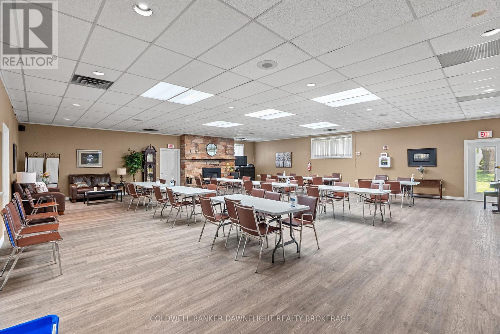 OPEN HOUSE SATURDAY MARCH 21ST FROM 10AM - 12PM. Nestled in the heart of Exeter, Riverview Meadows offers the perfect blend of small-town charm, modern convenience, and peaceful rural surroundings. Ideally located just 30 minutes from London and only 15 minutes from the serene shores of Lake Huron, this adult-oriented community provides a relaxed and friendly atmosphere with easy access to healthcare, shopping, dining, golf courses, and scenic walking trails. This 1160 sq ft home which is situated on leased land, offers easy, step-free access with no stairs at the entry which is ideal for convenience and accessibility. This beautifully maintained home features an open-concept layout that is both spacious and inviting. The kitchen boasts ample cabinetry, an updated backsplash, and a sit-up island perfect for casual dining or entertaining. The adjoining living and dining areas flow seamlessly together and includes a cozy gas fireplace which is ideal for relaxing evenings at home. The primary bedroom is generously sized and includes a walk-in closet and a private 3-piece ensuite. A second bedroom is conveniently located near the 4-piece main bath, making it perfect for guests. Step out onto the private patio area, perfect for enjoying a relaxing morning coffee or hosting a BBQ made easy with a convenient gas hookup. The attached garage provides convenient access to a generous amount of storage space located beneath the main floor. Additional upgrades include premium vinyl flooring, backsplash and fresh paint, adding to the homes modern appeal. Residents of Riverview Meadows enjoy access to a wide array of community amenities, including a recreation hall with a kitchen, pool table, shuffleboard, library, a fitness room, outdoor shuffleboard courts, horseshoe pits, and a tranquil community pond perfect for socializing with neighbors and visiting family. This is more than a home - it's a lifestyle. (id:64974)
