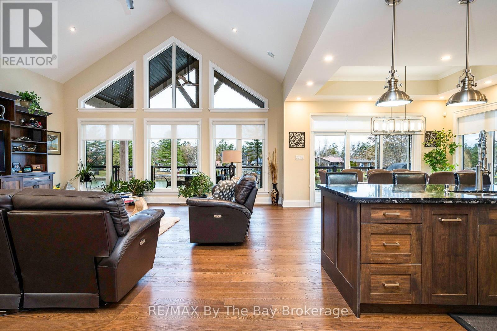 Sitting majestically on one of the most spectacular riverfront lots on the Nottawasaga River in beautiful Wasaga Beach you will find this newly built 4180 Sq. Ft. custom home crafted by professional home builder Father and Son Construction. At every turn of this property exudes quality both inside and out with the exceptional attention to detail and exterior features to make it the ultimate riverfront oasis located on one of the premiere streets lining the prime boating segment of the river and amongst many custom homes. The well thought out main floor design begins with a welcoming entrance with its expansive foyer that takes one to the grand open concept main floor with cathedral ceilings and panoramic windows with stunning views of the river. The gourmet kitchen would delight any chef with its large island with prep area, 6 burner plus grill gas stove and 5 ft fridge and freezer along with custom cabinetry and accent lighting. Adjacent dining area with stunning trey ceilings for all family meals with access to a large covered deck for outdoor entertaining. Grand primary bedroom with spa like ensuite and large walk in closet. Meanwhile additional large 2 guest bedrooms, perfect for guests in the bright fully finished lower level with its 9ft ceilings, in-floor heating and expansive windows offers exceptional river views with a walkout to a backyard entertaining paradise with all custom stone walkways and landscaping. Experience sunset cocktails at the custom built outdoor bar and fire pit area before experiencing all your favourite riverfront activities or a dip in the hot tub. Other features include radiant in floor heating in your triple car garage, security system and so much more. This exceptional one of a kind property sits on a rare 75 ft riverfront lot that provides privacy and a haven for the ultimate riverfront lifestyle. (id:64974)