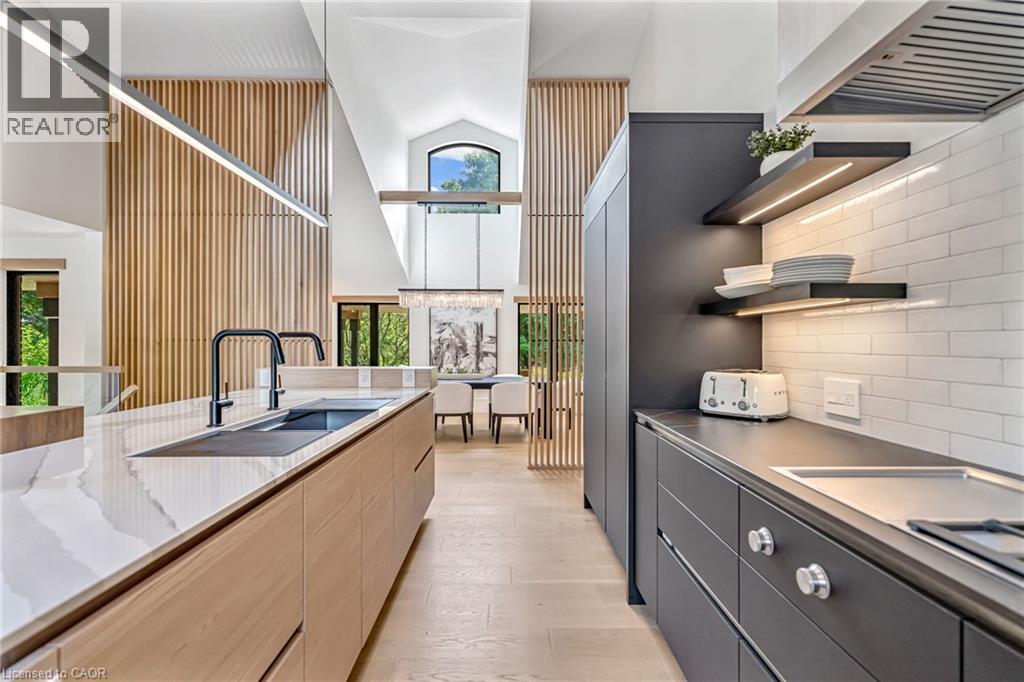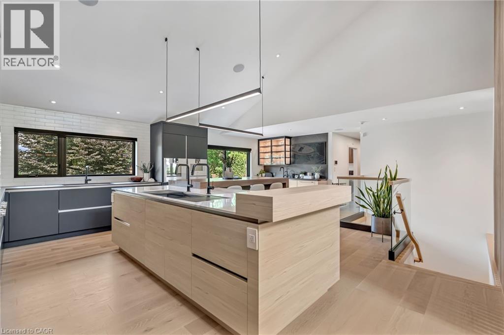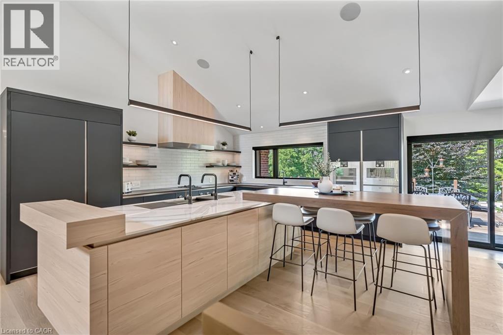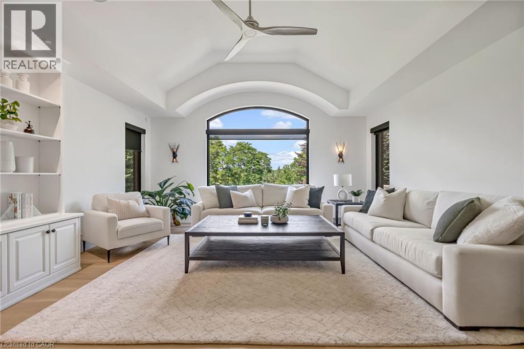 Too many upgrades to list!! Set on a private 1.8-acre lot in Fox Run Estates, this beautifully renovated 5 bedrooms, 4 bathroom home blends modern sophistication with natural surroundings. The backyard retreat offers a heated saltwater pool with waterfall, poolside sauna, multi-level steel-framed Brazilian hardwood decks, Credit Valley sandstone walkways, and lush gardens for complete privacy. Inside, over 5,000 sq. ft. of finished living space showcases white oak flooring, soaring vaulted ceilings, a contemporary kitchen with quartz and Dekton countertops, Gaggenau appliances, comprehensive control4 smart home system (Alarm, Sound, Blinds, Cameras, Automated Gate), and custom wood accents. The newly renovated walk-out basement includes three additional bedrooms, a gym, office, large family room, and separate garage entry, ideal for multi-generational living. Highlights include a Gerard steel roof, two furnaces, security system, fully fenced yard, front security gate, Generac generator, Sonos sound system, automatic irrigation, all backing onto seven untouched acres with a neighbourhood trail. Do not miss out, this is the pinnacle of luxury living! (id:64974)