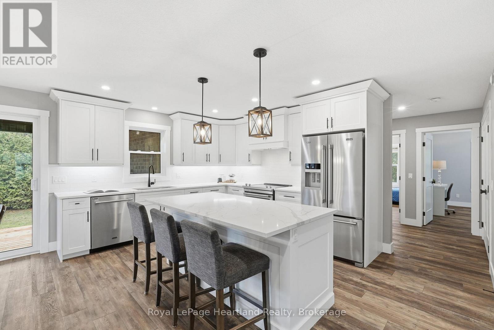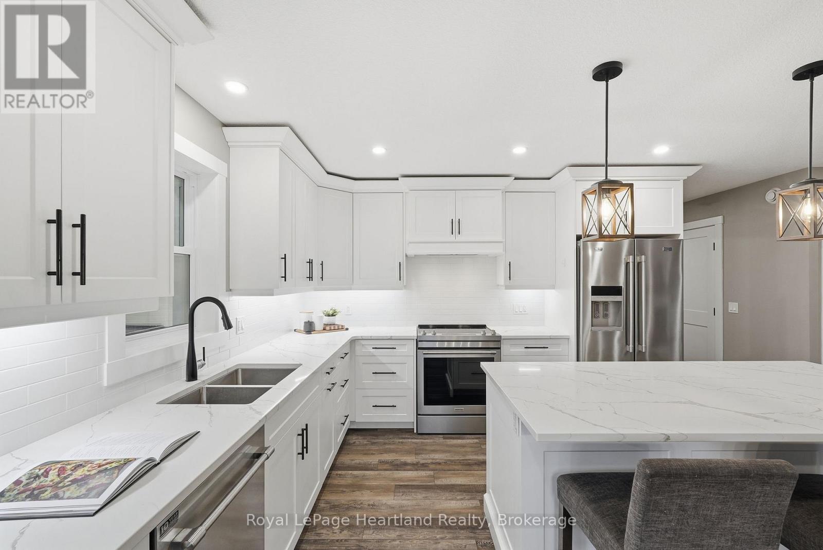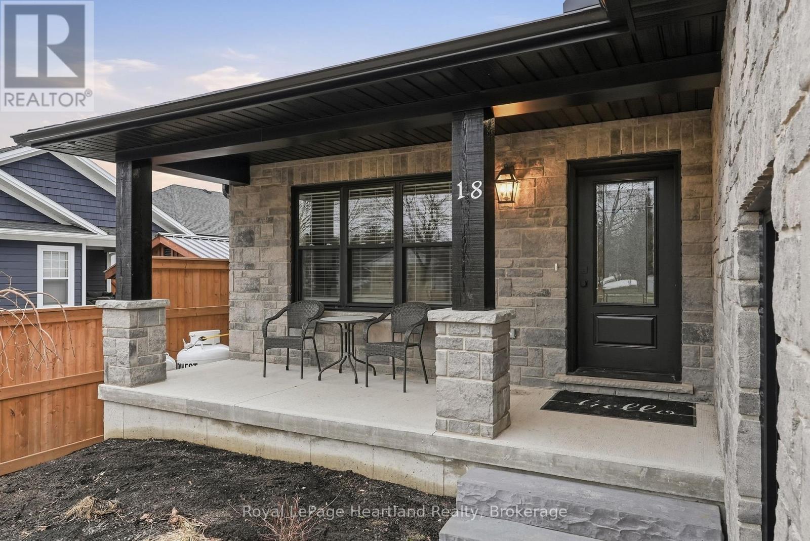 Welcome to 18 Geddes St, a stunning custom-built home that perfectly blends sophisticated design with everyday functionality. The heart of the home features an expansive open concept layout, where you can enjoy creating family recipes in your kitchen featuring white shaker cabinetry, gleaming quartz countertops, and premium stainless steel appliances, flowing seamlessly into a dining area that opens to a private 12x15 covered back deck. Natural light drenches the living room, highlighting a gorgeous focal-point fireplace flanked by custom built-ins and shelving that is sure to impress. Retreat to the primary suite, a true sanctuary complete with a spacious walk-in closet and a spa-like ensuite. The remainder of the main floor is complete with a 4 pc main floor bath, 2 spacious bedrooms, main floor laundry and ample storage. Practicality meets style with a stone exterior, ample parking, an attached 21'x22' garage featuring a mezzanine and steel storage 8'x12' steel shed for clever storage. The partially finished basement offers incredible potential to add a third bathroom, extra bedrooms, a massive rec room to suit your needs or all of the above. Situated just steps from downtown, playgrounds, school bus routes, and local sports fields and recretion like the walking trails and community centre, this home offers the lifestyle you've been searching for. Call Your REALTOR Today To View What Could Be Your New Home, Where Peace of Mind Comes First, 18 Geddes St, Clifford. (id:64974)