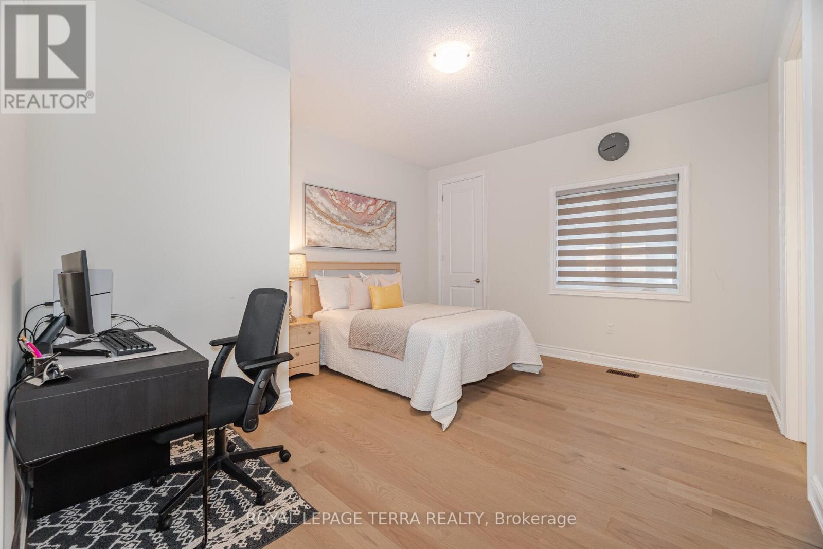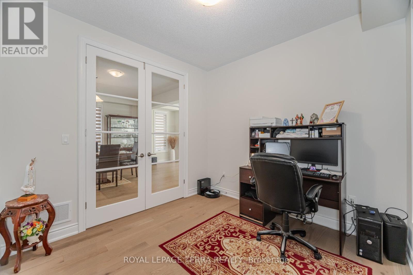 Welcome to this stunning 5-bedroom, 3.5-bathroom detached home, ideally located in the highly sought-after Bram West community of Brampton. Offering nearly 3,000 sq. ft. of luxurious living space, this home features a functional open-concept layout enhanced by hardwood flooring throughout, elegant oak stairs with iron spindles, and a grand 8-ft custom double-door entry. 9ft celling on both the floors and 8ft custom tall doors in the home The chef-inspired kitchen is truly a showstopper, boasting custom cabinetry, quartz countertops and backsplash, a large centre island, and built-in high-end Jenn-air brand stainless steel appliances, including a gas stove. glass door lead out to the backyard, creating the perfect space for outdoor entertaining.The main floor offers generous living areas, including a combined living and dining room, a cozy family room, and a dedicated office or prayer room, along with the convenience of a main floor laundry room. The primary suite is a luxurious retreat, featuring oversized walk-in closets and a spa-like ensuite. Every bedroom in the home has direct access to a bathroom, while all washrooms showcase quartz finishes and custom extended height vanities. Over $$$ 150k spend on quality upgrades at Builders decor studio. and thousands spend after Moving in. Additional features include a separate side entrance to the basement, with permits in place for a legal secondary unit (work in progress), an HRV system for improved air quality, and large windows that flood the home with natural light. Located in a prime neighbourhood close to top-rated schools, Lion head Golf Club, and offering easy access to Highways 407 and 401, 403 this area is Bordering Mississauga and Halton hills one of the best location. (id:64974)
