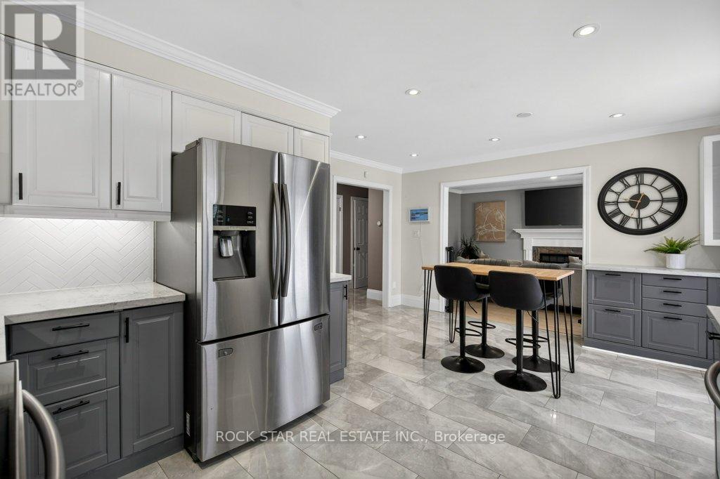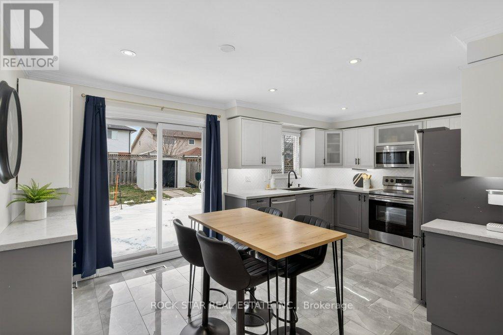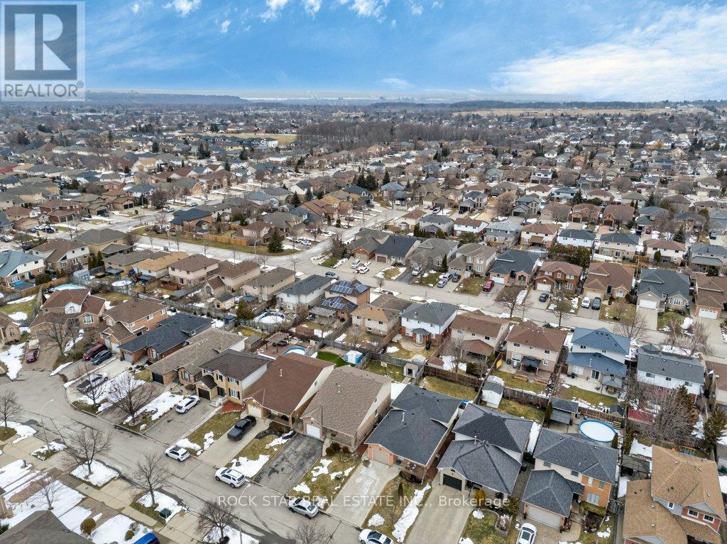 Welcome to 18 Hillgarden Drive, a beautifully maintained 4-level backsplit offering approximately 3,000 sq ft of total living space, including over 2,000 sq ft above grade, located in a highly sought-after Stoney Creek Mountain family neighbourhood. The main level features a fully updated kitchen completed within the last four years, blending modern style with everyday functionality. A patio door off the kitchen leads directly to a large backyard. The main floor also offers a warm and inviting family room with a cozy gas fireplace, creating the perfect space to unwind, along with the added convenience of main floor laundry. Throughout the home you'll find extensive hardwood flooring, updated finishes, and a layout designed to provide both open gathering spaces and comfortable separation between levels. Upstairs, the spacious primary bedroom includes a recently updated ensuite, while the additional bedrooms offer plenty of room for growing families. The main bathroom features double sinks, adding convenience for busy households. The unique backsplit layout continues with two additional lower levels, dramatically expanding the living space and offering endless flexibility for a rec room, home theatre, home office, gym, or additional bedrooms. Outside, the fully fenced yard provides privacy and safety for pets or kids and room to enjoy outdoor living. Parking is plentiful with space for five vehicles, including a single-car garage and a double-wide driveway. With four levels of living space totalling roughly 3,000 sq ft, this home offers an ideal combination of space, functionality, and recent updates. Conveniently located close to parks, schools, shopping, and highway access, this is a fantastic opportunity to own a move-in-ready home in one of Stoney Creek Mountain's most desirable communities. (id:64974)