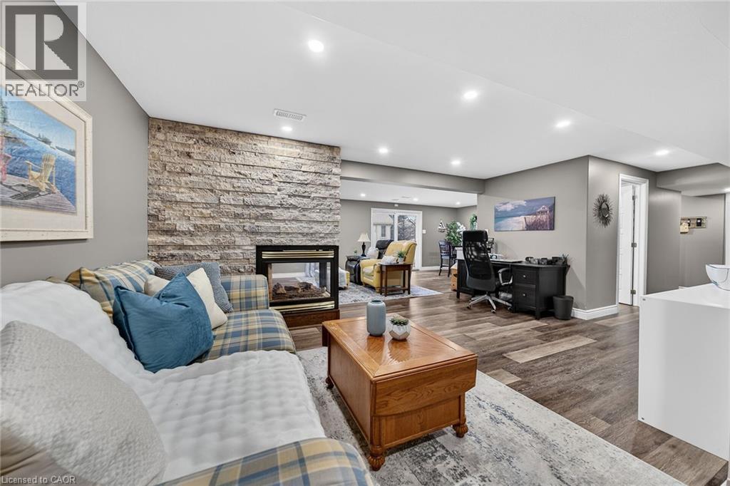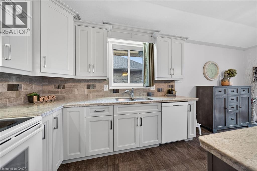 Beautifully presented 2017 custom “Eggink” built brick & stucco clad bungalow located in possibly one of Port Dover’s most desired, preferred subdivisions surrounded by similarly maintained homes & properties - 50 mins commute to Hamilton - less than 2 hour drive to the GTA. Take advantage of this sea-side town’s popular amenities that inc Live Theatre, Music in the Park venues, Links Style Golf, eclectic shops, trendy eateries/bistros & world famous beach front. This immaculate home is positioned handsomely on 0.18 acre lushly landscaped lot offering 60.99ft of frontage on quiet side street ftrs paved double driveway accented w/stamped concrete curbs & walkways extending along side house to large rear stamped concrete patio highlighting gentle sloping rear yard. Inviting covered porch provides entry to grandiose front foyer w/16ft ceilings introducing 1458sf of open concept living area boasting “Gourmet’s Dream” kitchen sporting in-vogue beige/white coloured cabinetry, contrast island, granite countertops & tile back-splash, adjacent dining area ftrs patio door walk-out to 8x12 private deck completed w/impressive living/great room. Premium laminate flooring & 9ft ceilings augment the chic, neutral décor w/sophisticated flair. Design continues past 4pc main bath on to elegant primary bedroom suite ftrs large walk-in closet & personal 3pc bath, sizeable guest bedroom segueing to desired main floor laundry incs direct entry to 11ft high oversized, insulated 24x25 garage. Gorgeous 1458sf lower level showcases 3-sided n/gas fireplace set in stone feature wall flanks rec/games room & spacious family room incs convenient peninsula/bar & sought after patio door walk-out to stamped concrete patio. Stylish 3pc bath, roomy 3rd bedroom, multiple storage rooms & utility room ensure all space is utilized. Notable extras - n/g furnace, AC, HRV, upgraded lighting, all appliances, n/g BBQ hook-up, 200 amp hydro & fibre internet. Distinguished Dover Life-Style Awaits! (id:64974)