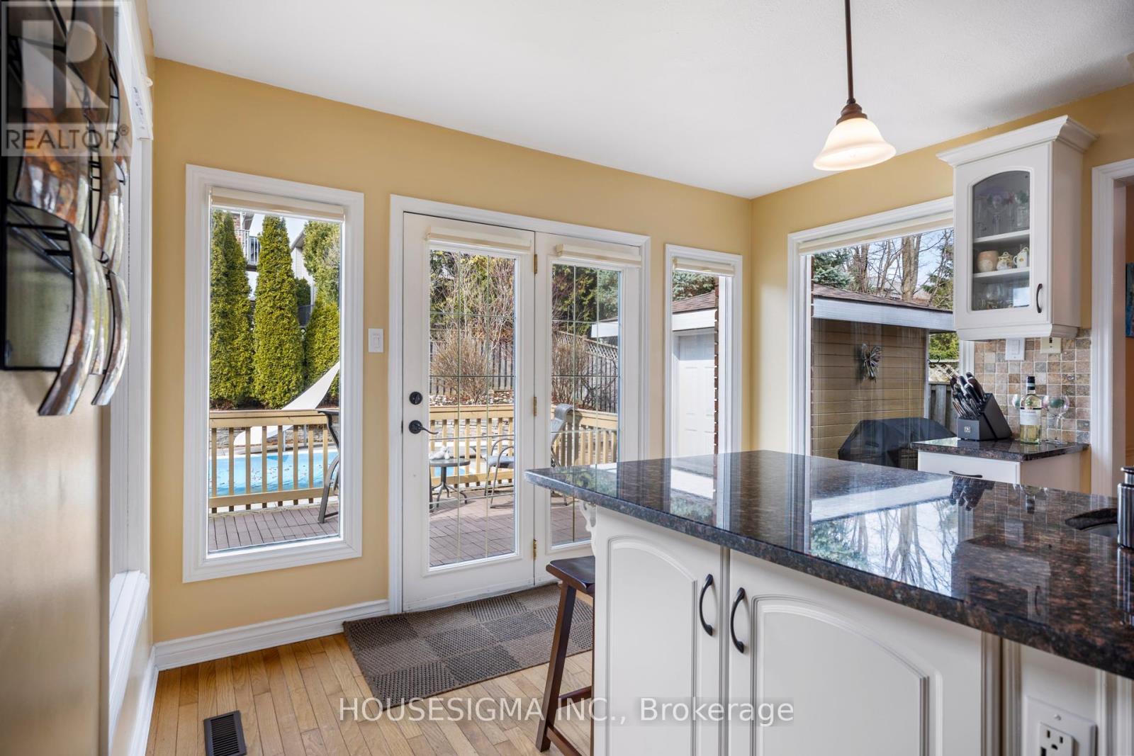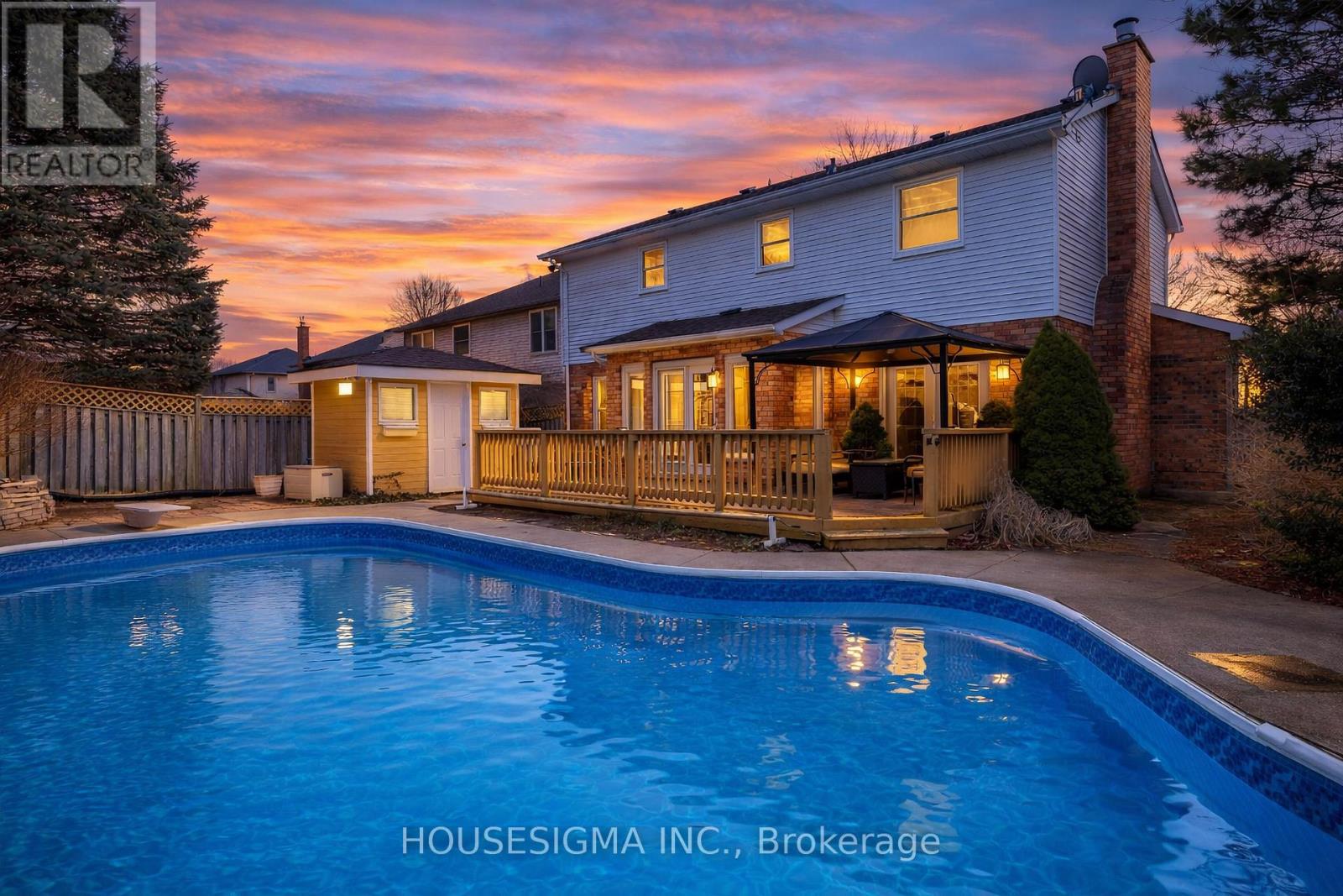 Welcome to 18 Jennifer Gardens with a 36 x 16 In Ground Pool!!! Situated on a quiet Crescent in London's desirable Stoneybrook Heights neighbourhood. Close to Masonville Mall, UWO and situated near one of London's top elementary schools, Jack Chambers. This home boasts a formal living room with bay window, bright formal dining room, elegant hardwood floors, French white kitchen with centre island and granite counters open to the family room with a gas burning fireplace. The home also boasts 4 spacious bedrooms, the principal bedroom has a 4 pc ensuite and walk-in closet, finished lower level with a 3 pc bath, large deck off the kitchen and family room overlooking the pool. Additional features include; Main floor laundry, double car garage, landscaped backyard, gazebo and shed, pool liner 2023, pool, pump 2022. The Pool is heated along with a slide, diving board and easy entry stairs. (id:64974)