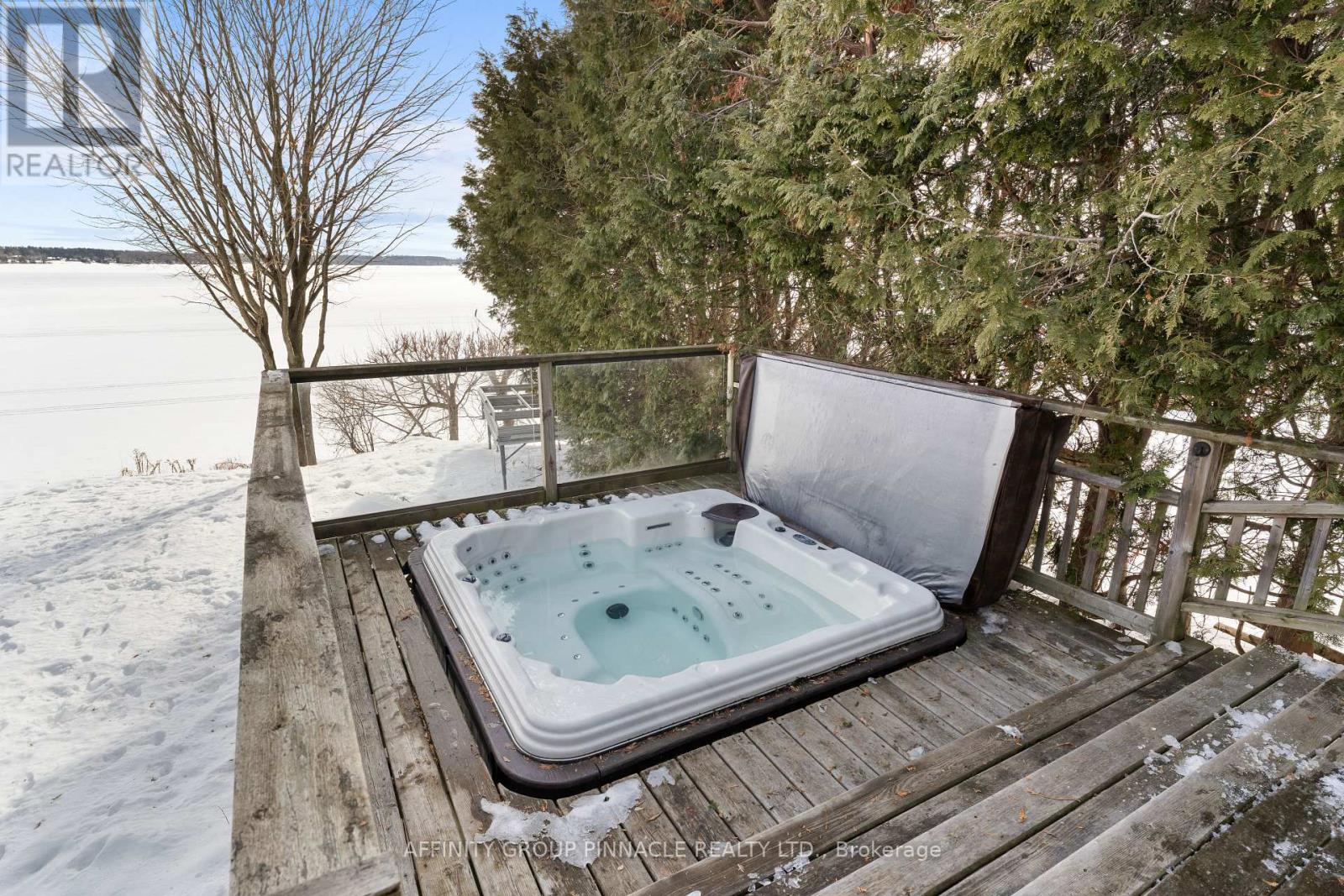 Welcome to 18 Lakeview Blvd. Little Britain, your year-round waterfront retreat on the shores of beautiful Scugog Lake. Boasting 80 feet of prime, south-facing frontage, this property offers some of the most desirable swimmable waterfront on the lake. This charming 2-bedroom, 1.5-bath with a walkout basement home is designed to capture breathtaking lake views from every angle. Vaulted ceilings and an expansive large picture window flood the main living space with natural light while framing uninterrupted water views. A cozy main floor fireplace adds warmth and ambiance, making it the perfect spot to unwind on cool evenings while still enjoying the stunning lakeside backdrop. Unwind in your private lakeside sauna or hot tub after a day on the water, or relax along the shoreline and take in the peaceful surroundings. The sought-after south-facing exposure ensures all-day sun and spectacular sunrise-to-sunset views. The detached 20' x 32' heated garage with a loft adds incredible value; it's ideal for storage, a workshop, a hobby space, or future studio potential. Whether you're searching for a full-time residence or a four-season escape, this exceptional waterfront opportunity delivers lifestyle, comfort, and unforgettable views in one remarkable package (id:64974)