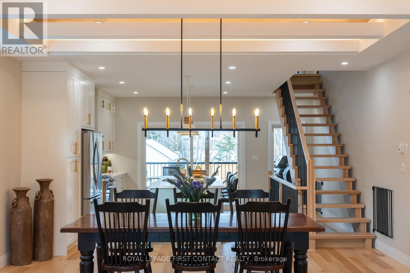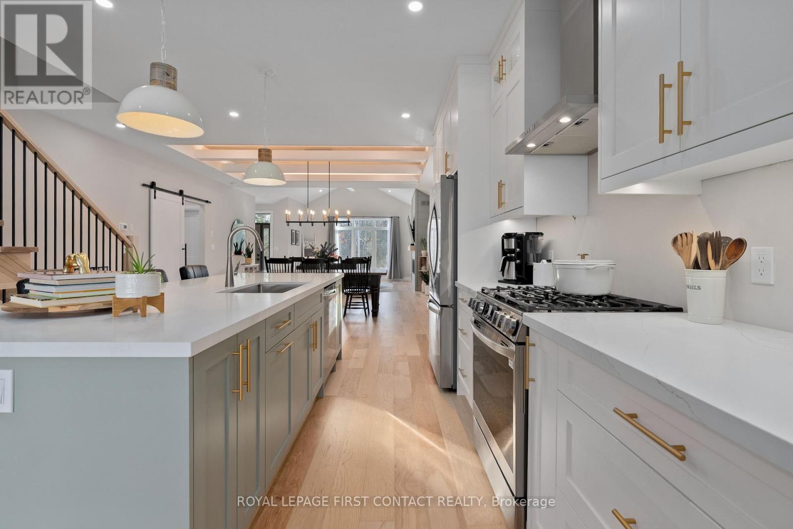 Welcome to 18 Lakeview Road, an exceptional custom residence completed in 2024, where refined architecture and thoughtful craftsmanship define every detail. Privately positioned on a quiet, low-traffic street with nothing behind, this property offers a rare sense of calm and exclusivity-just steps from the lake with deeded private beach access. The interior is a masterclass in modern luxury, featuring expansive open-concept living spaces crowned by dramatic coffered ceilings with warm wood inlays and ambient lighting & soaring ceilings. Wide-plank hickory hrdwd floors flow throughout, a striking custom fireplace feature wall , seamlessly blending sophistication with comfort. At the heart of the home, the designer kitchen impresses with premium custom cabinetry, an oversized quartz island, and top-of-the-line appliances-perfectly tailored for both everyday living and elevated entertaining. The adjoining dining and living areas are beautifully connected, creating an inviting environment for gatherings both intimate and grand. The primary suite is a private retreat, offering generous proportions and a spa-inspired ensuite with heated shower floors & bench . Upper-level laundry adds to the home's effortless functionality. The lower level, with 8-foot ceilings and oversized windows, is already roughed-in for a bath and presents exceptional potential to create additional living. A heated tandem garage with dual access doors and hot and cold water taps speaks to the home's attention to practical luxury. Outdoors, the fully landscaped and fenced yard, paired with covered porches, completes this turnkey offering-crafted with precision and care, and finished to an uncompromising standard. Ideally located near scenic rail trails, close to schools, offering convenient highway access via the 5th Line overpass, with quick connectivity to Barrie, this residence is perfectly suited for discerning buyers seeking a low-maintenance luxury lifestyle in a tranquil lakeside setting. (id:64974)