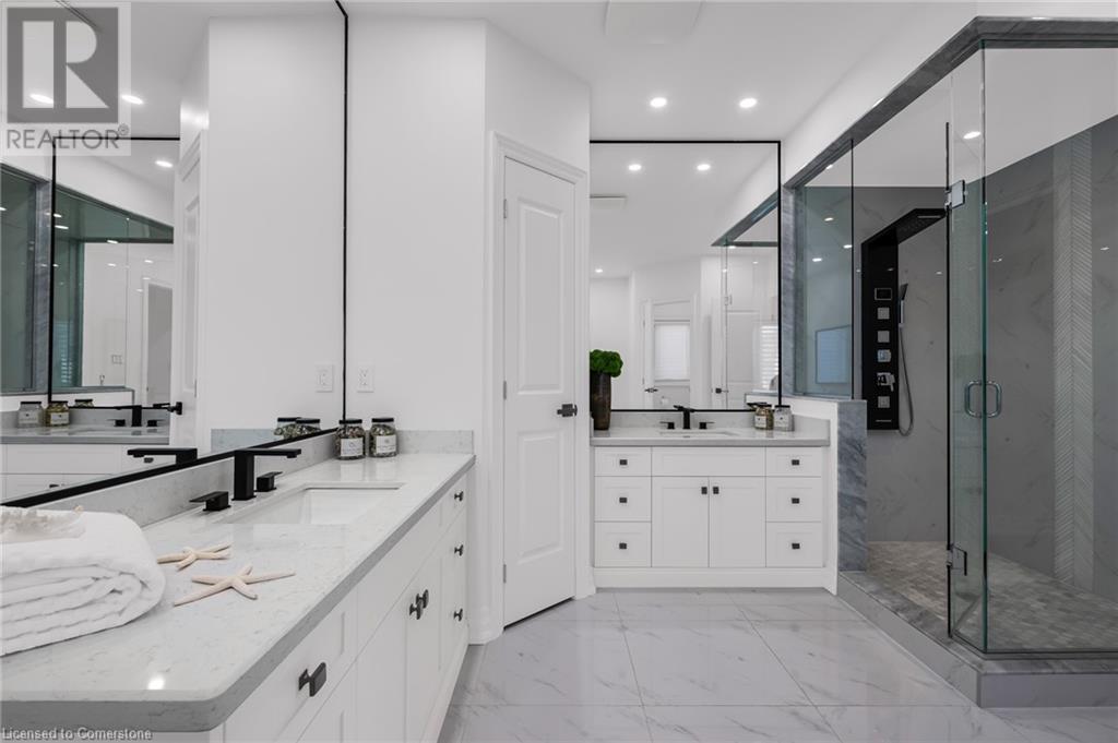 A gem in Ancaster, the most prestigious and established neighbourhood built by Carriage Gate in 2017. Loaded with tasteful upgrades from the ceilings down to the flooring. Extra long driveway with three cars garage. Custom kitchen with high-end appliances. Hardwood flooring throughout, including the second floor. Upper level with four bedrooms, each with access to one of the three full bathrooms. Tasteful front and back landscaping includes a built-in BBQ and seating area with a fireplace. Great playground area. Garden with wifi-controlled sprinkler system and auto lighting. A high-ceiling basement gives you many potentials. Must see and Shows AAA+ (id:64974)