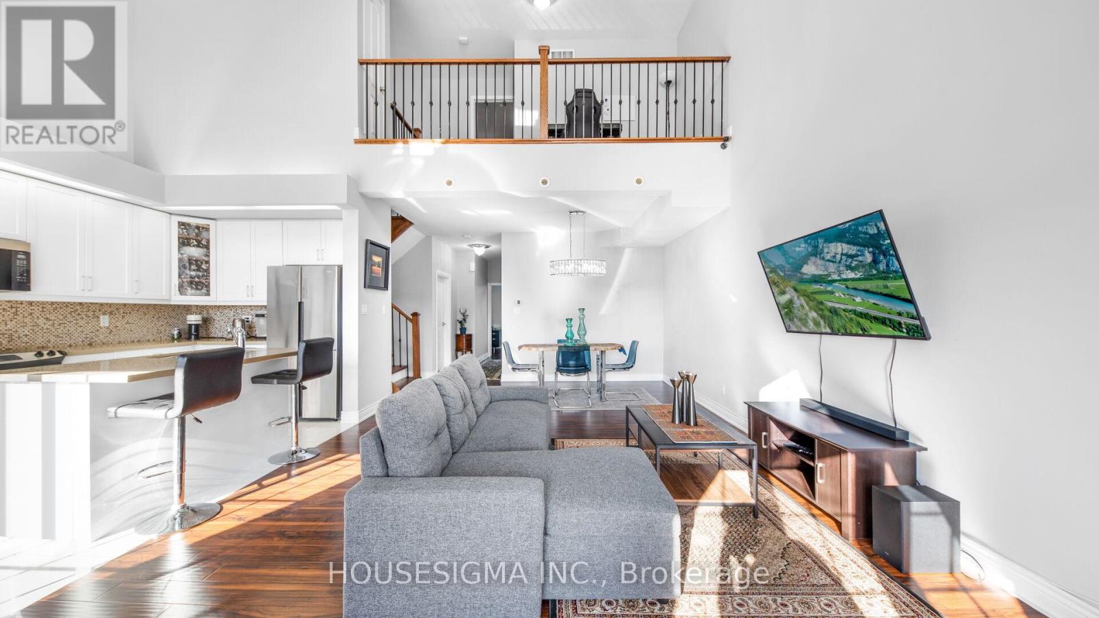 Offer Anytime Show with Confidence! A fantastic opportunity for first-time buyers, downsizers, or young professionals! This freshly painted and sun-filled 2-bedroom + den, 2-bath townhouse features soaring 20-ft ceilings in the Great Room, a stylish media loft, and a versatile upper-level den, perfect as a cozy retreat by night and a productive home office by day. Enjoy in-home laundry, extra storage, and a private garage parking spot. Located just minutes from Hwy 401, the 407 extension, GO & Durham Transit, it's perfect for commuters. Walk to Lifetime Fitness, Costco, Home Depot, parks, schools, shopping, dining, and more. A stylish, low-maintenance home in a prime, convenient location with a lot to offer! (id:64974)